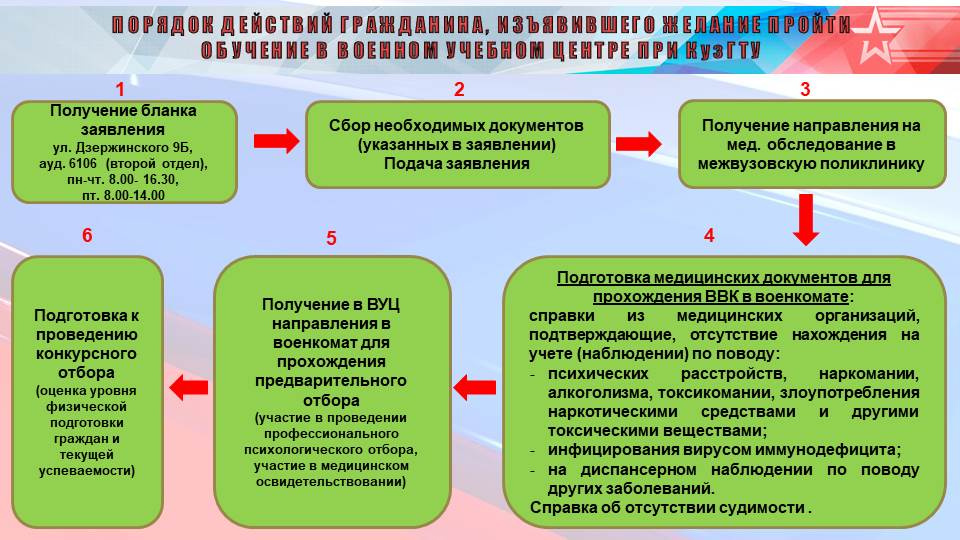 Порядок поступления в Военный учебный центр при ФГБОУ ВО «Кузбасский государственный технический университет имени Т.Ф. Горбачева»