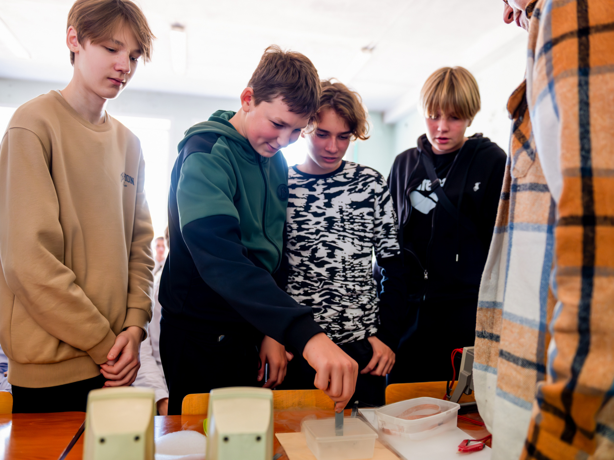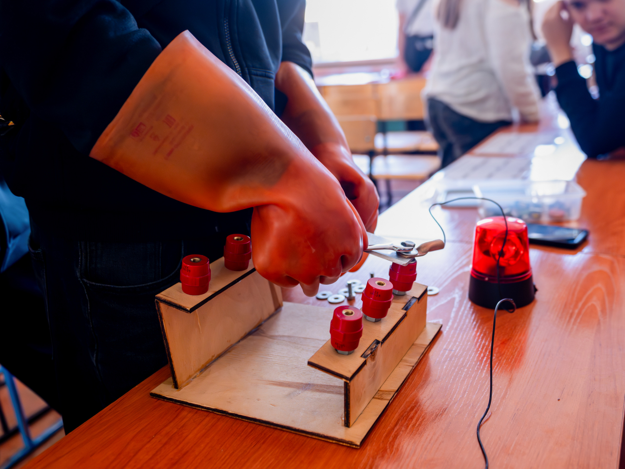 В институте энергетики школьников ждали сразу несколько мастер-классов. Самым зрелищным стало знакомство со свойством сверхпроводников вытеснять магнитное поле: при охлаждении жидким азотом магнит начал «парить» над поверхностью. Помимо этого, игроки занимались электроизмерениями, сборкой схем, сортировкой электронных компонентов, а также разгадывали кроссворд из терминов электротехники и электроники.