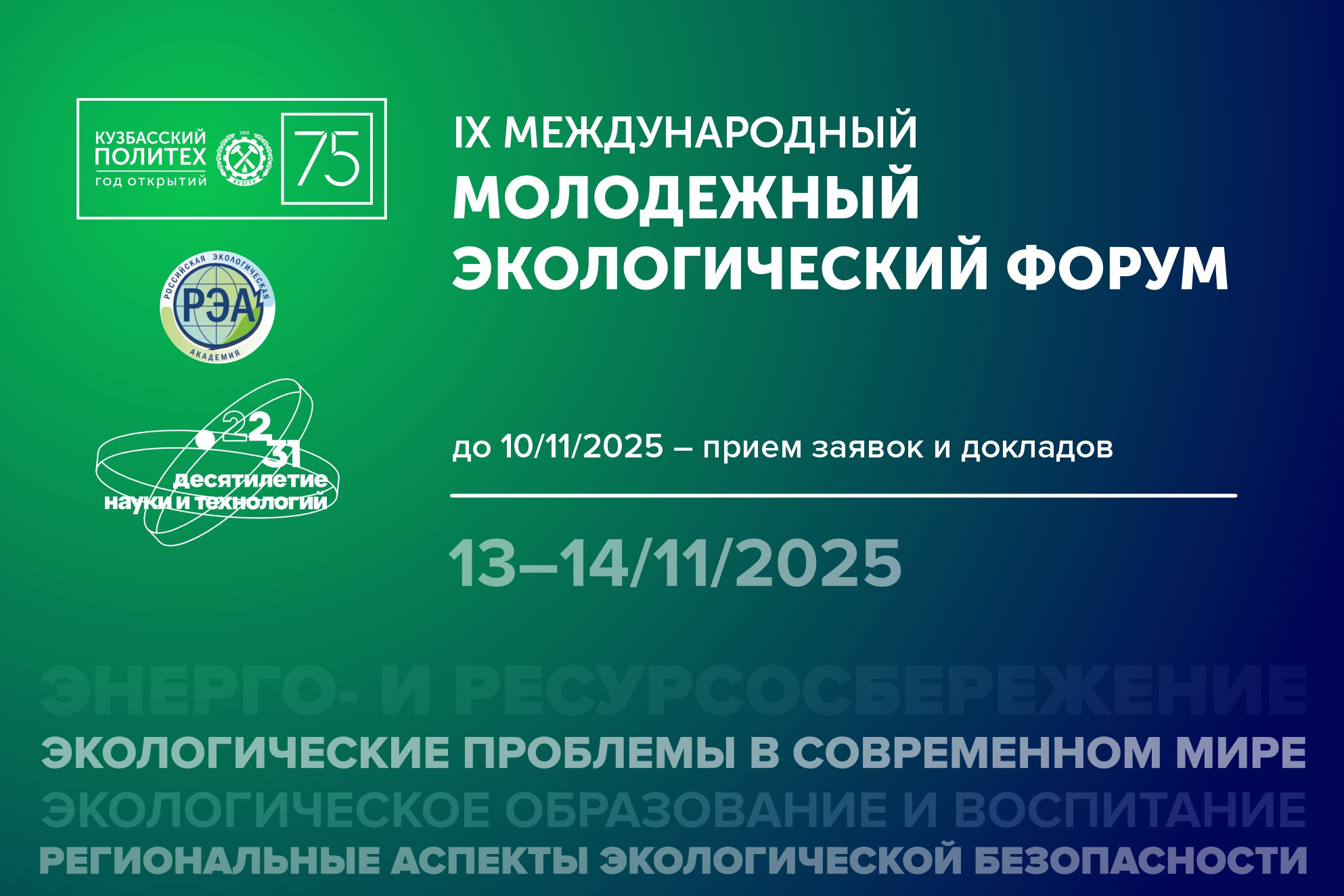 13–14 ноября в Кузбасском государственном техническом университете пройдёт IX Международный молодёжный экологический форум. К участию приглашаются школьники, студенты, аспиранты, учёные и сотрудники отраслевых компаний в возрасте до 35 лет.
