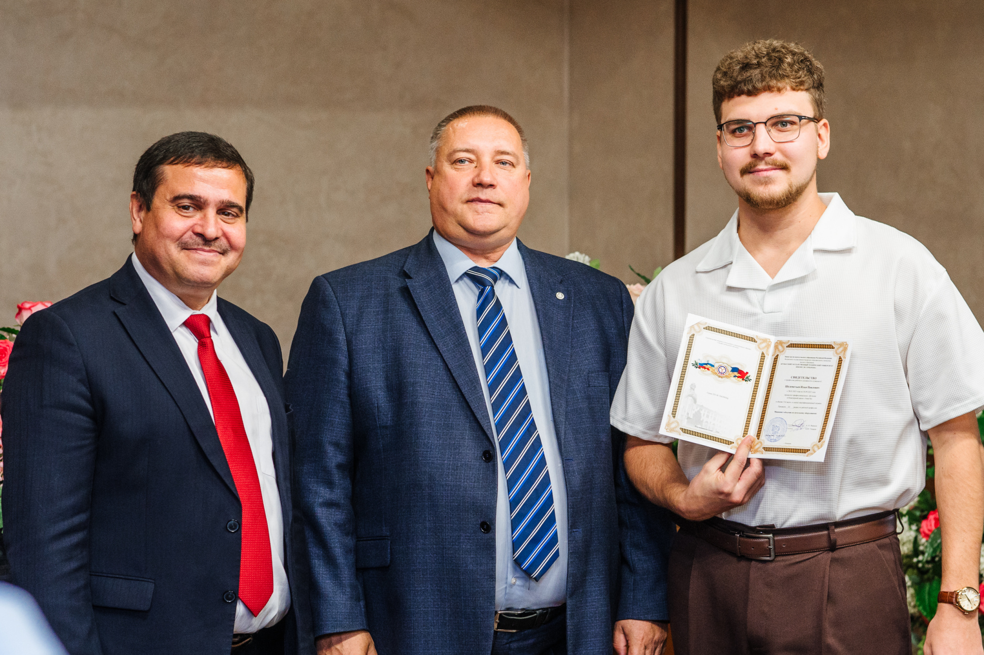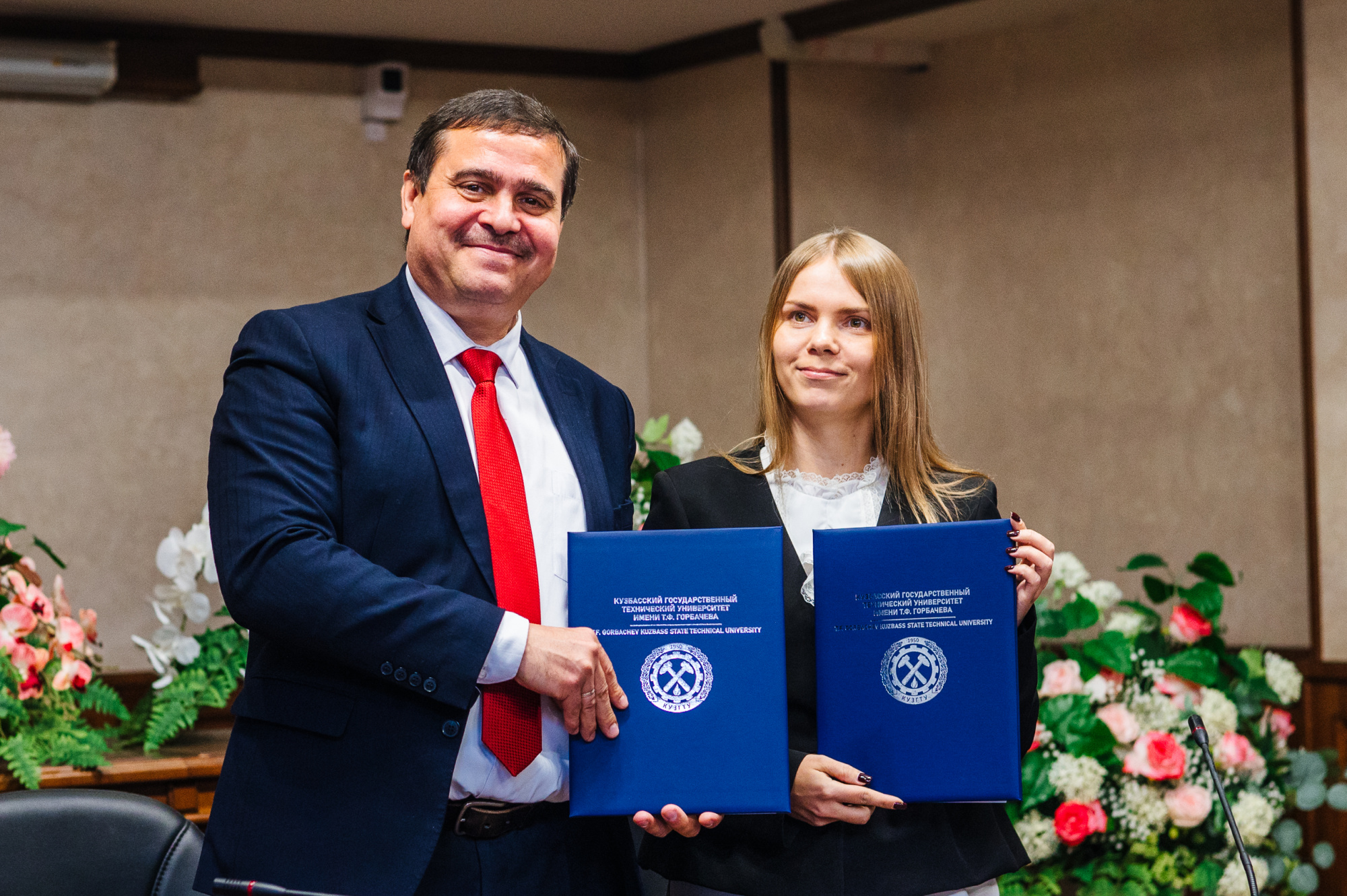 Свидетельства о получении профессии рабочего студентам – участникам проекта «Целевой энергетический поток» – тожественно вручили генеральный директор АО «Кузбассэнерго» Виктор Лариошкин и ректор КузГТУ Алексей Яковлев.