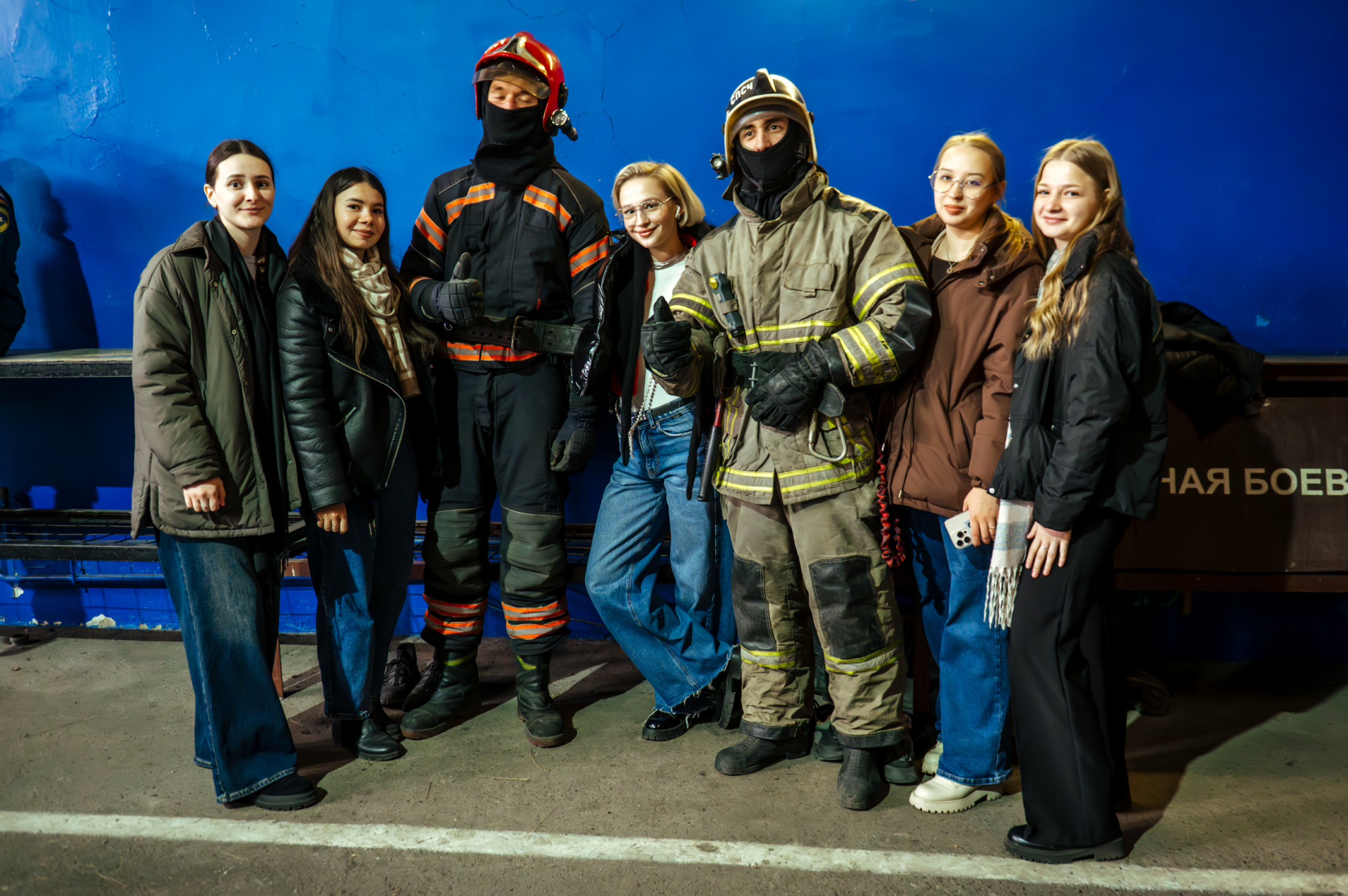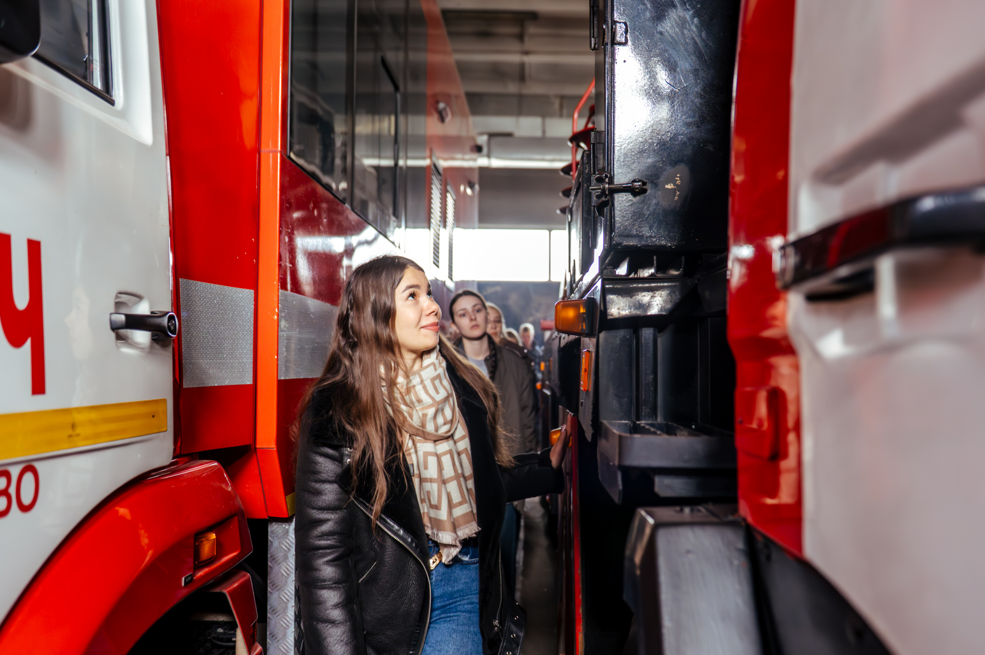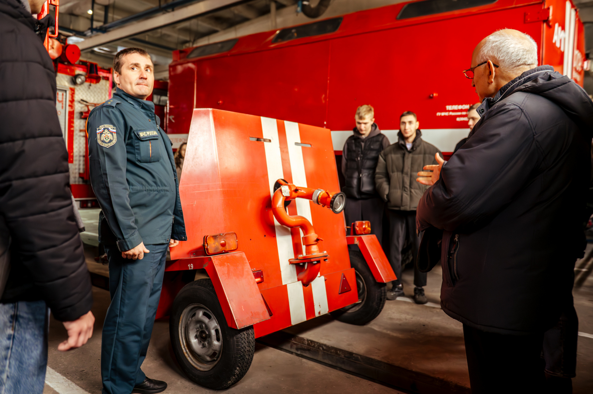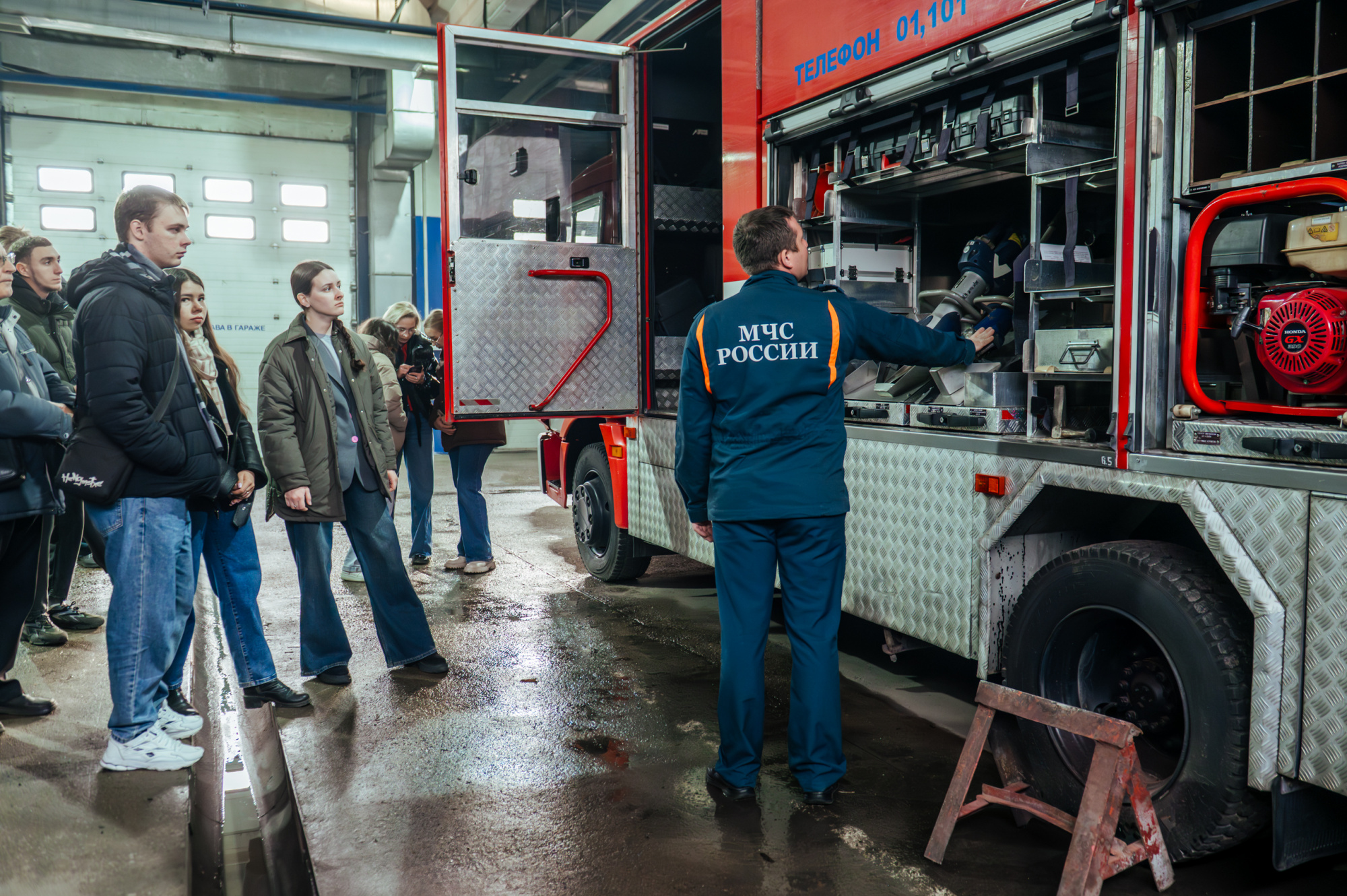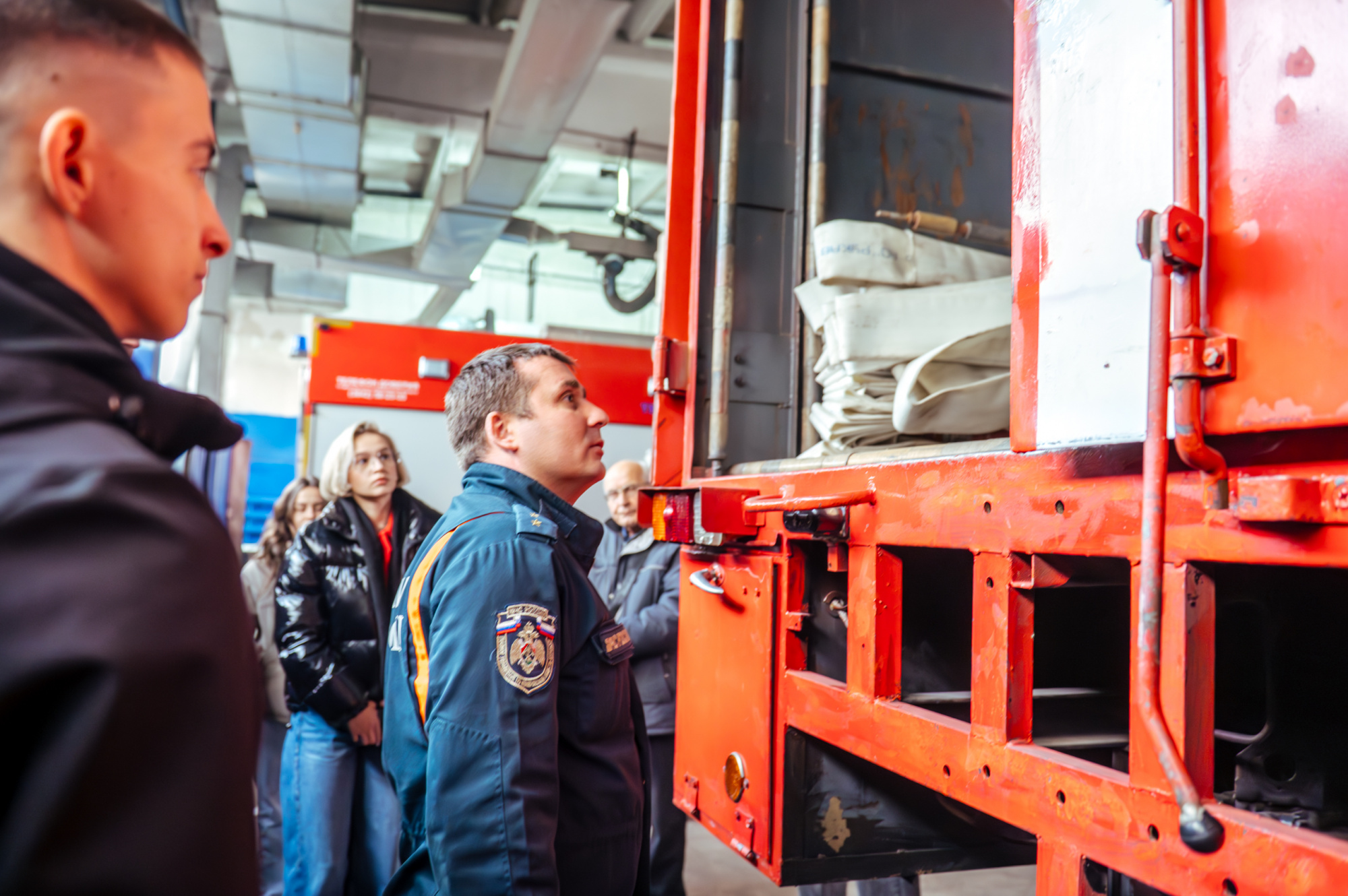 Кульминацией стал настоящий тревожный вызов. Прямо во время экскурсии сработал сигнал, и пожарные мгновенно выехали на ликвидацию возгорания. Студенты в реальном времени увидели, как быстро, четко и слаженно спасательные службы реагируют на чрезвычайные ситуации.