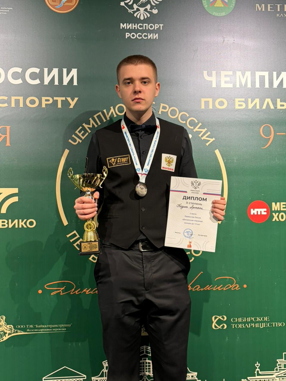 Первокурсник института экономики и управления Артем Козин стал вице-чемпионом Первенства России по бильярдному спорту среди юниоров в дисциплине «Динамичная пирамида».