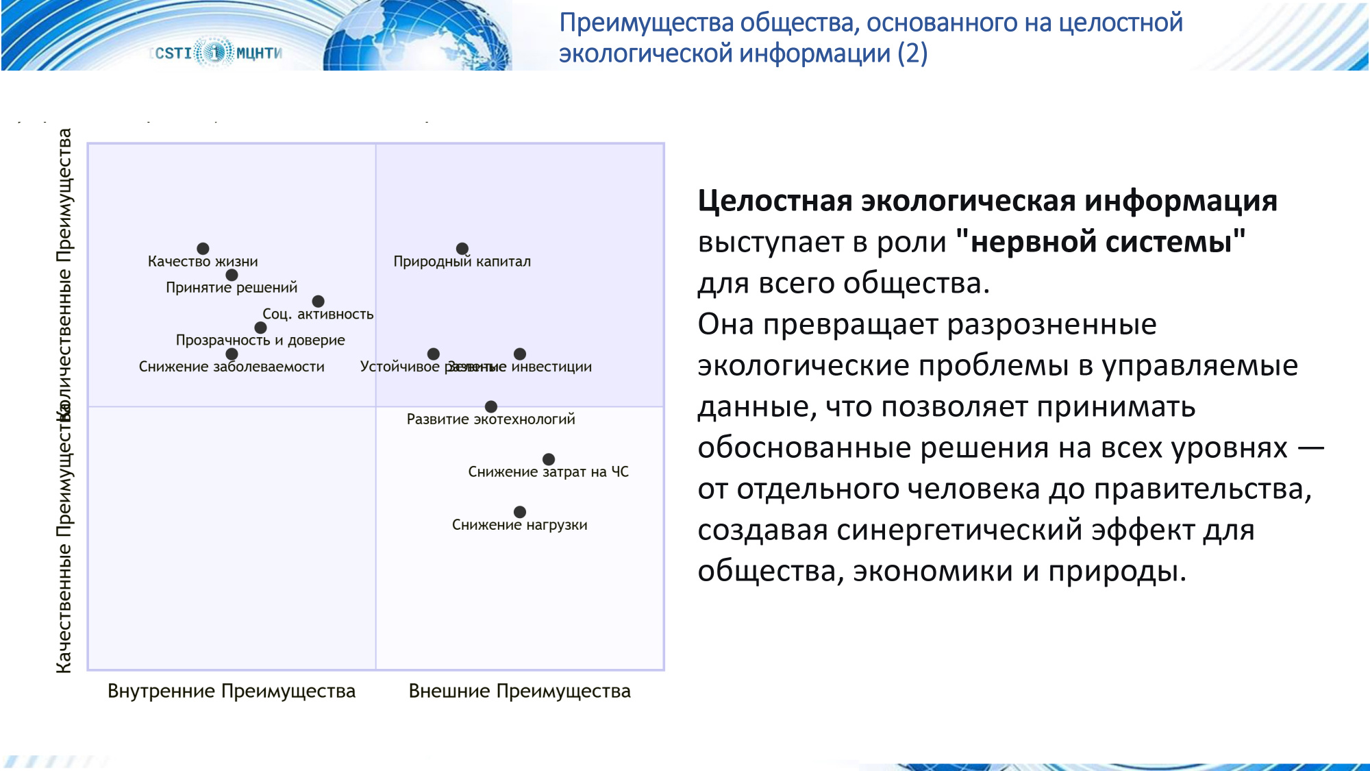 Марина Некрасова, член генерального совета Общественной палаты ЕАЭС, Председатель комитета экологии и устойчивых моделей развития стран ЕАЭС, член Президиума РЭА, эксперт аналитического центра при Правительстве Российской Федерации, Общественного совета Министерства природных ресурсов и экологии Российской Федерации, МЦНТИ, к.г.-м.н., чл.-корр. РЭА (г. Москва, Россия). Озвучила важную тему - роль экологической информации в формировании экологически безопасного общества. Целостность экологической информации — ключ к экологической безопасности и стратегический ресурс для управления рисками. Она позволяет перейти от реагирования на кризисы к их проактивному предупреждению. Повышение прозрачности и доступности данных — ключ к: повышению доверия общества, эффективному госуправлению, принятию обоснованных решений бизнесом. Регионы с высокой прозрачностью экологических данных показывают значительные достижения целей устойчивого развития.