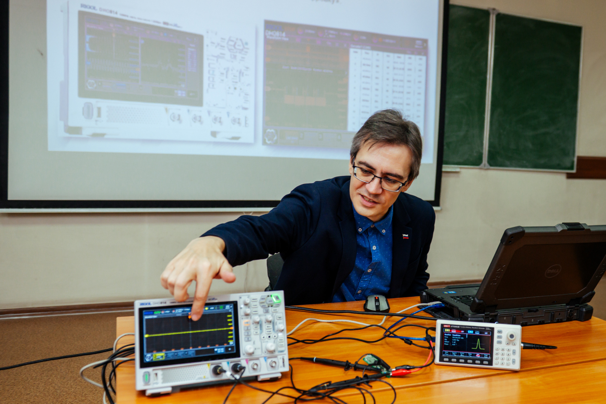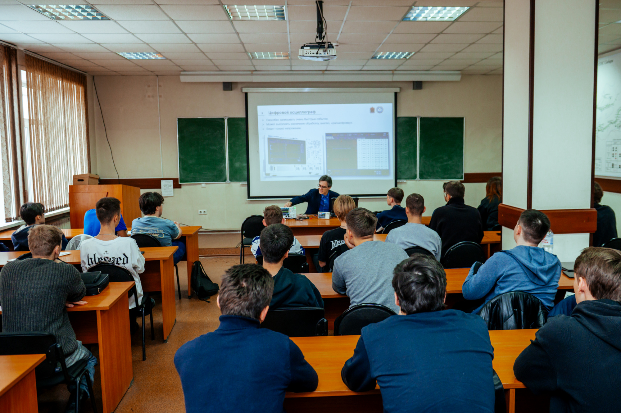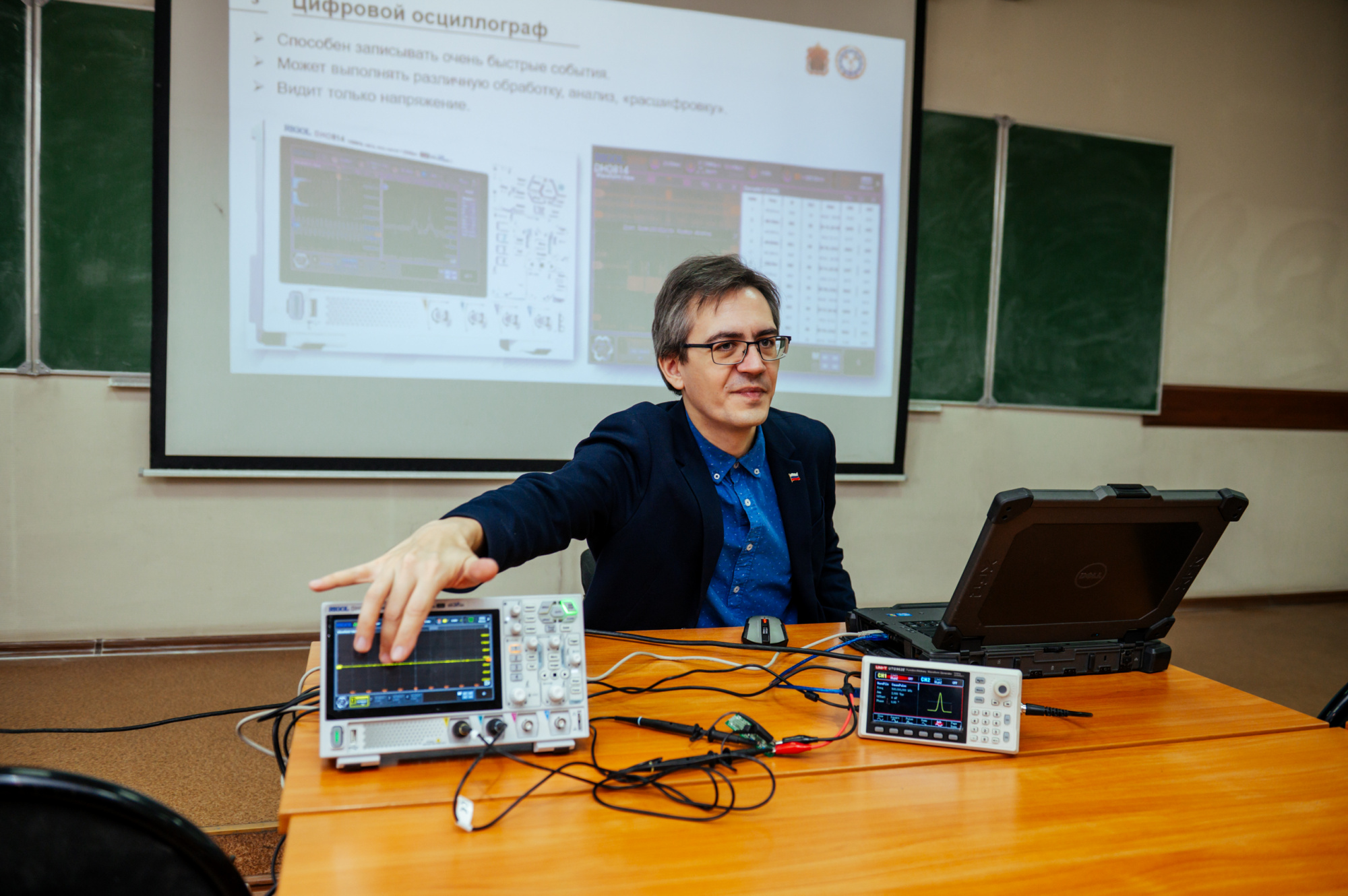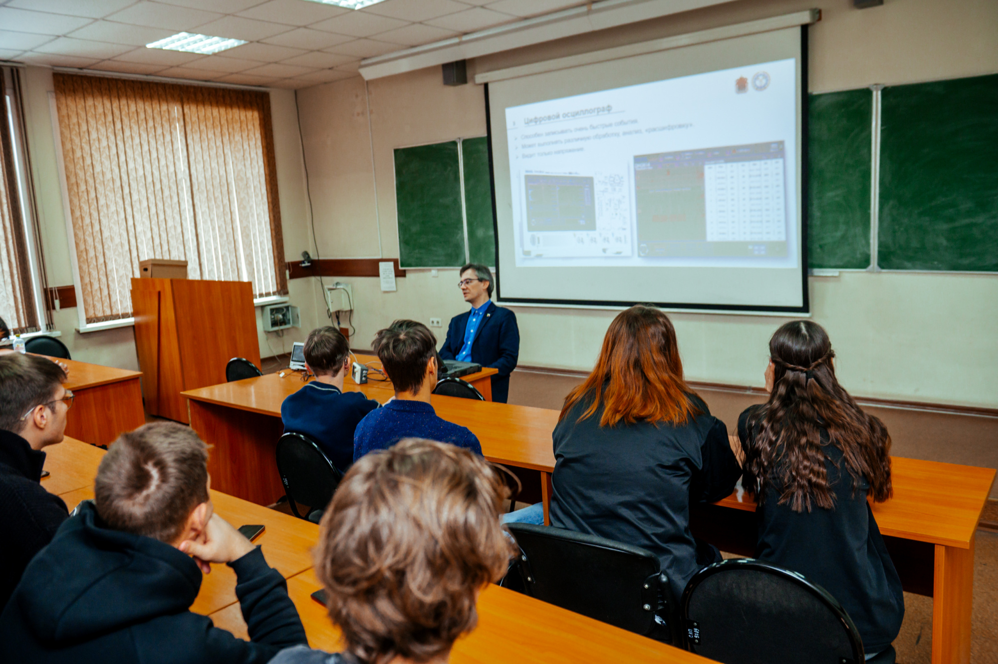 14 ноября, «студенческий день» IX Фестиваля радиоэлектроники начался с открытой лекции «Построение автоматических испытательных комплексов для измерения электрических параметров электронных компонентов и устройств». Прочитал ее Владислав Немов, старший преподаватель кафедры электропривода и автоматизации: