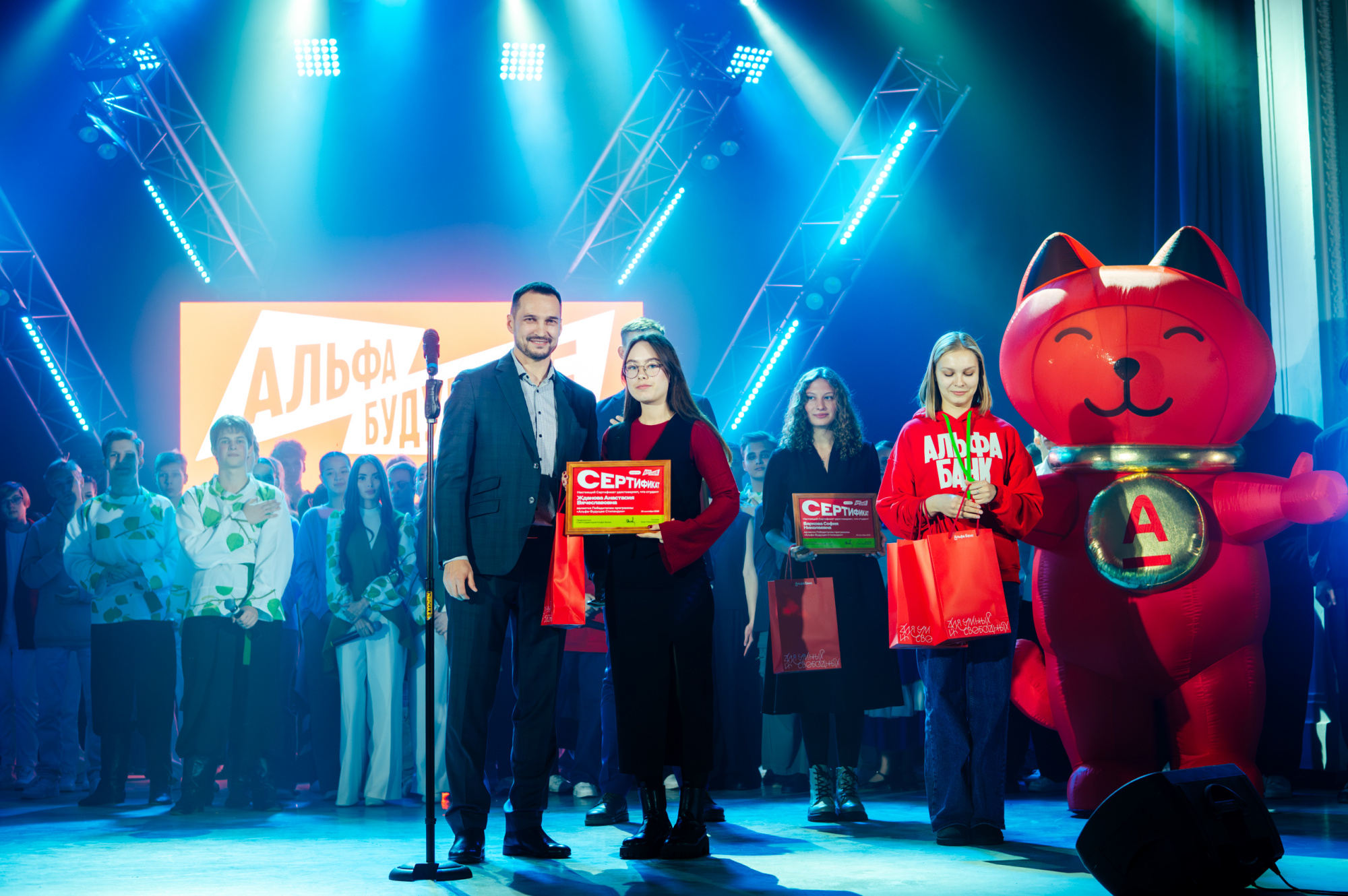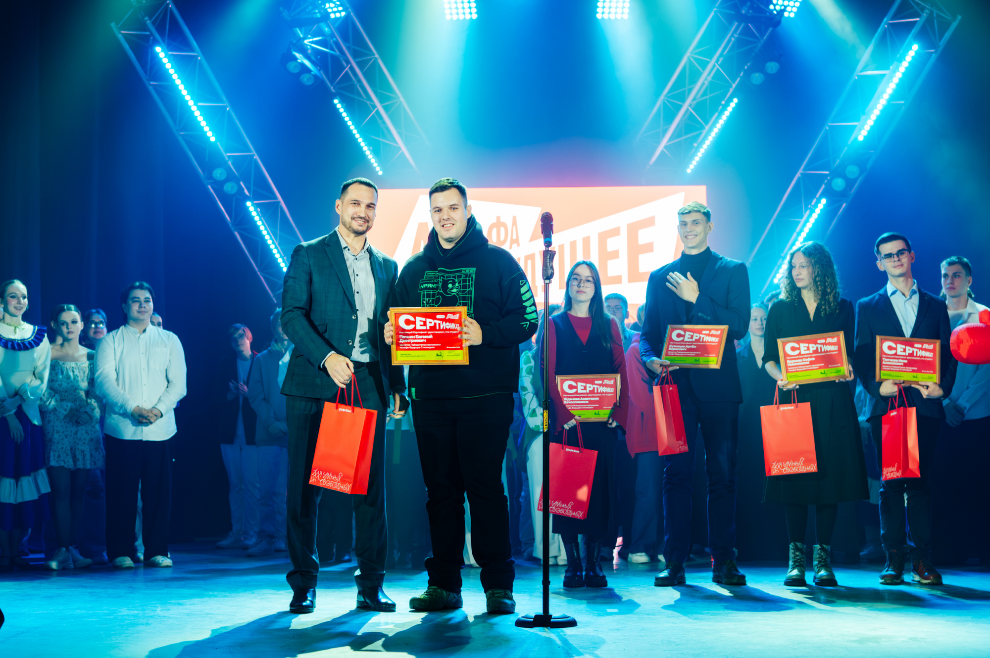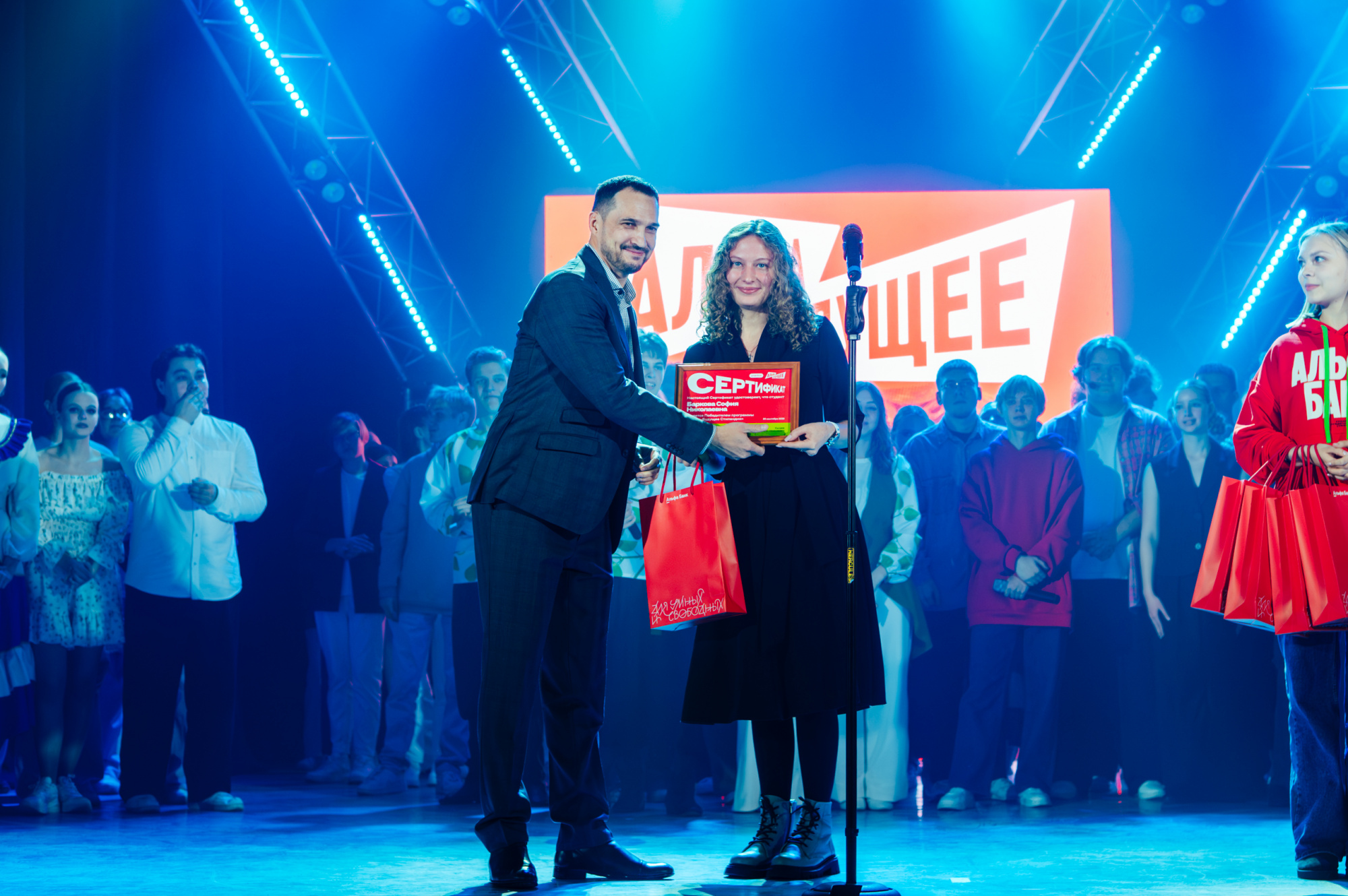 Региональный управляющий офиса «Кемеровский» Альфа-Банка Сергей Горбунов наградил победителей стипендиальной программы «Альфа-Будущее | Стипендии». Вручение сертификатов состоялось на гала-концерте фестиваля «Дебют-2025».