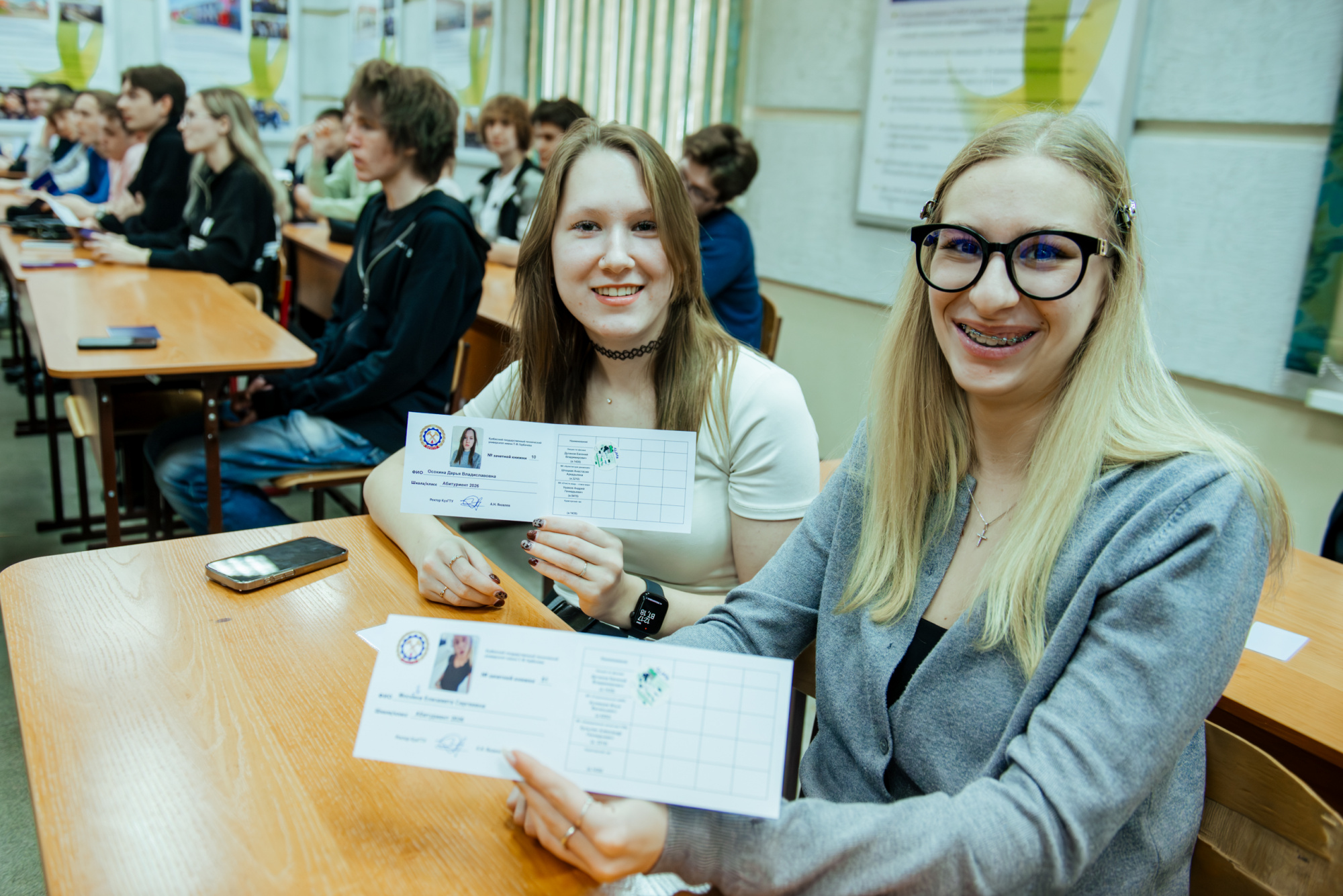 После всех экспериментов в лабораториях старшеклассники отправились на кураторский час, где им рассказали об университете. Завершился день награждением «отличников», в зачетках которых оказалось больше всего наклеек, заменивших оценки. Кроме того, школьники получили немаловажный бонус – дополнительные баллы при поступлении в КузГТУ.