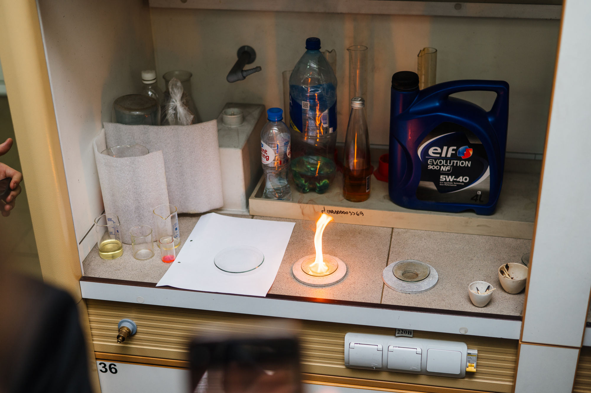 В лаборатории горюче-смазочных материалов кафедры эксплуатации автомобилей студенты учатся определять качественные показатели топлива. Об этом гостям вуза рассказал старший преподаватель кафедры Александр Кульпин. Например, с помощью спектроскана определяют наличие серы в топливе; «чистоту» нефтепродукта можно оценить с помощью горения - ребята сами попробовали сжечь бензин и спирт, чтобы сравнить процессы горения разных веществ.