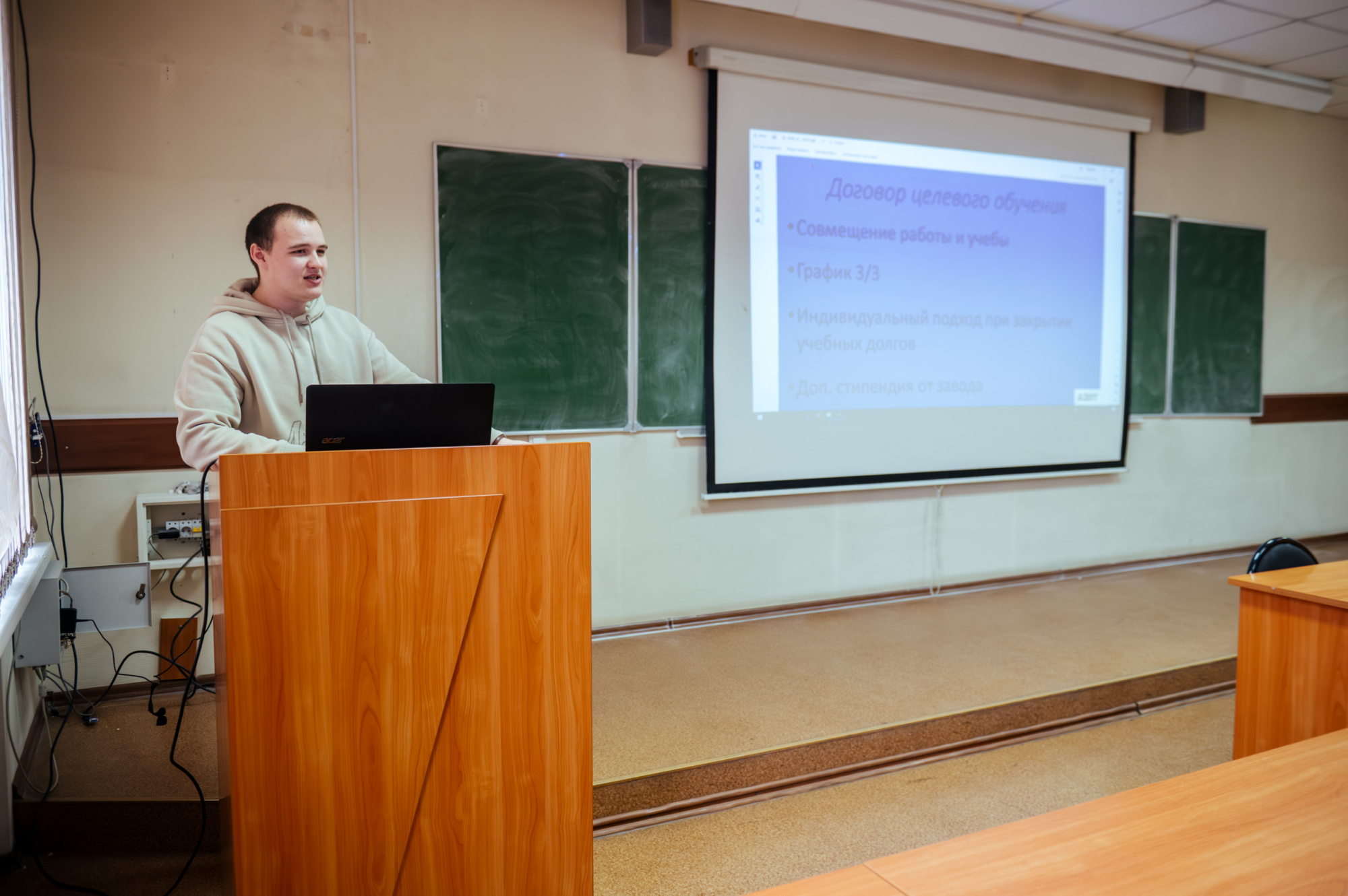 Данил Фоос заключил договор с КАО «Азот», студент работает стажером-специалистом. Он отметил, что на работе ему пригодились полученные в вузе знания. На предприятии необходимо было читать и понимать чертежи, пользоваться CAD-системами, знать ЕСКД, материаловедение, владеть металлорежущими и измерительными инструментами.