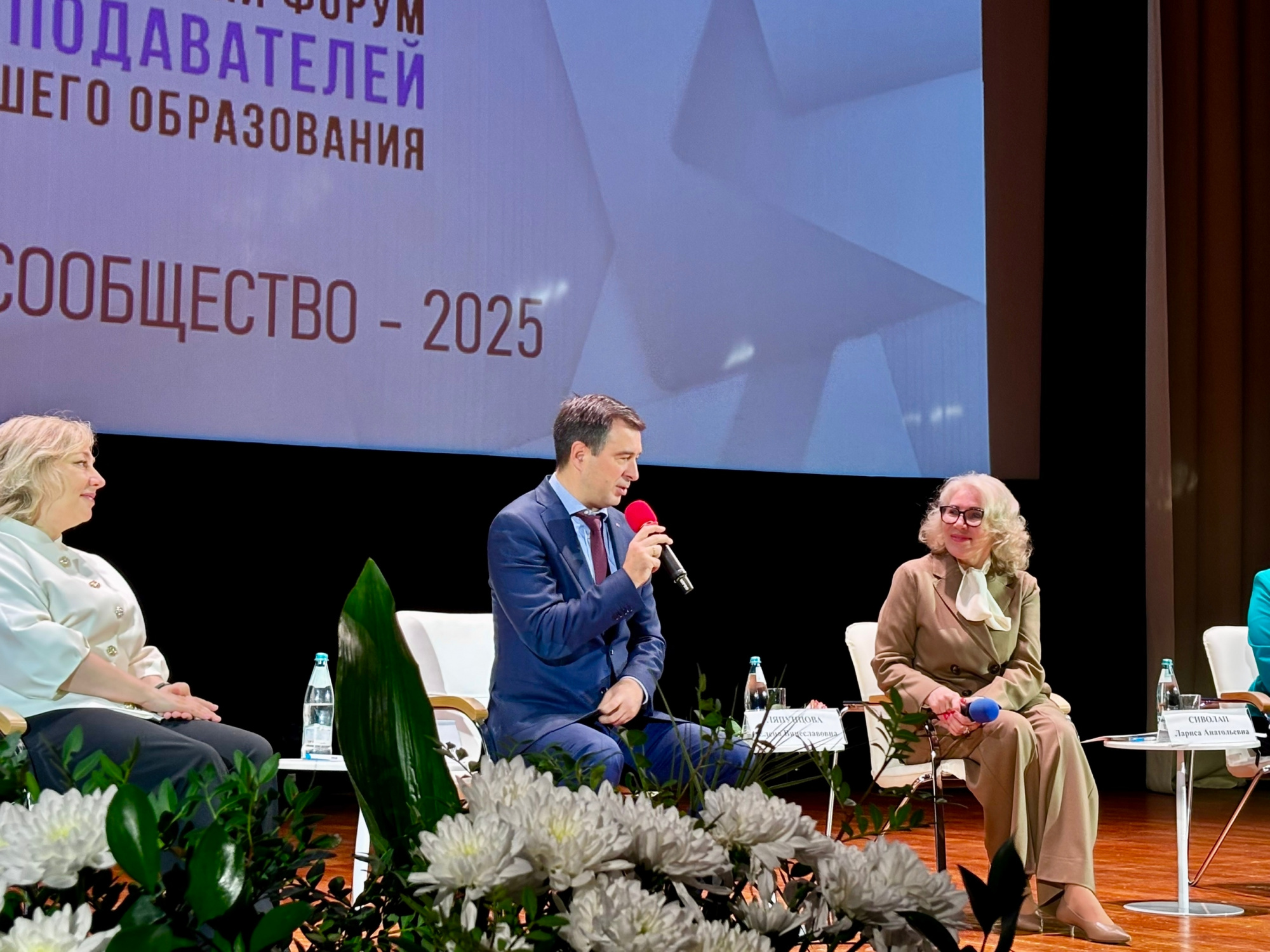 В ноябре прошел Всероссийский форум преподавателей высшего образования «Академическое сообщество-2025», организованный Министерством науки и высшего образования РФ совместно с Лигой преподавателей высшей школы. Мероприятие, приуроченное к 10-летию Лиги, объединило представителей более чем 70 российских вузов.