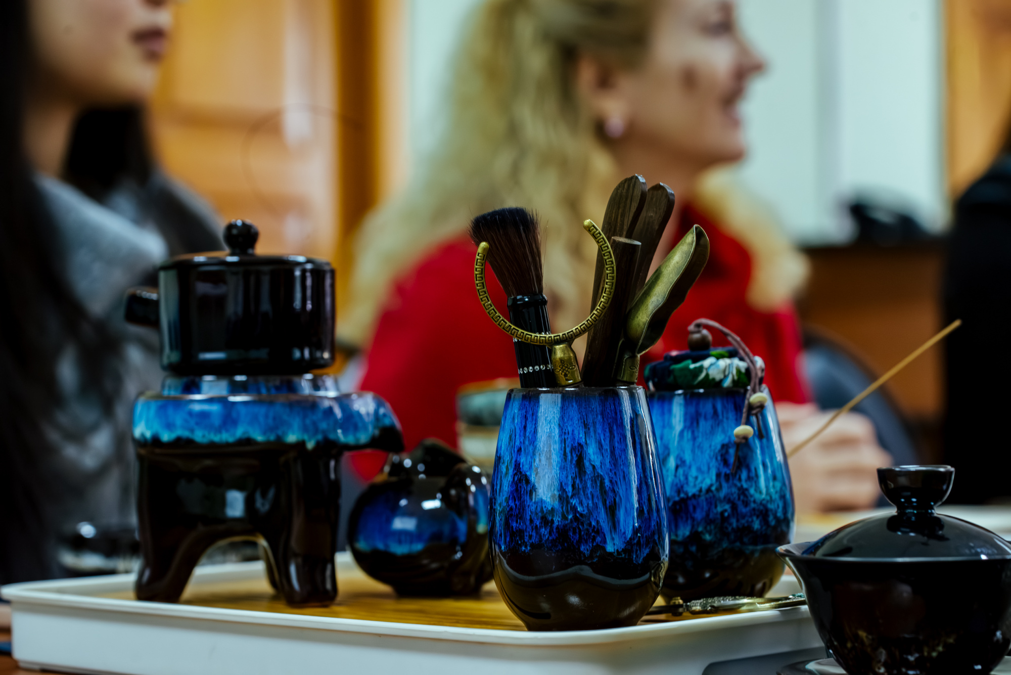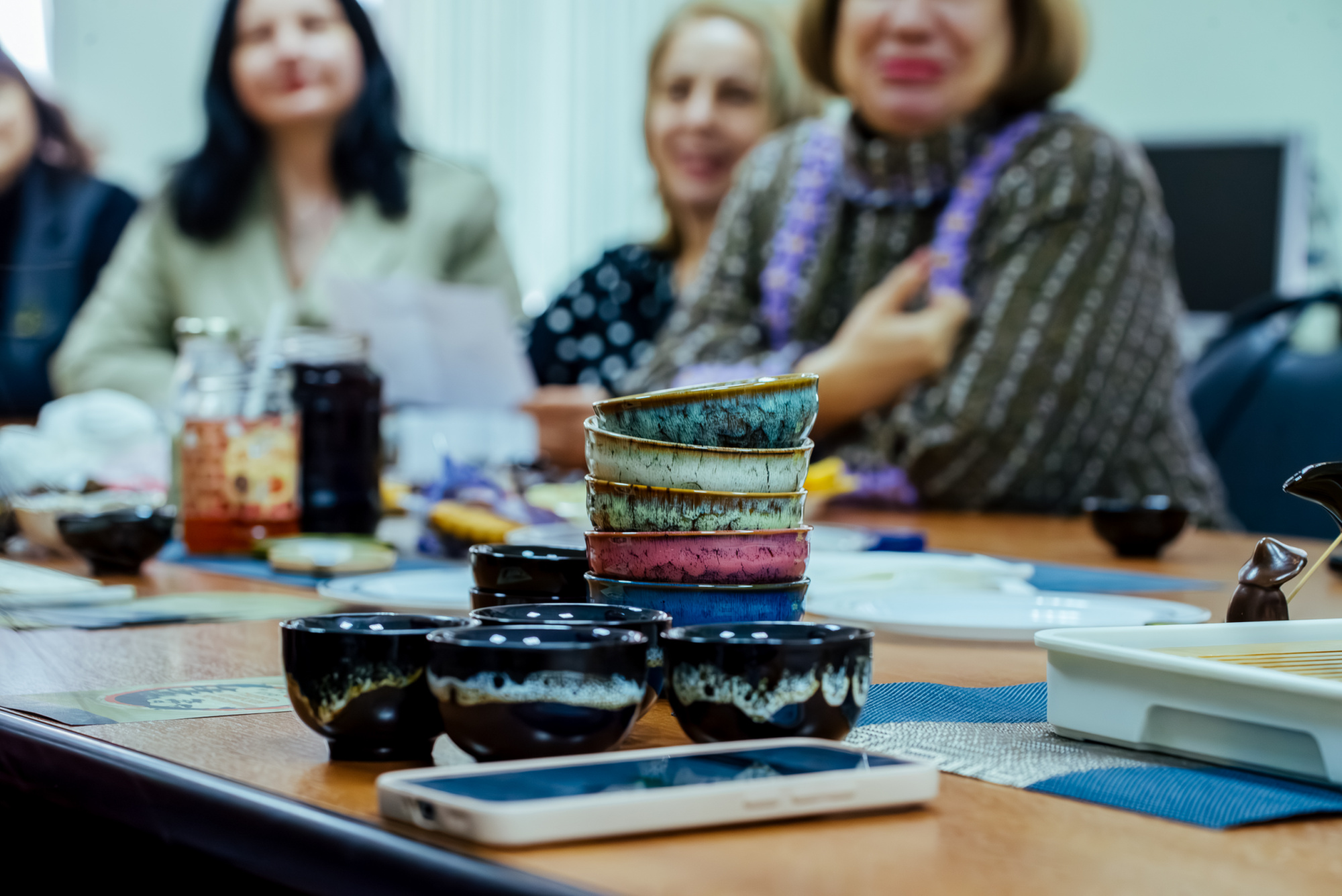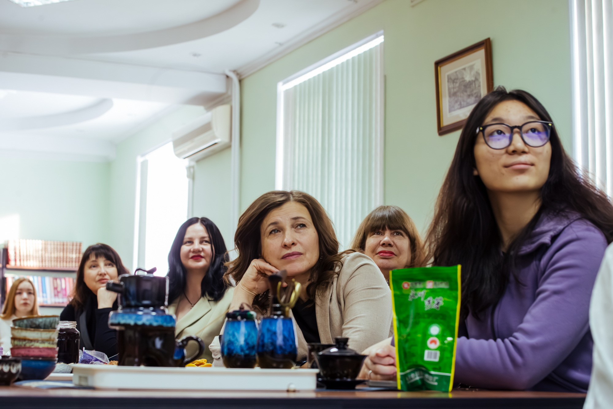 Участники встречи воспользовались традиционным китайским сервизом, состоящим из множества маленьких предметов, о которых рассказали китаянки. Ароматный бодрящий улун и терпкий жасминовый чай способствовали активному обмену знаниями и впечатлениями.