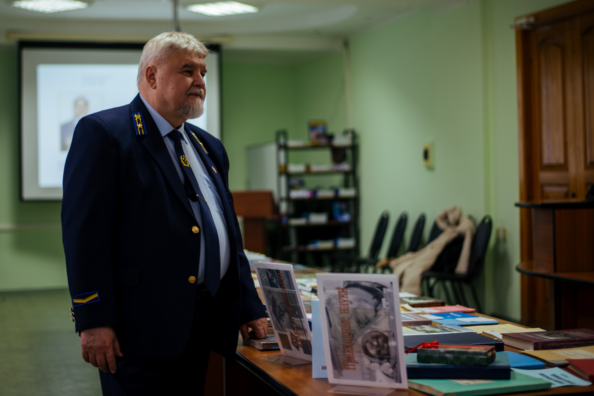 На выставке представлены научные труды юбиляра. Среди них публикации в Вестнике Кузбасского государственного технического университета, федеральных сборниках и монографии. Также можно увидеть издания по истории вуза, родного края и угольной отрасли. В их числе «Угольный Кузбасс», «Жизнь замечательных людей Кузбасса», «Профессорский корпус КГИ–КузПИ–КузГТУ», «Корифей шахтного строительства».