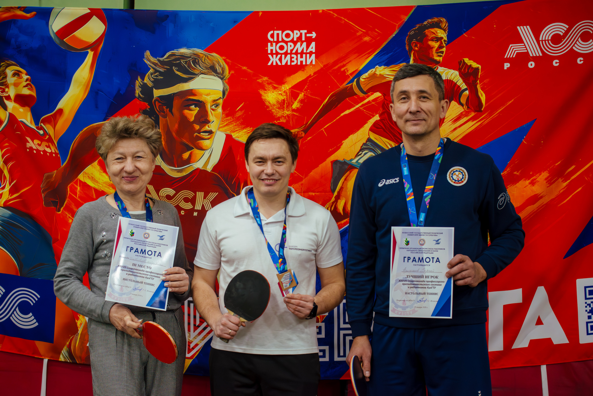В рамках XXXVII Спартакиады профессорско-преподавательского состава и работников КузГТУ состоялись соревнования по настольному теннису. Турнир собрал команды институтов и подразделений университета и стал одним из самых динамичных этапов Спартакиады.