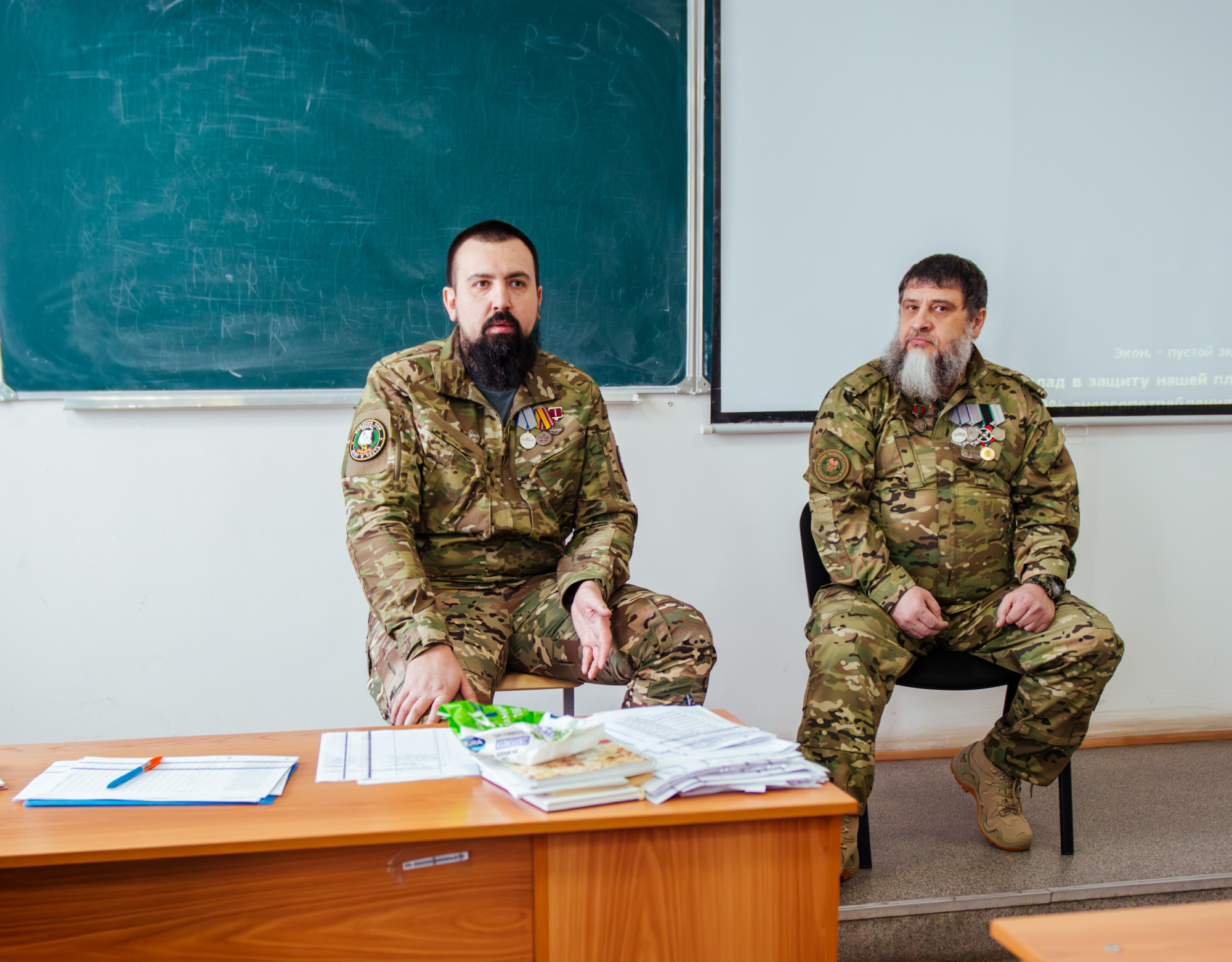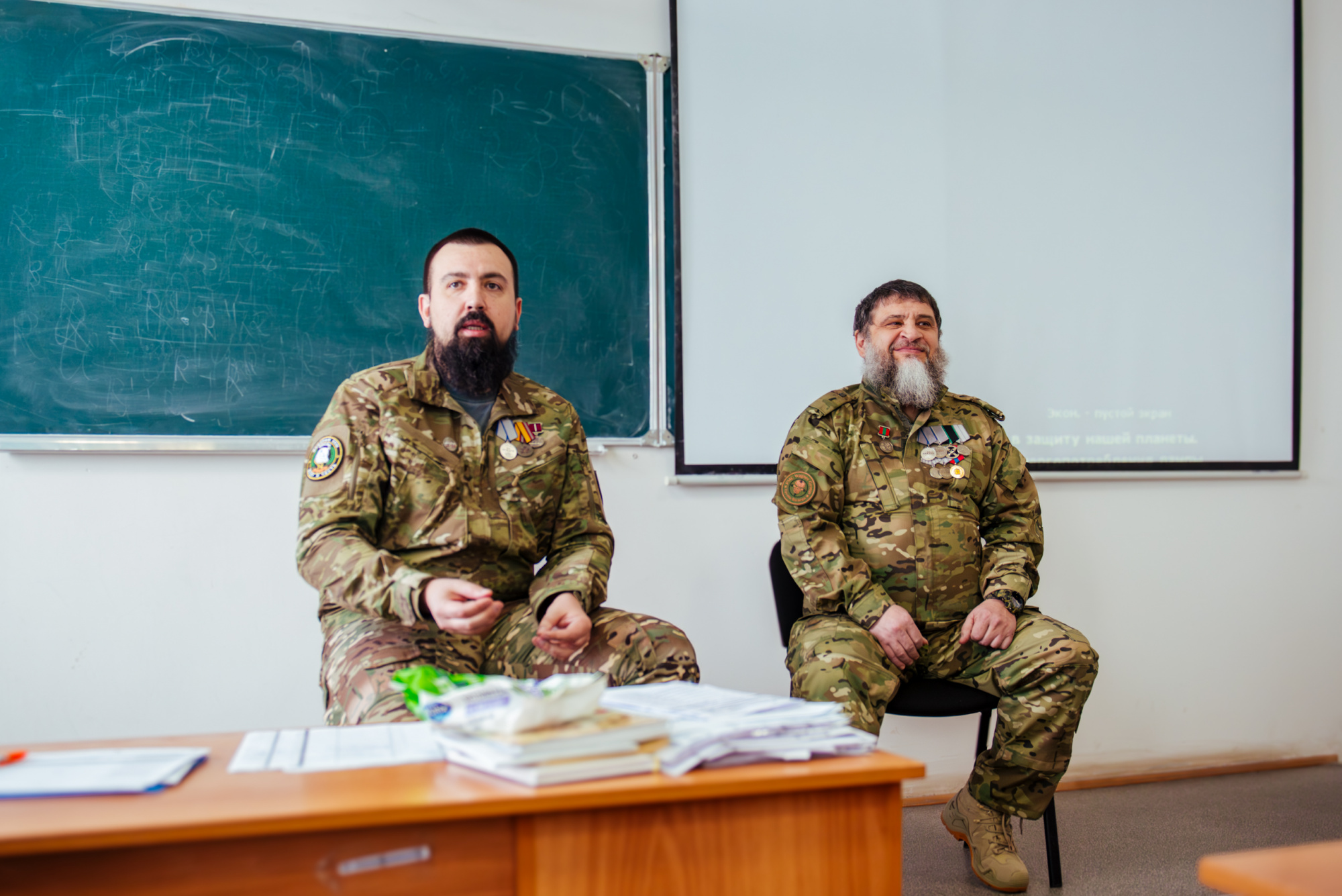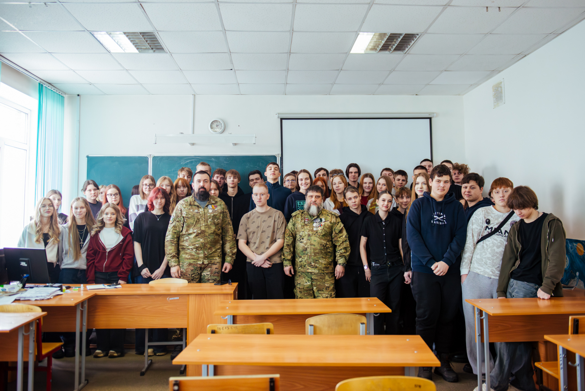 26 января состоялась встреча студентов института профессионального образования с ветеранами СВО: Иваном Курасовым, который в 2009 году окончил КузГТУ по специальности «Экспертиза и управление недвижимостью», и его боевым товарищем Максимом Демидовым. Военнослужащие поздравили ребят с Днём студента и поделились опытом.