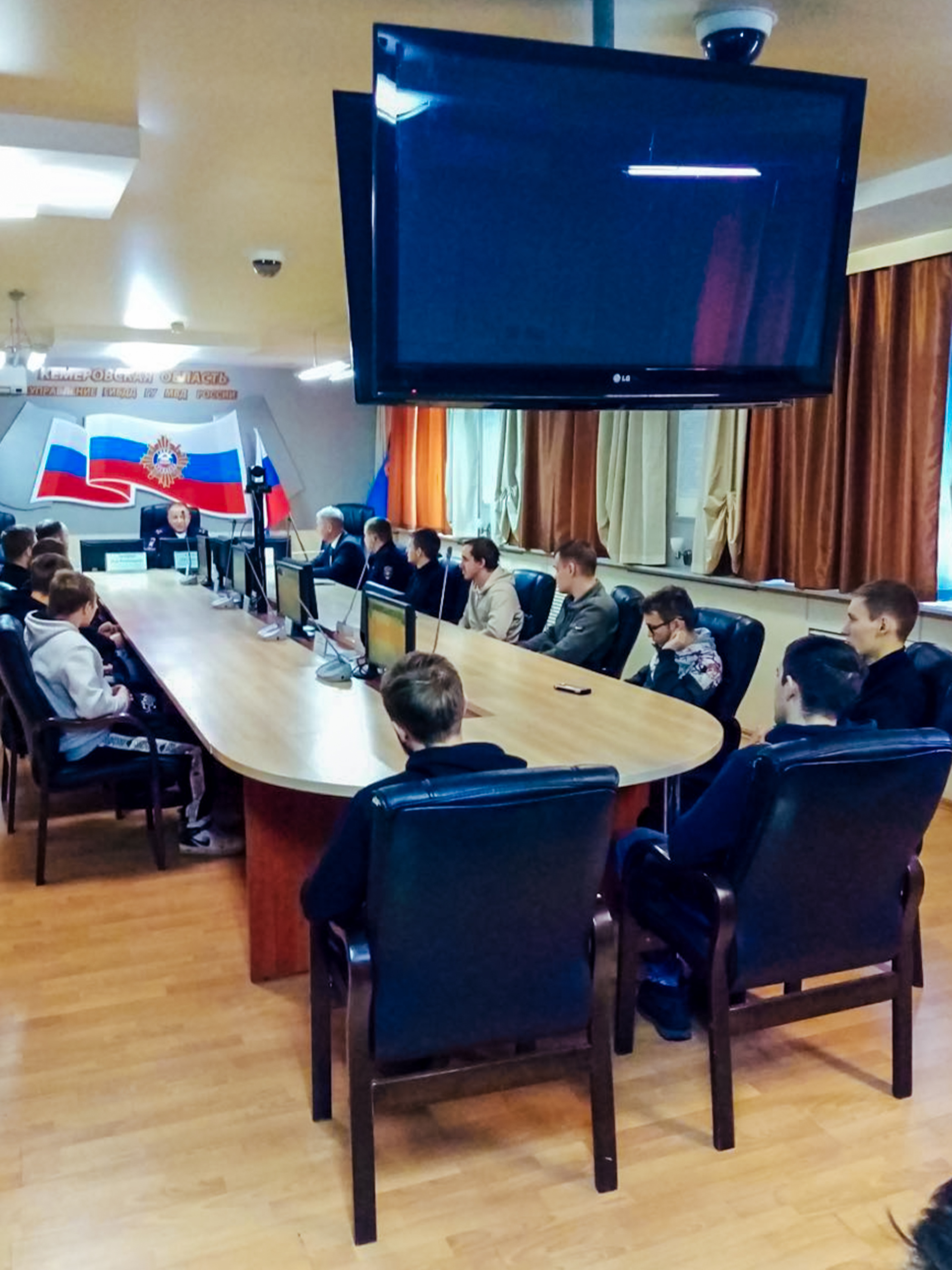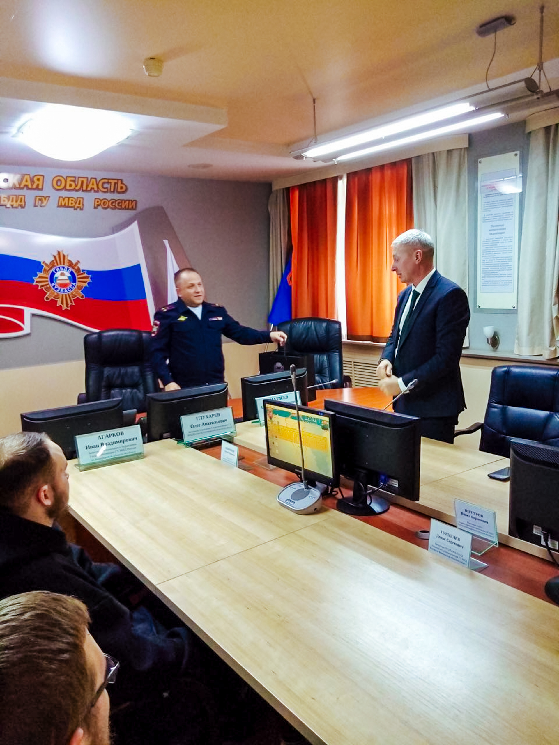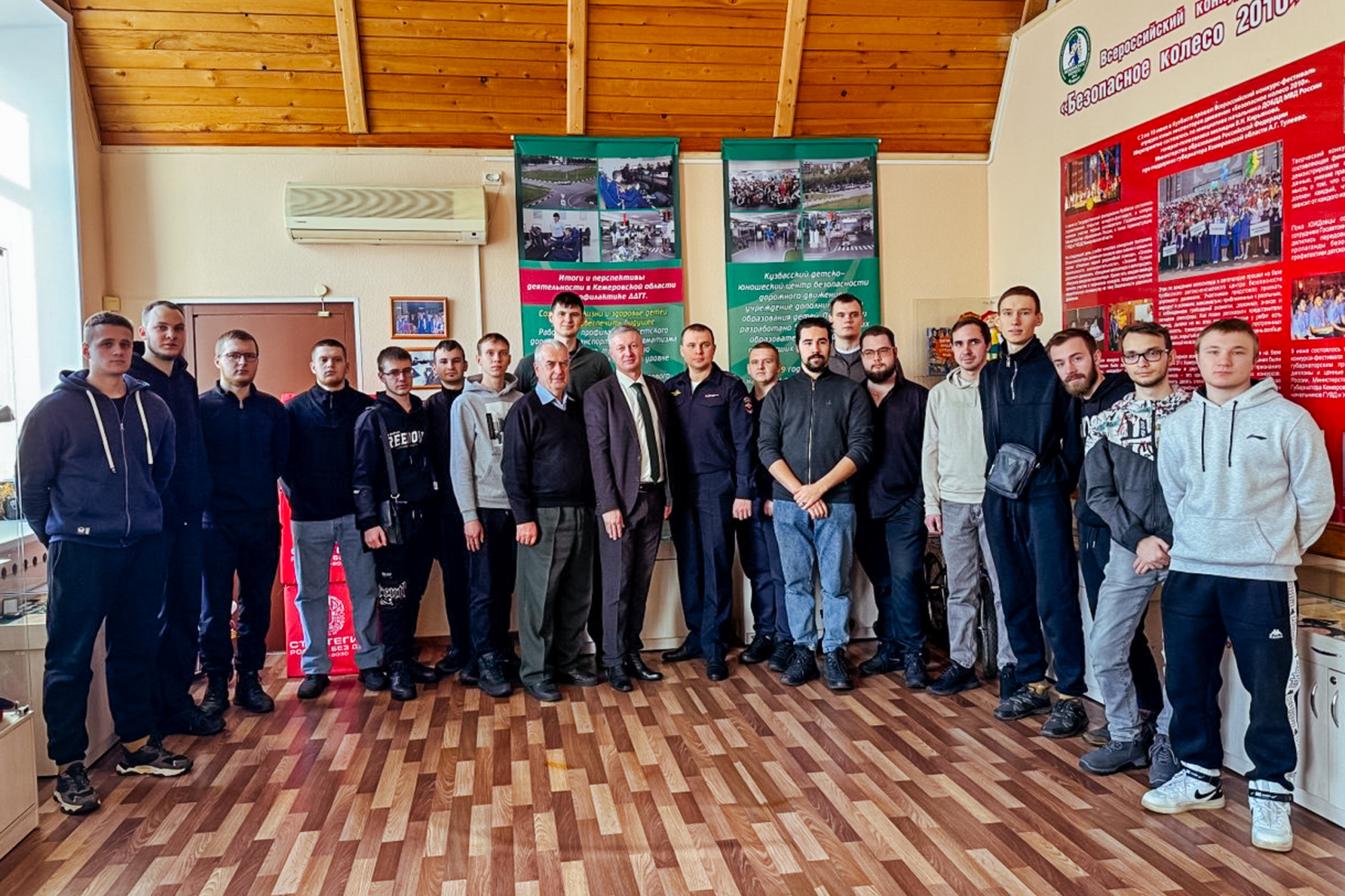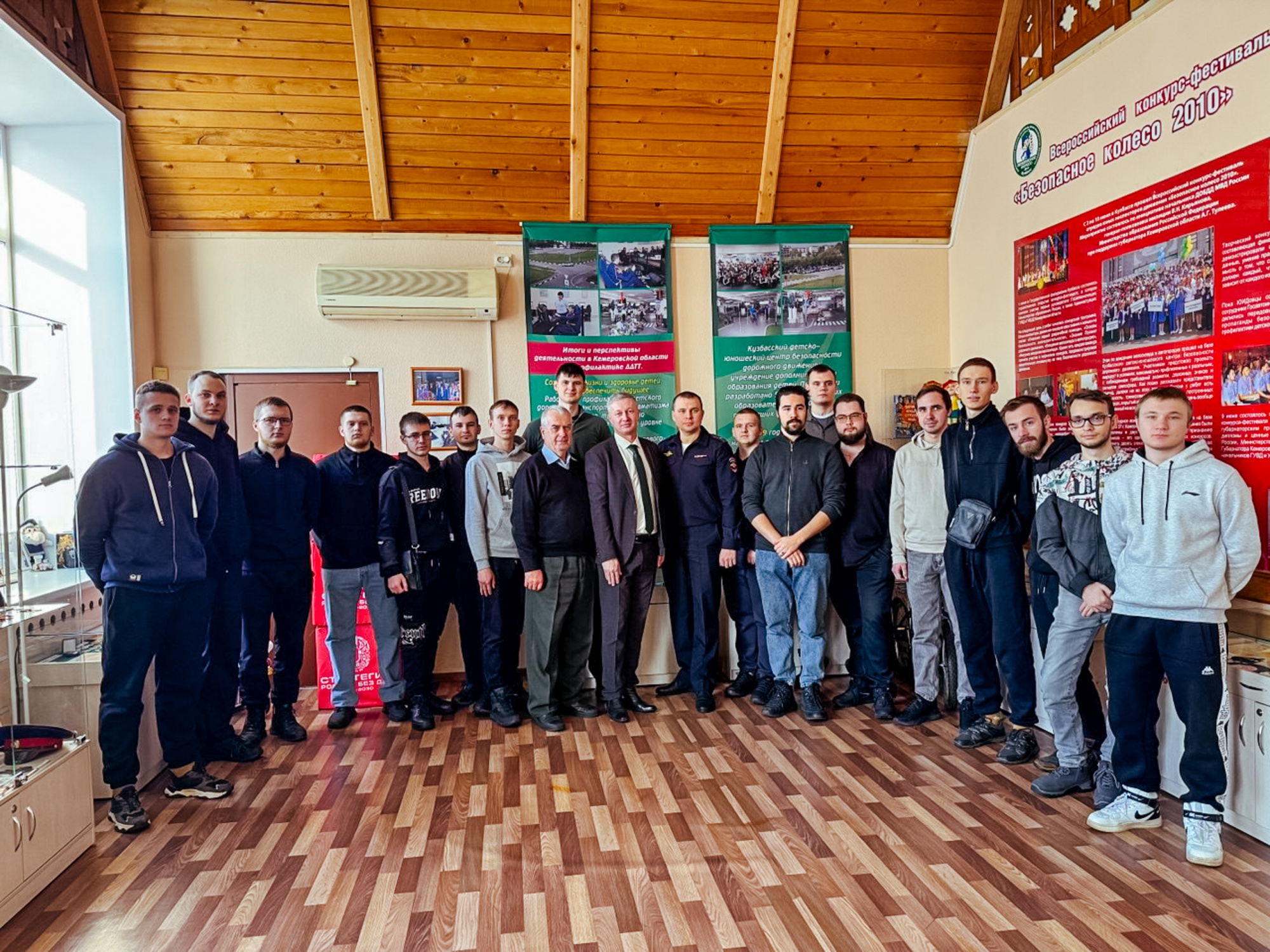 Обзорную экскурсию по зданию провел начальник отдела пропаганды безопасности дорожного движения УГИБДД ГУ МВД России по Кемеровской области Евгений Наумкин. Студенты: