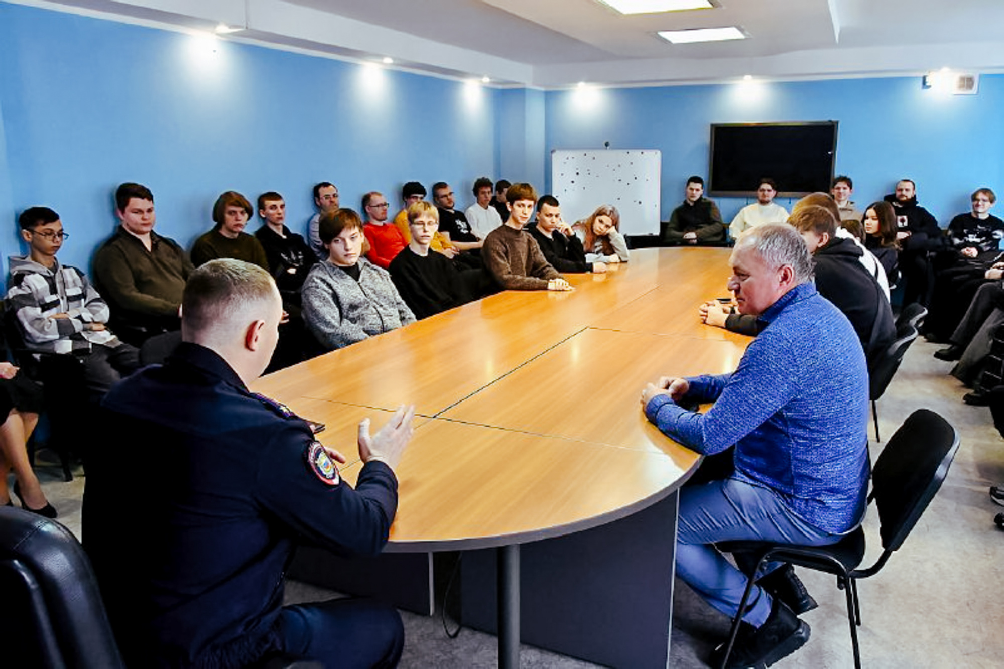 Ребят встретили руководители и сотрудники областного полицейского Главка. Начальник УНК полковник полиции Роман Белокопытов рассказал студентам, как сегодня строится борьба с наркопреступностью, подчеркнув, что злоумышленники активно используют современные цифровые технологии и бесконтактные способы сбыта, но и полиция не отстаёт — современные методы позволяют раскрывать даже самые сложные криминальные схемы.