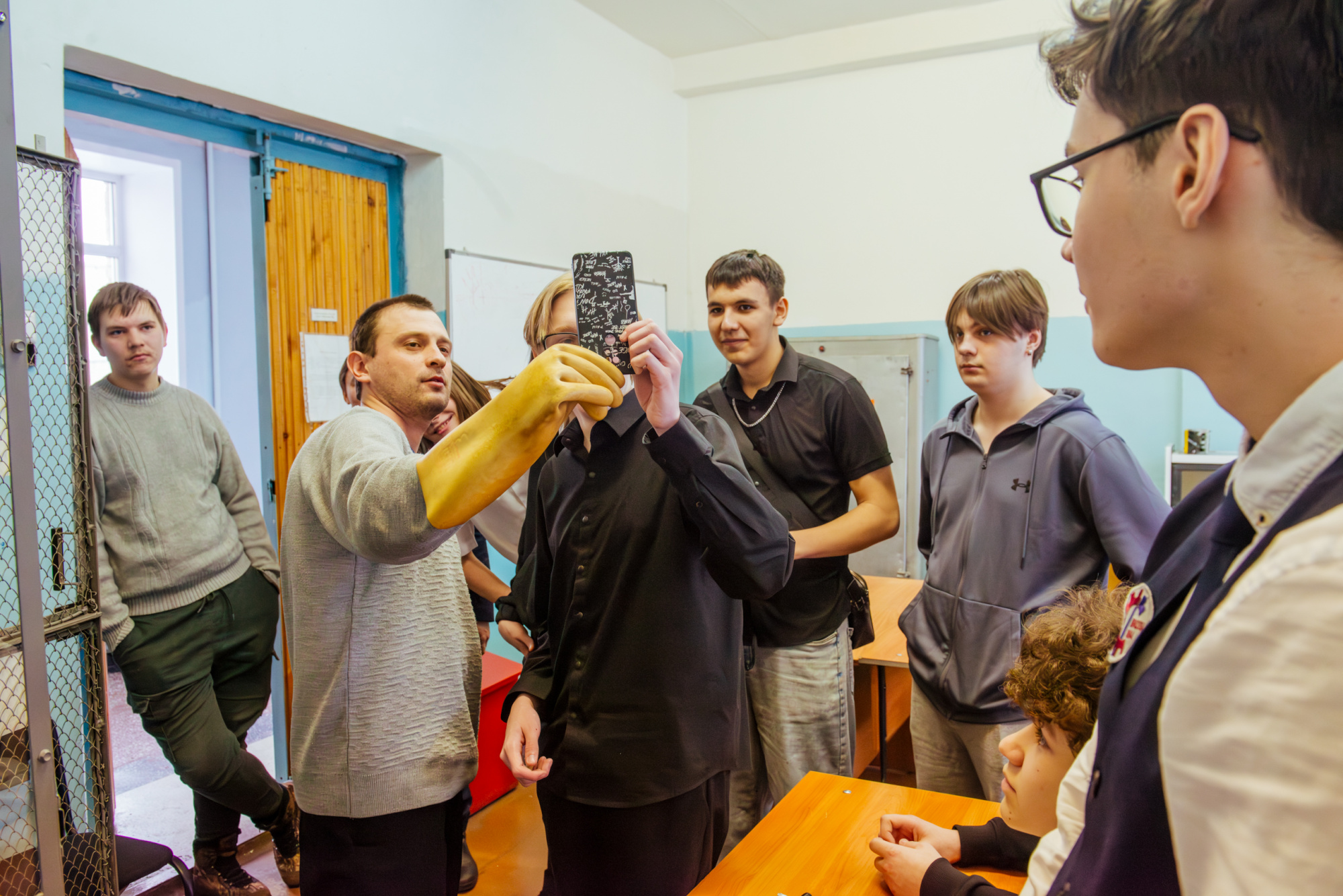 Старший преподаватель кафедры теплоэнергетики Вероника Горина научила старшеклассников работать с тепловизором. С помощью устройства школьники исследовали распределение тепла в помещении. Они выяснили, что в углах и около оконных проёмов температура обычно ниже, а возле радиаторов – выше. Также преподаватель рассказала, как устроена система вентиляции и какие её виды существуют.