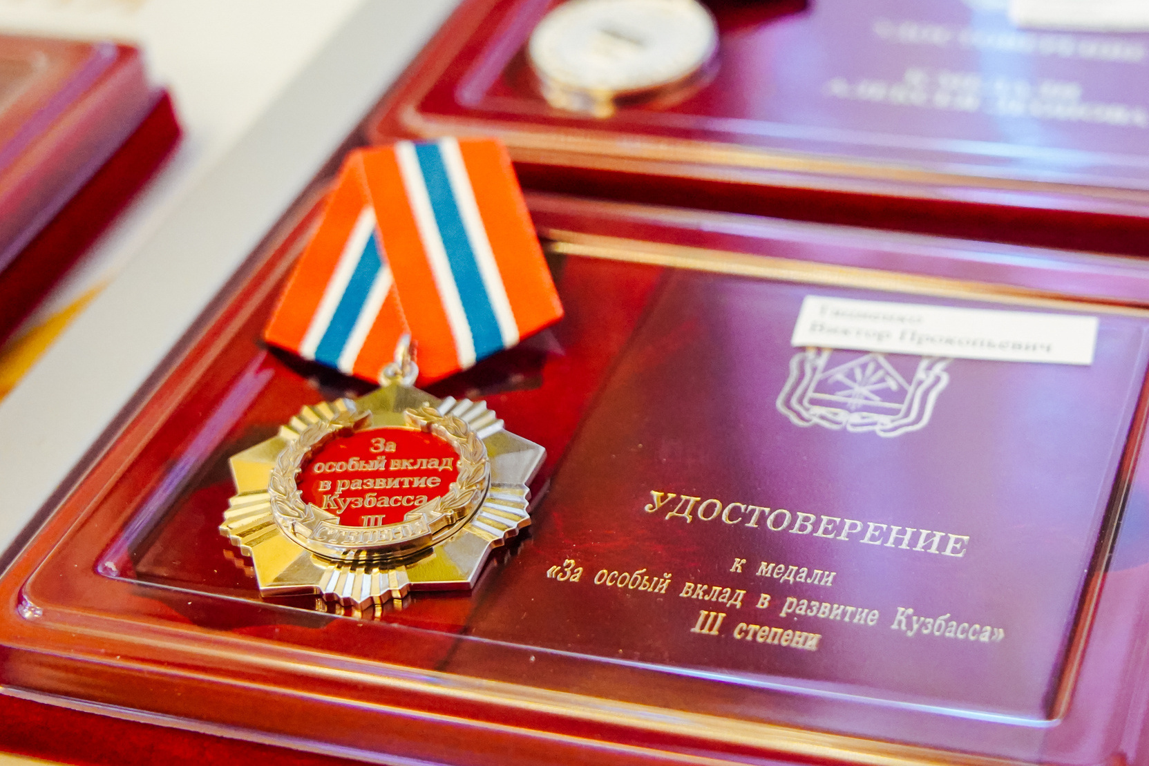 Профессору кафедры горных машин и комплексов, доктору технических наук, доценту Виктору Тациенко вручили медаль «За особый вклад в развитие Кузбасса» III степени.