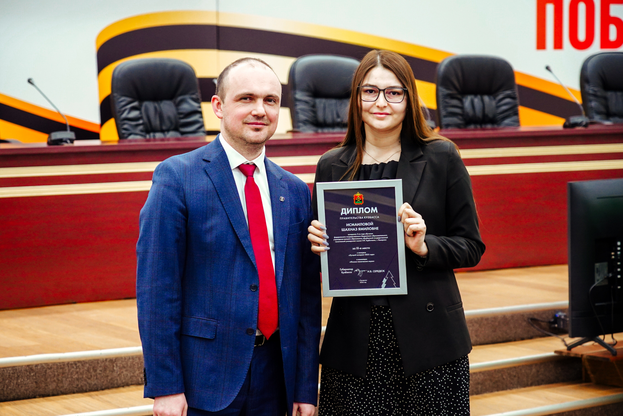 Алексей Ялышев (1 место) и Шахназ Исмаилова (3 место) - «Лучшие аспиранты» в номинации «научно-исследовательская работа в области физико-технических наук.