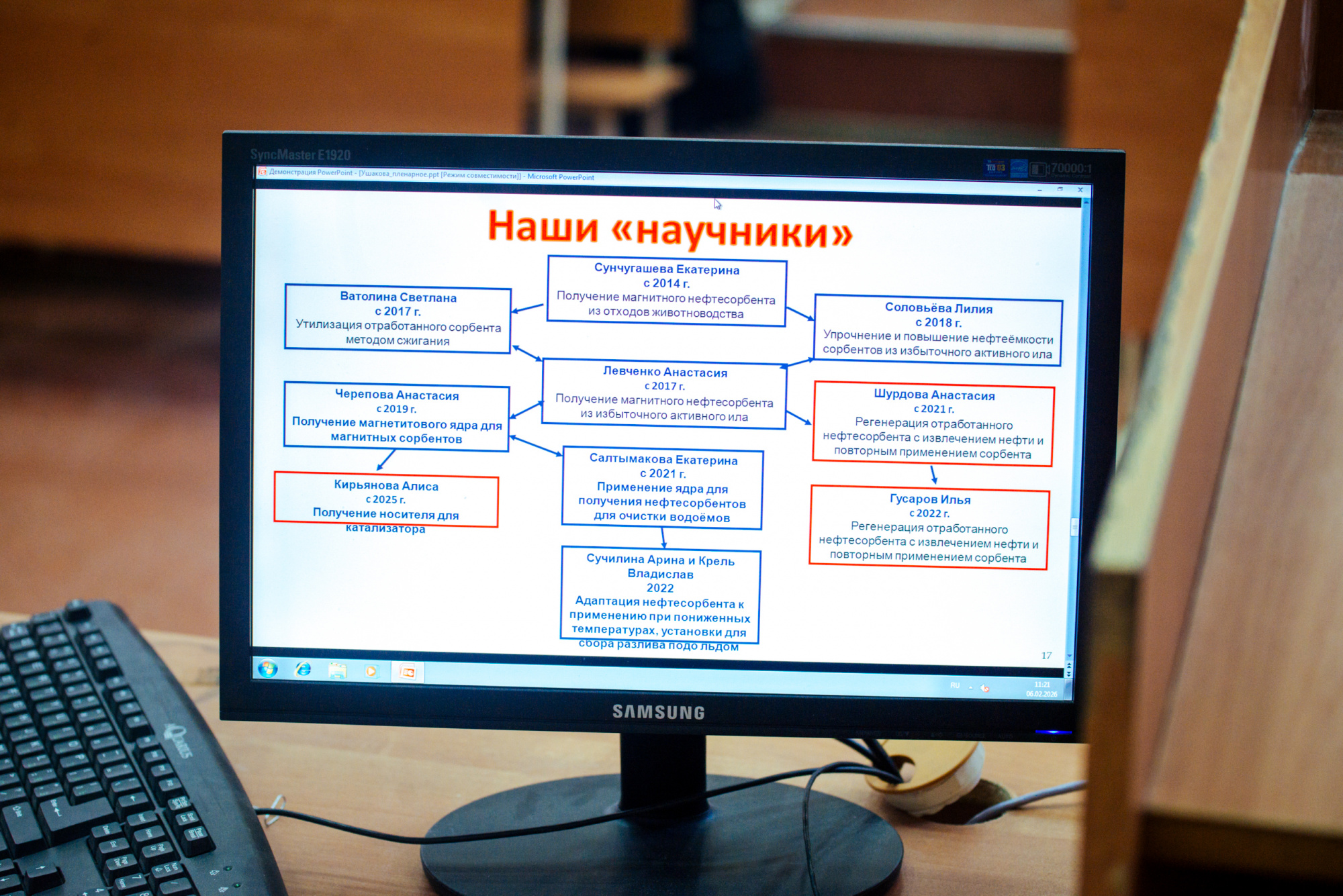 В канун Дня российской науки в КузГТУ состоялась тематическая встреча «Наука – дело семейное». С Надеждой Брезиной, заведующей отделом обслуживания научно-технической библиотеки КузГТУ студенты вспоминали о семьях, о династиях в науке. И лично ближе познакомились с одной их таких пар, которые еще со студенческих лет вместе занимаются наукой - Андреем и Еленой Ушаковыми, доцентами кафедры химической технологии твердого топлива ИХНТ.