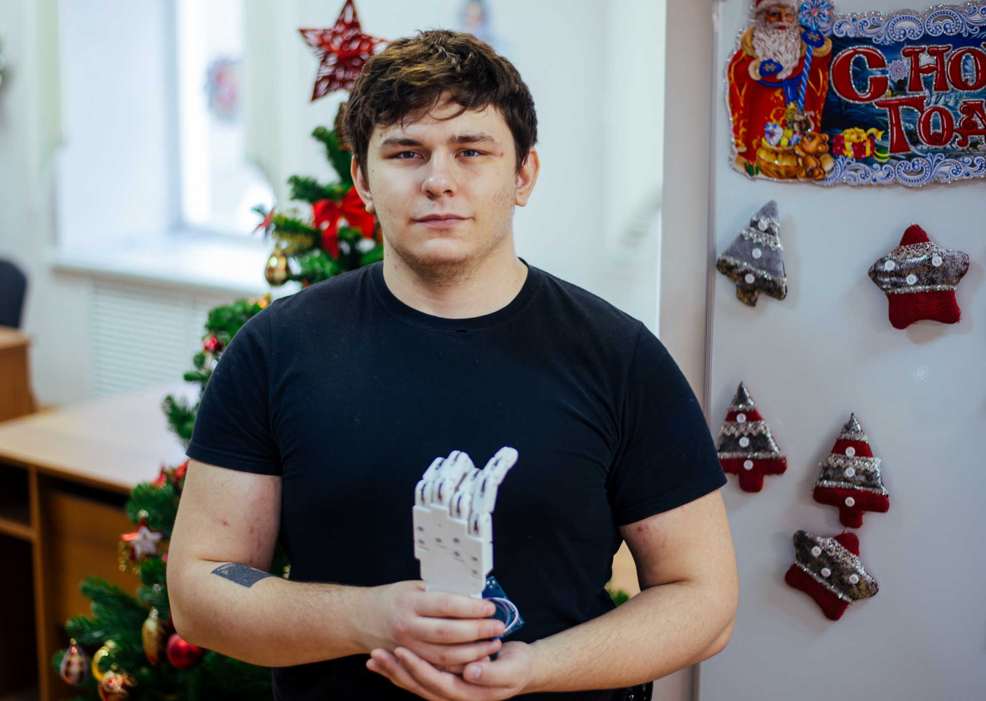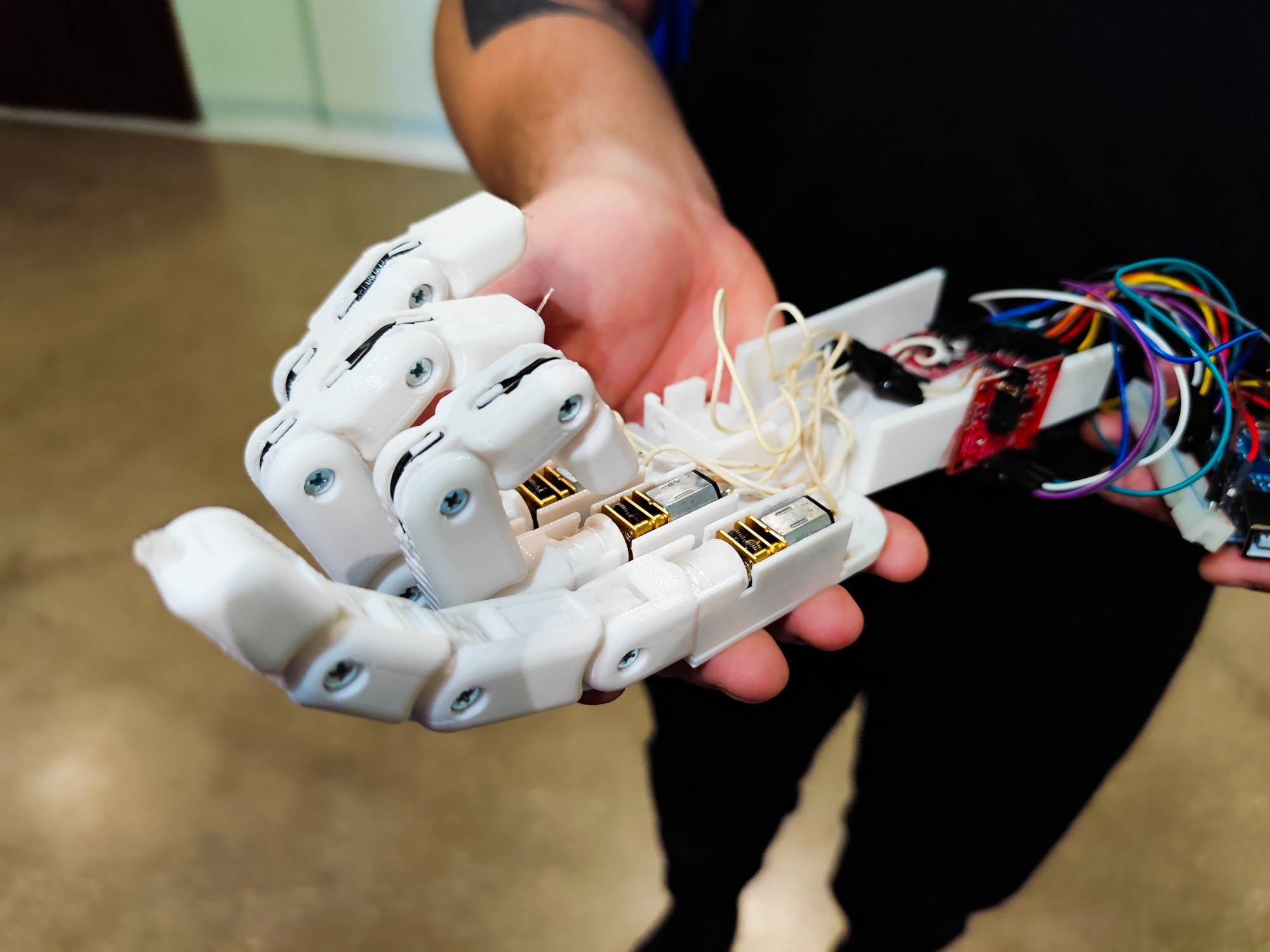 Четверокурсник представил действующий прототип бионического протеза руки. В основе протеза – электромиографические датчики и платформа Arduino. Каждый палец конструкции приводится в движение отдельным мотором, что позволяет выполнять разные типы захвата.