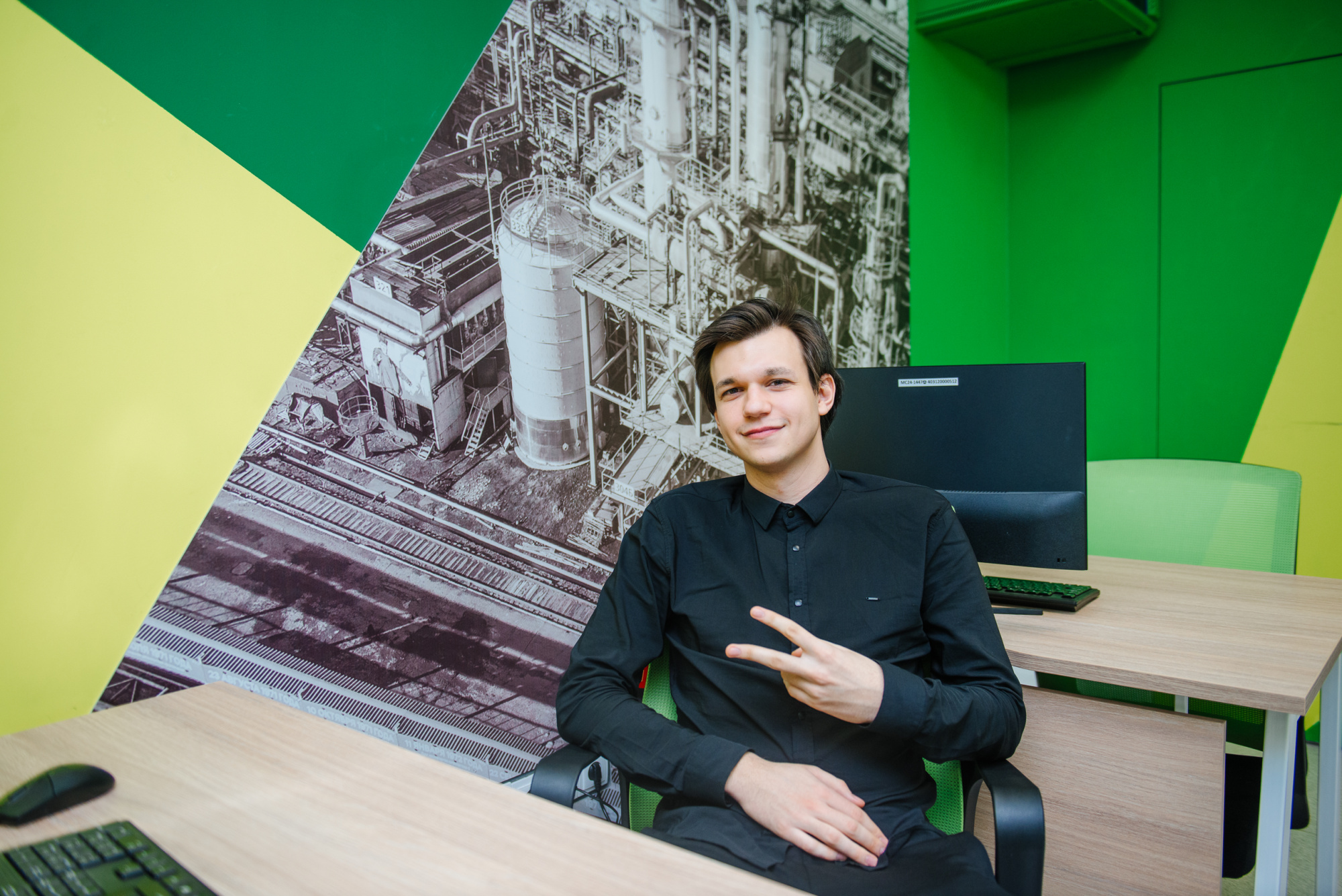 Захар Апанасенко с начала учебного года работает инженером-конструктором в АО «Кемеровский механический завод» – занимается разработкой чертежей, а также работает с документами. Захар рассказал, что он вместе с коллегами создал станок для накрутки и скрутки резьбового соединения.