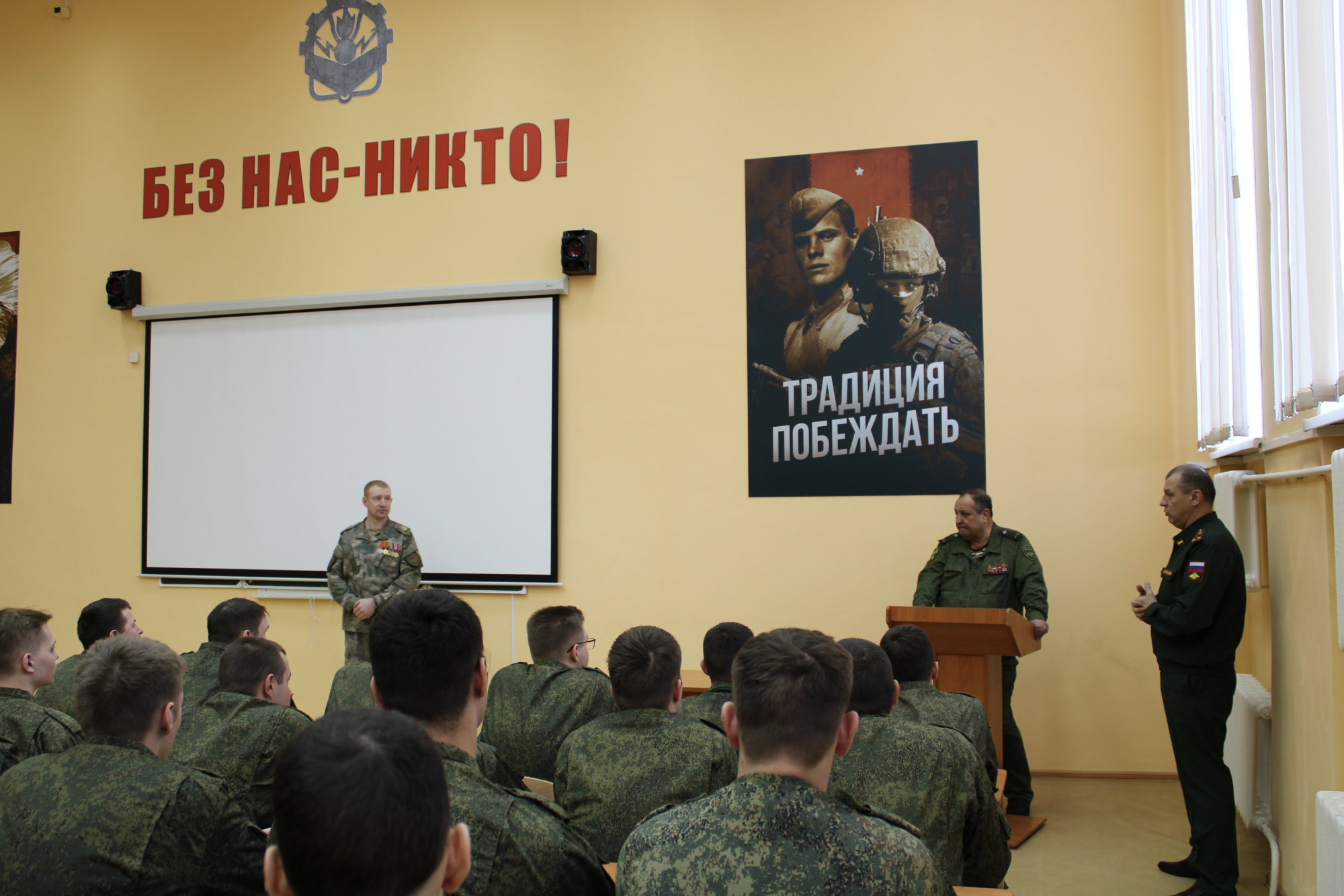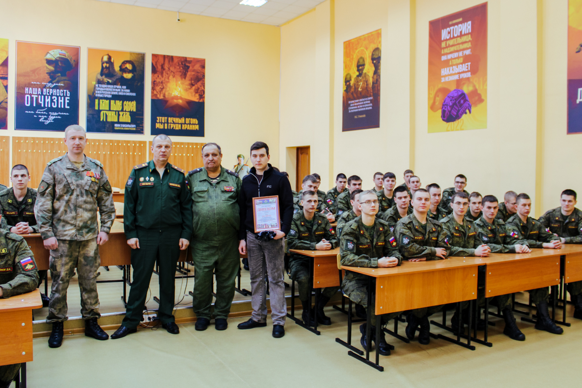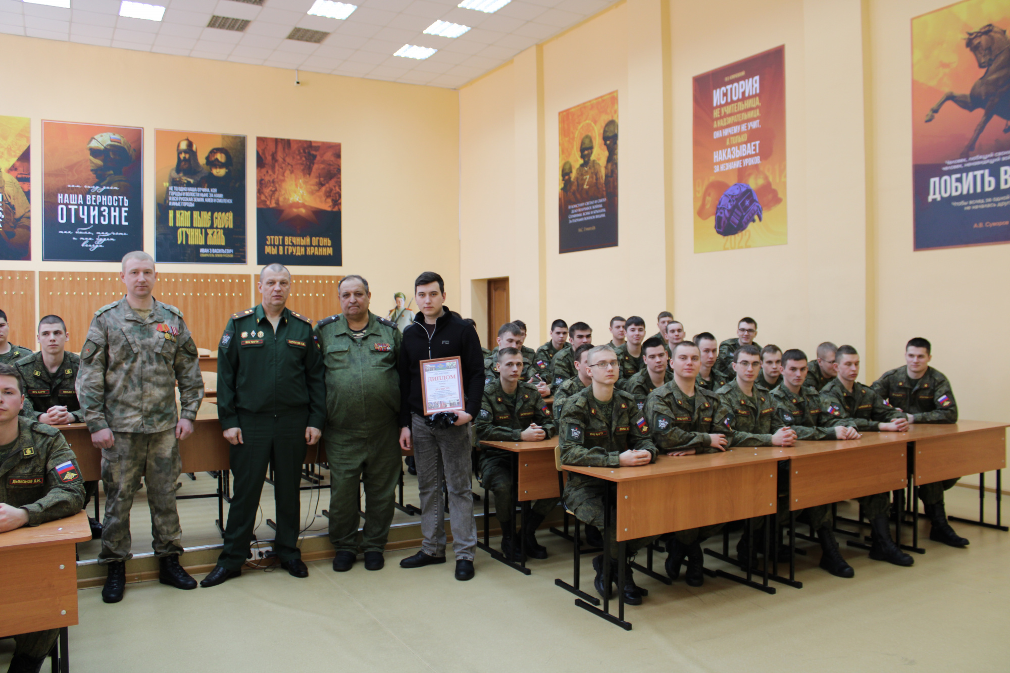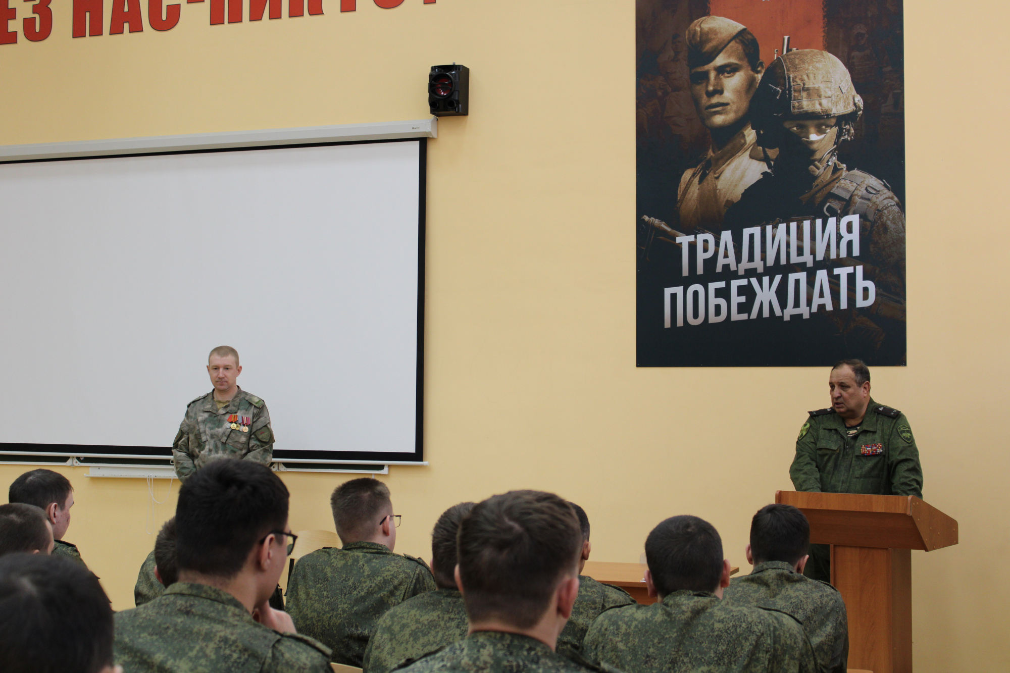Ветеран службы подполковник Вадим Веселов подчеркнул значимость профессиональной подготовки и дисциплины, отметив, что основа успешного выполнения задач закладывается ещё в период обучения. Он напомнил студентам о преемственности поколений и ответственности, которую несёт каждый военнослужащий.