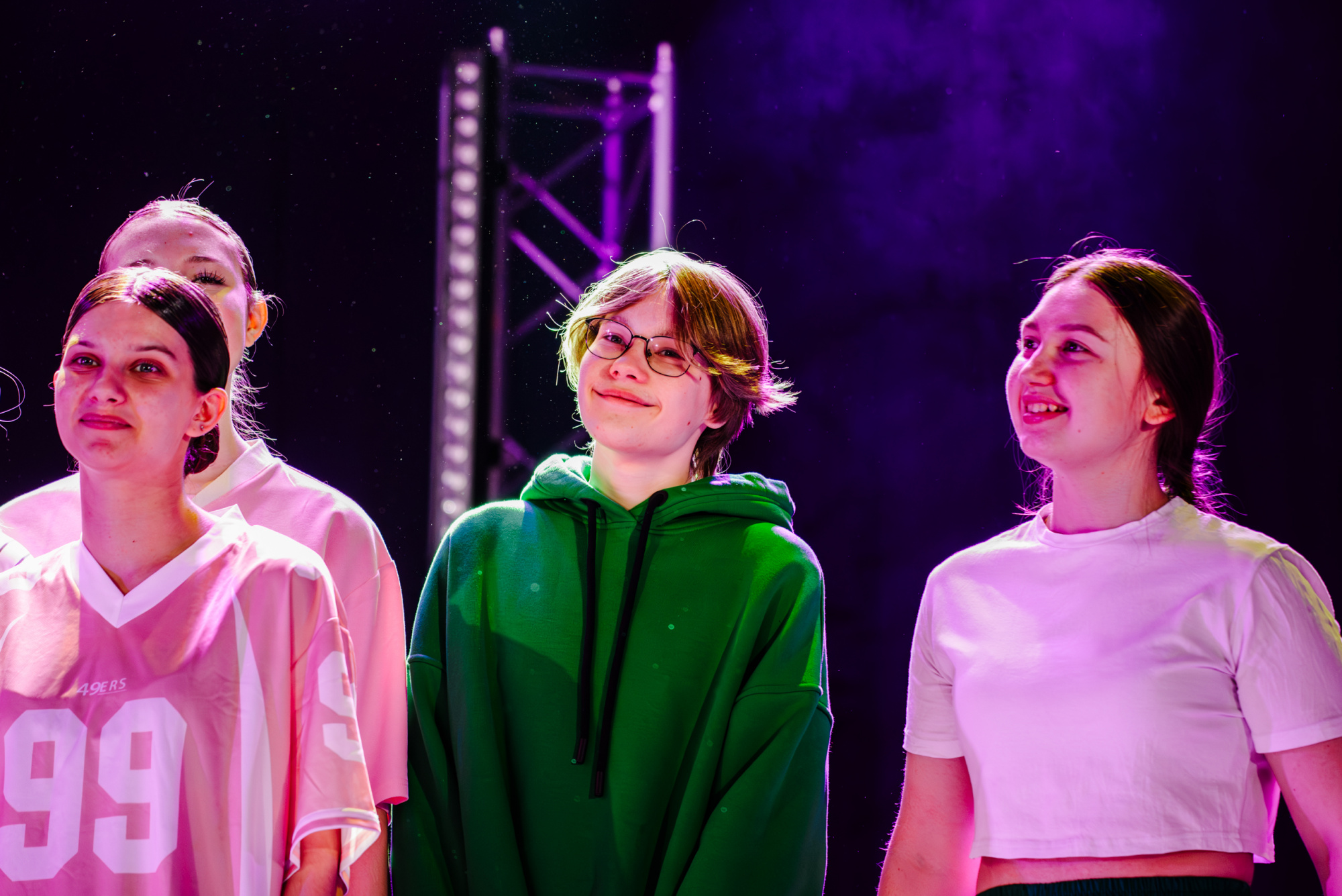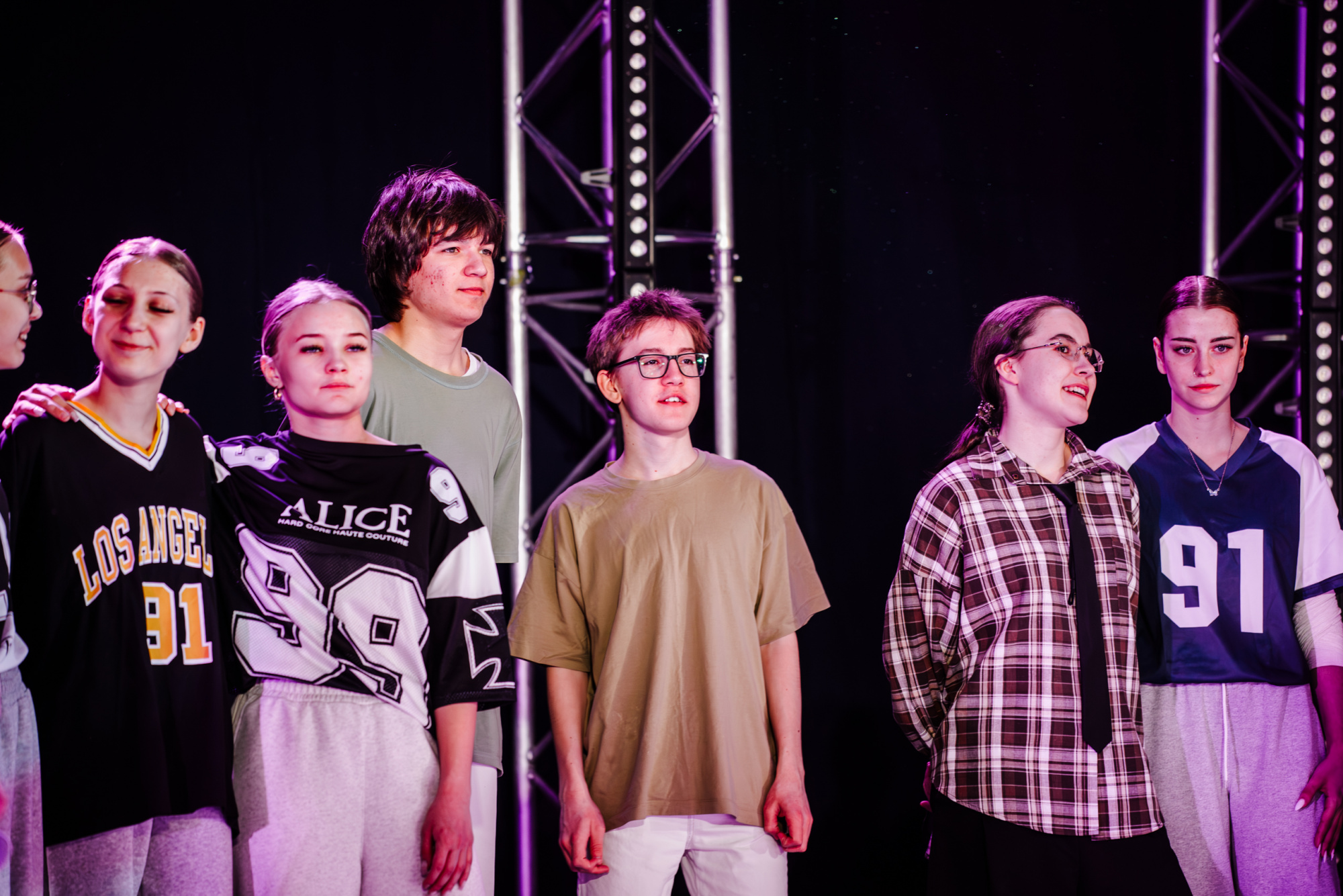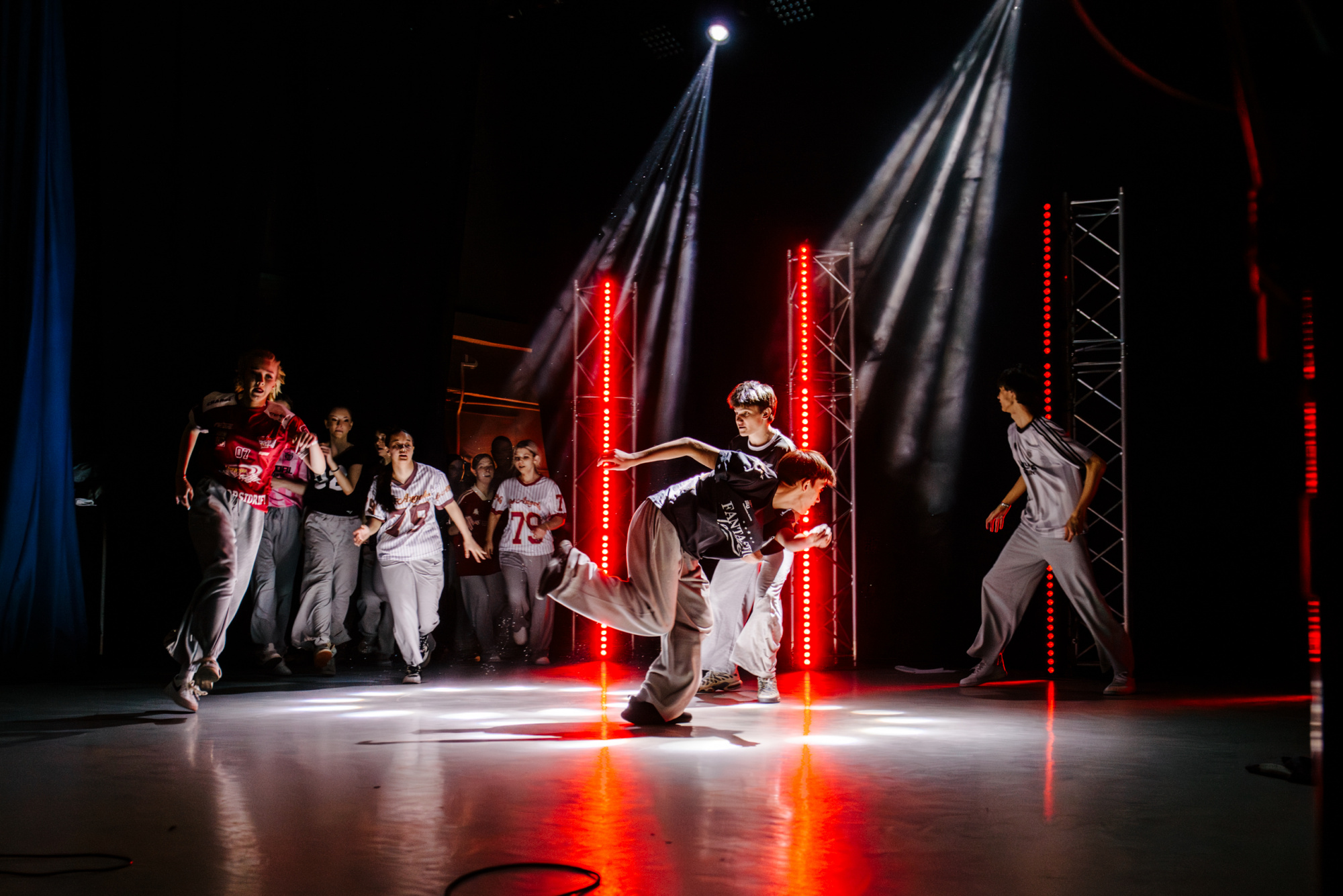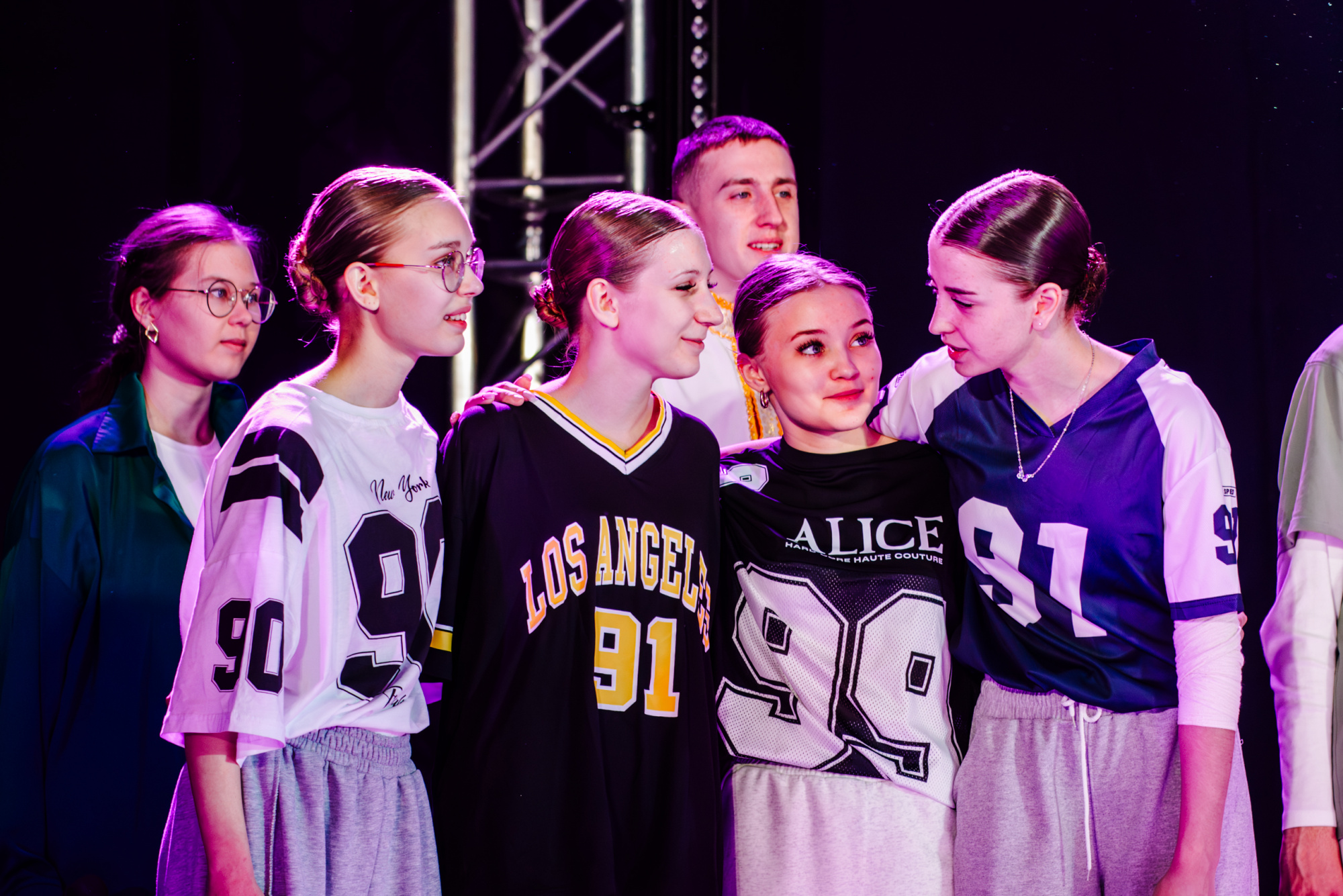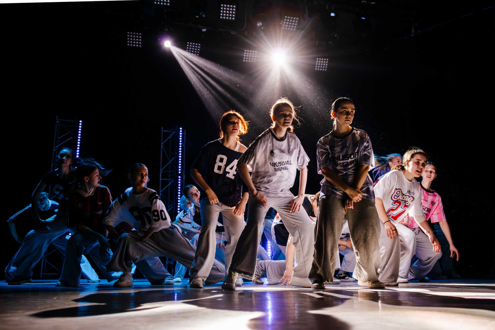 В ходе выступления эмоции словно выстраивались вдоль воображаемой оси: от точки отсчета – счастье – они нарастали все выше и выше, а потом резко падали вниз. Артисты прокатили зрителей на «эмоциональных качелях»: задорная «началка», энергичный хип‑хоп, заряжающий позитивом, затем – трогательная песня и душевный современный танец, передавшие глубину чувств.