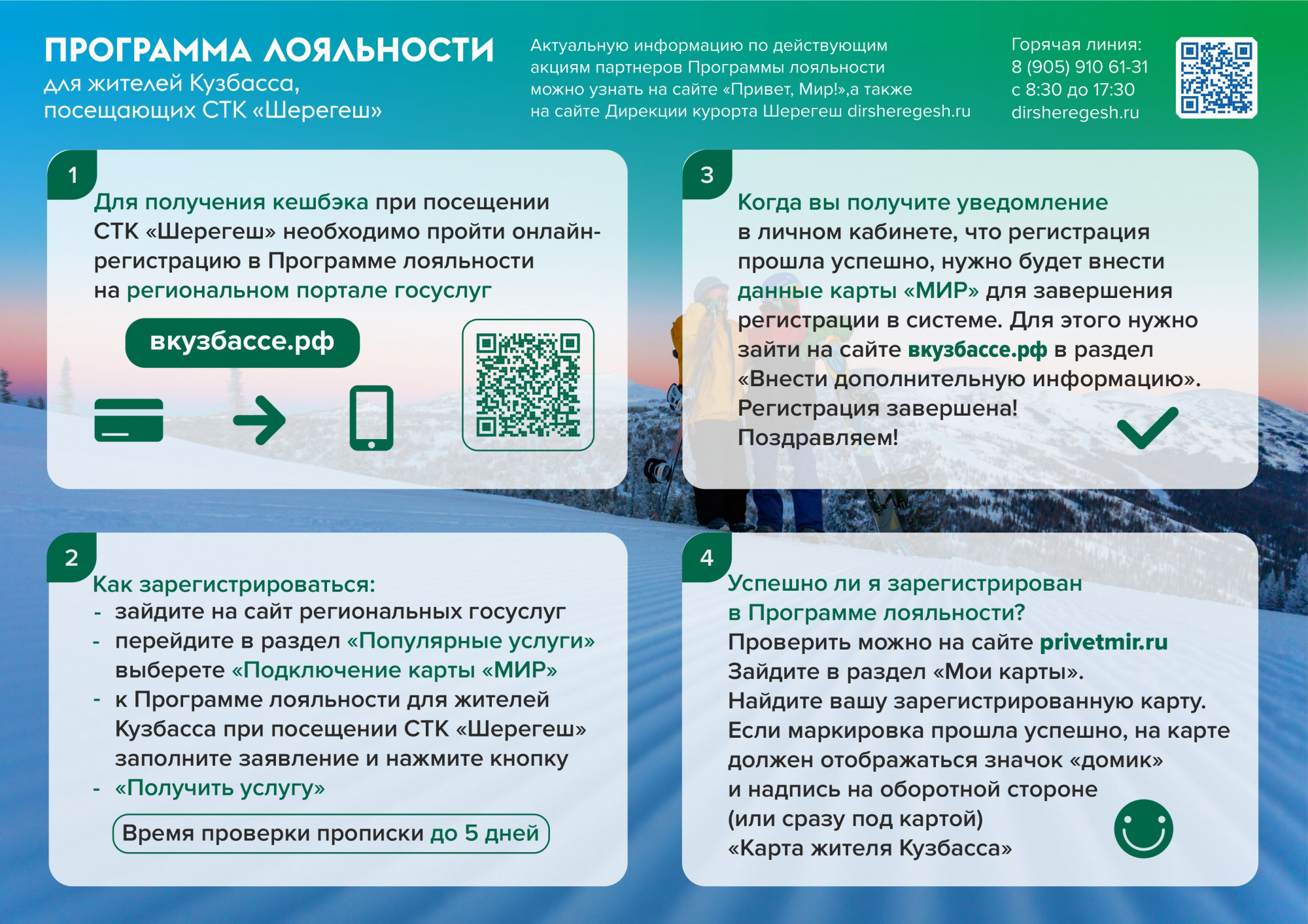 📍 Подробная информация о партнерах и условиях программы размещена на сайте дирекции курорта Шерегеш.