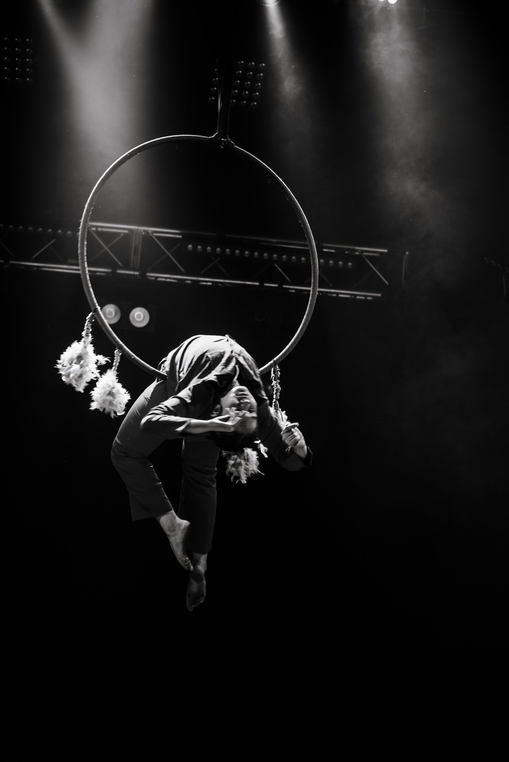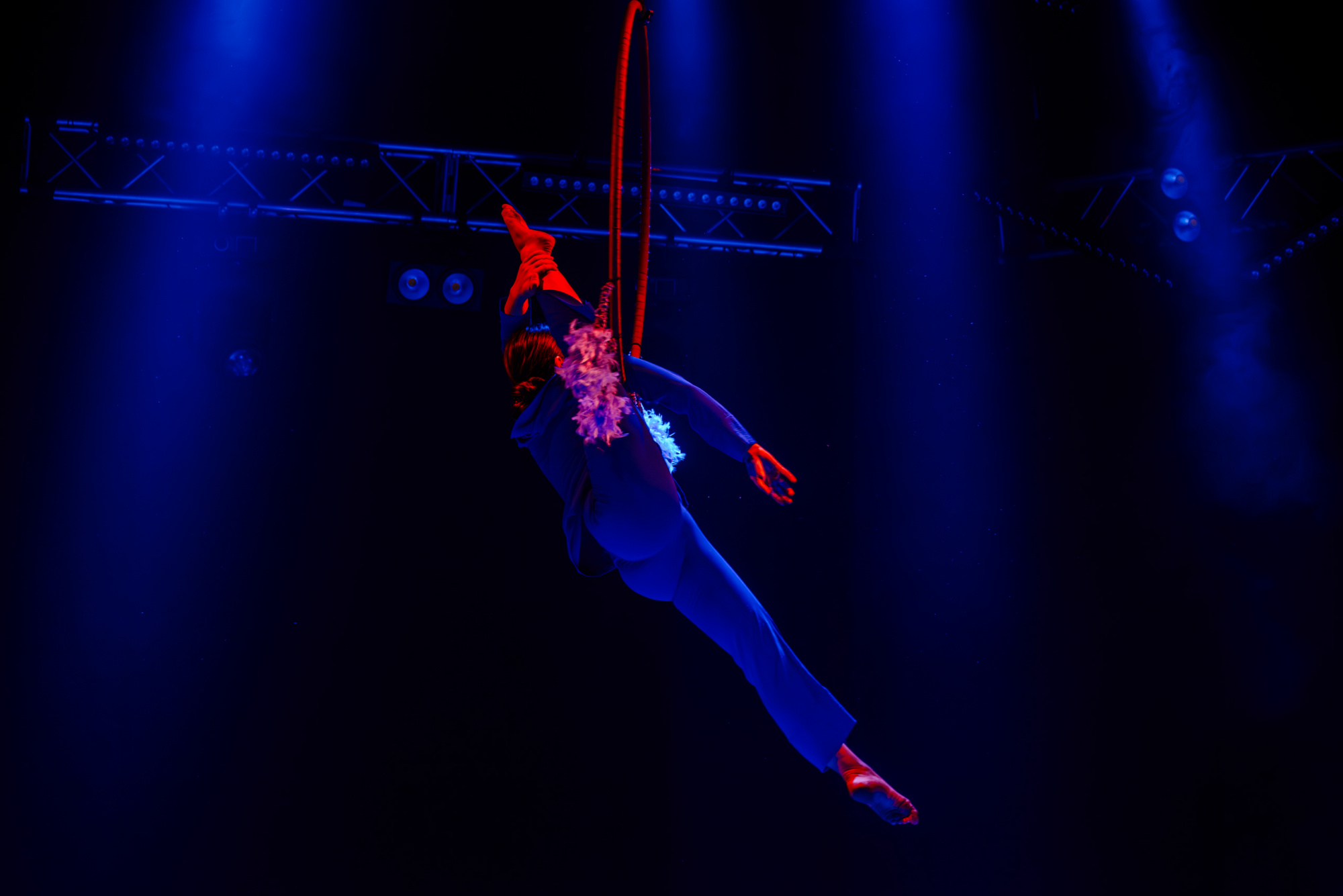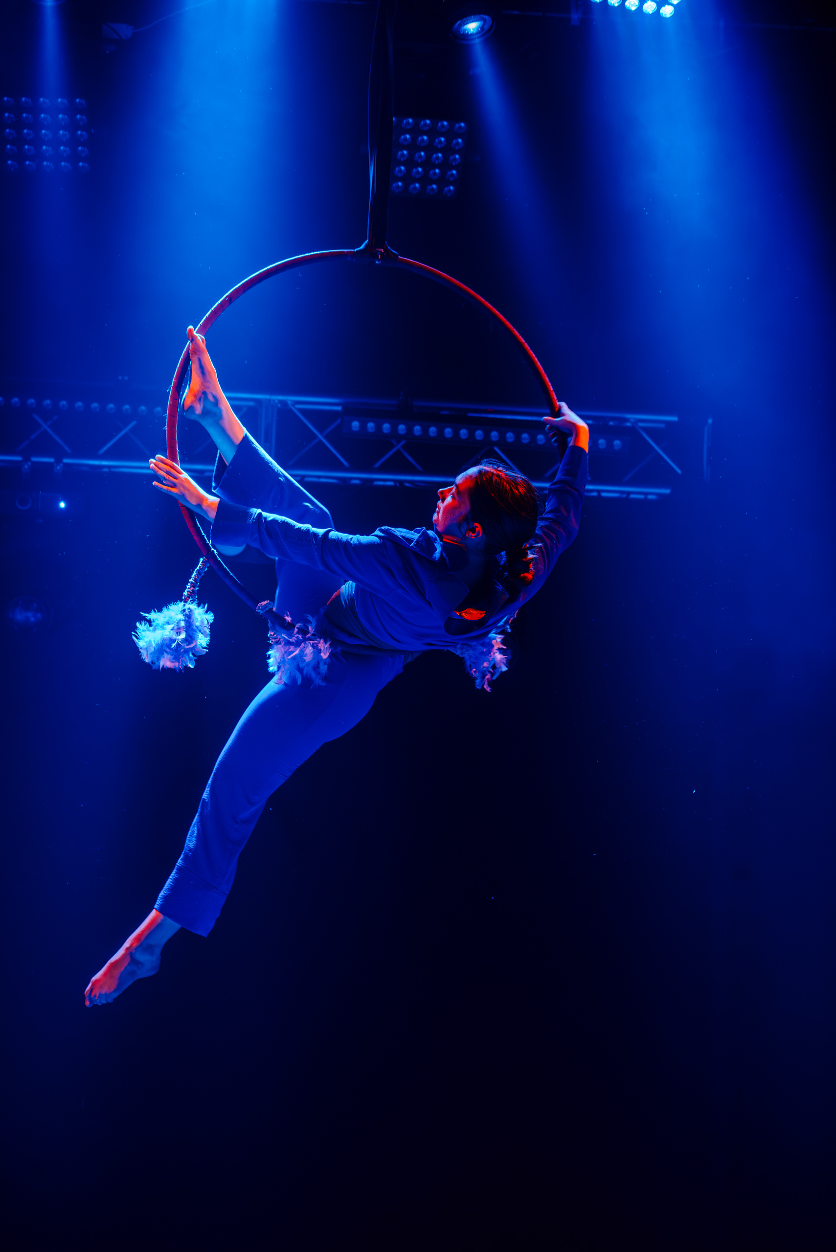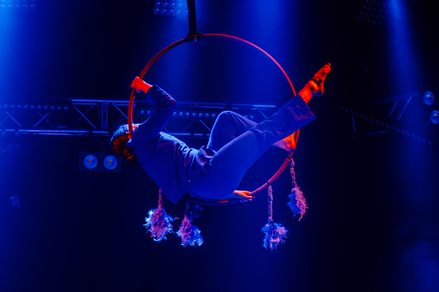 Апофеозом вечера стало выступление гимнастки Дарьи Юрко. Она взмыла в воздух и закружилась на обруче под потолком, выполняя невероятные трюки. В тот момент время будто остановилось. И только когда гимнастка плавно опустилась вниз – зритель смог выдохнуть.
