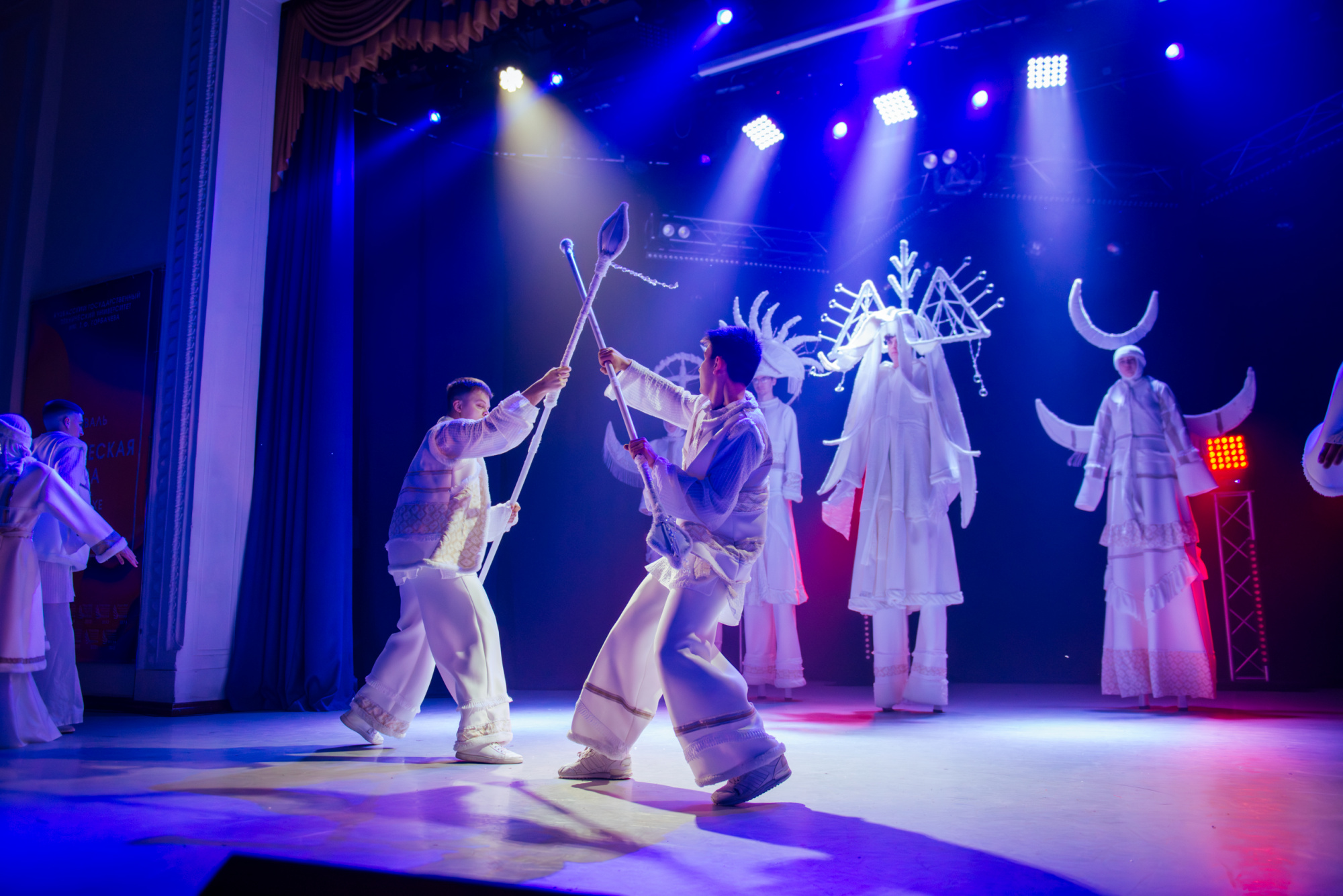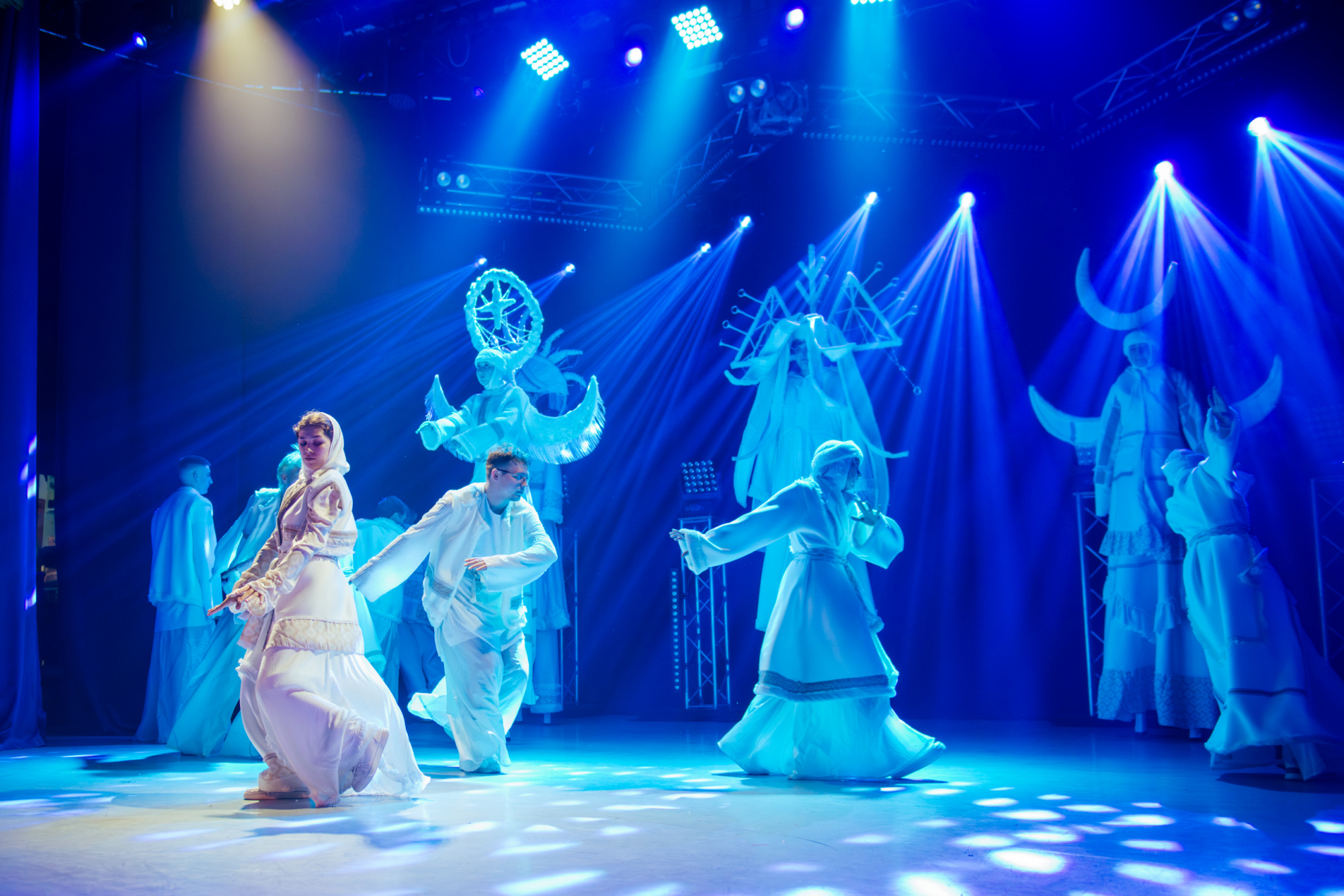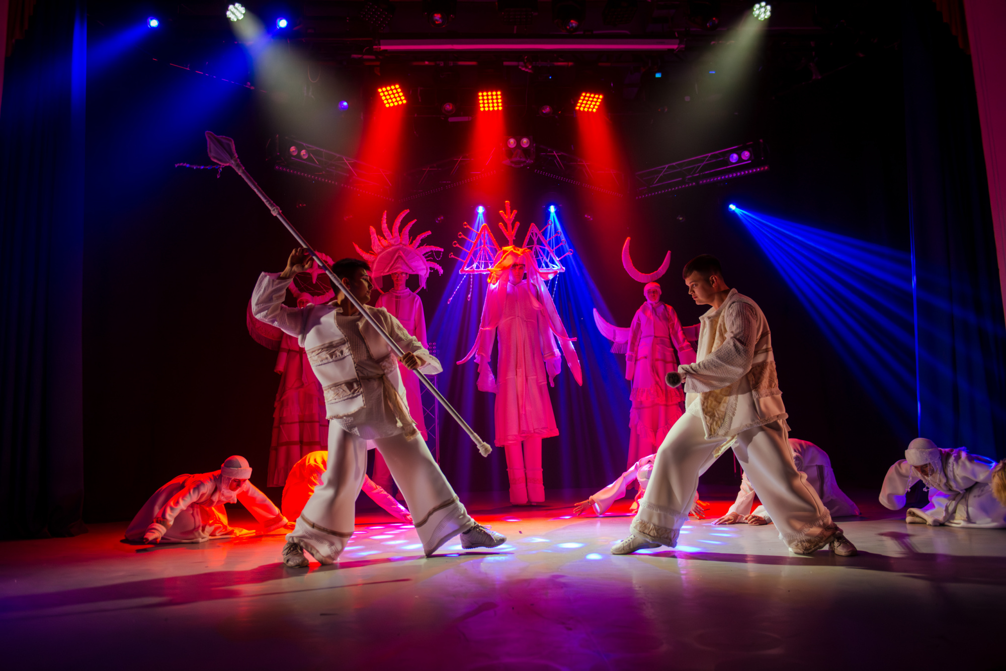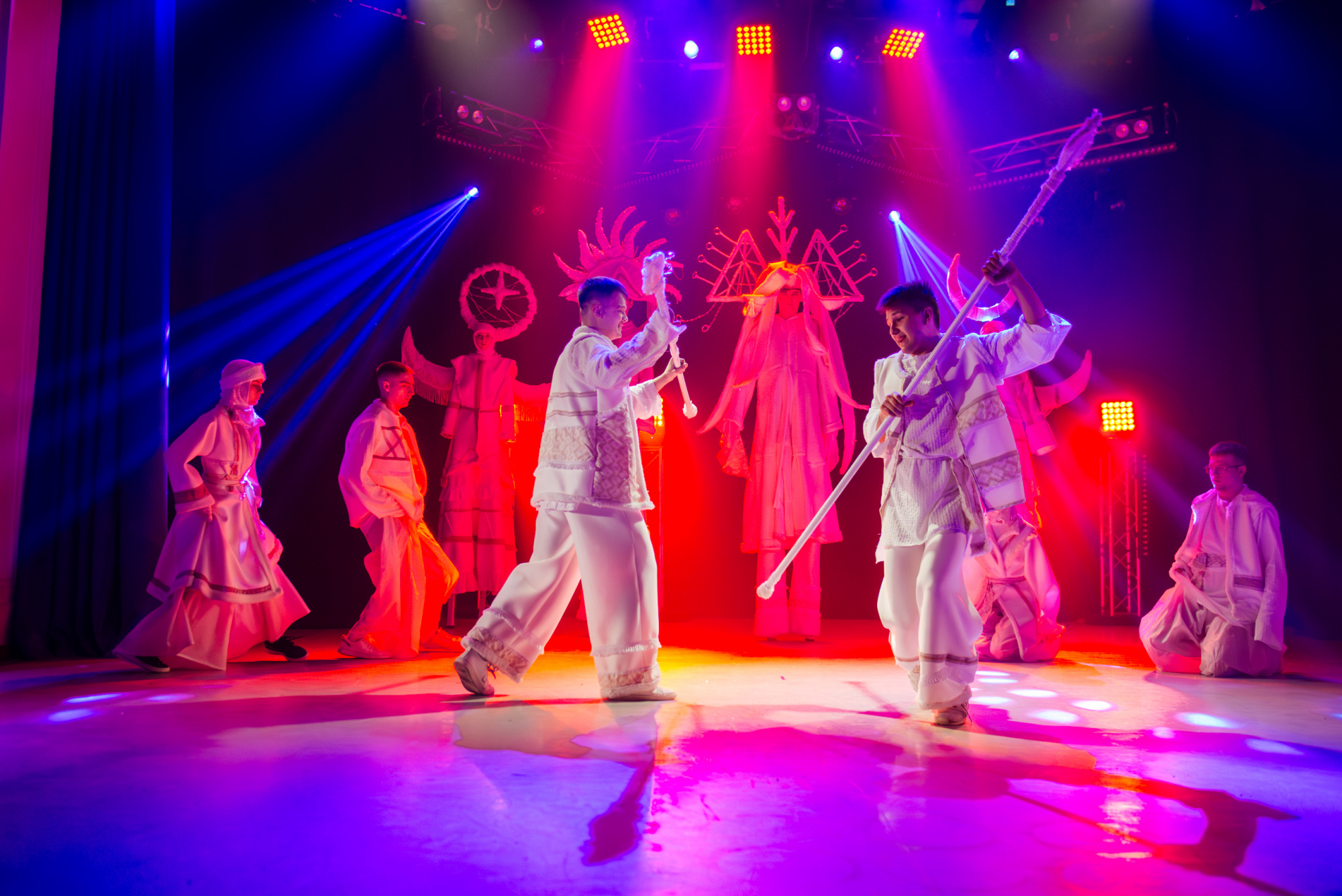Особенно ярко это проявилось в моменте, когда после городского сюжета концерт вдруг резко изменил настроение и вывел на сцену шорскую легенду. После шуток, музыкальных отсылок и бытовой иронии сцена неожиданно стала мифологическим пространством.