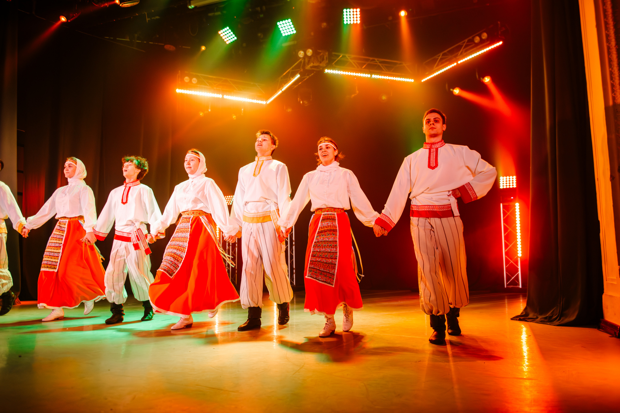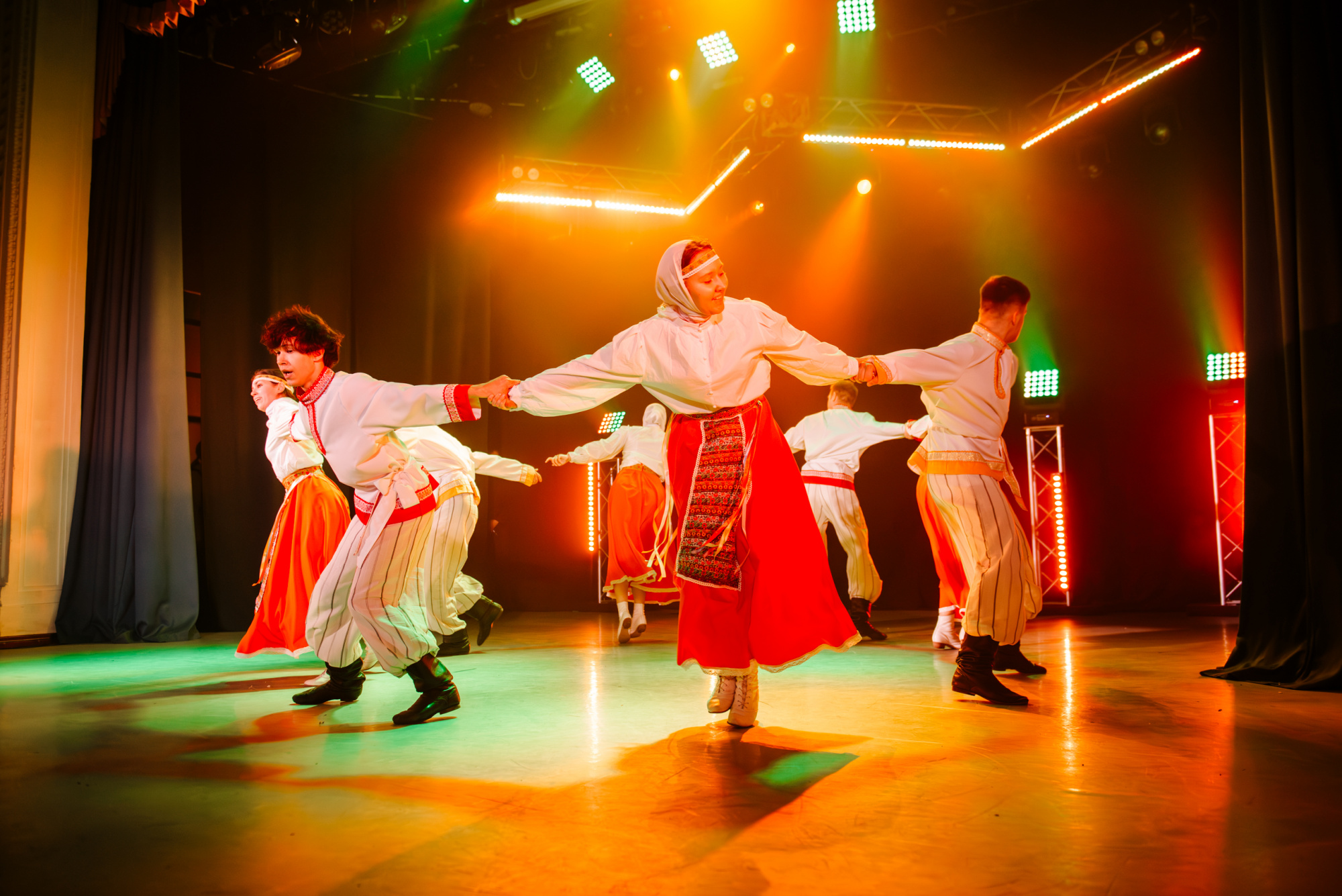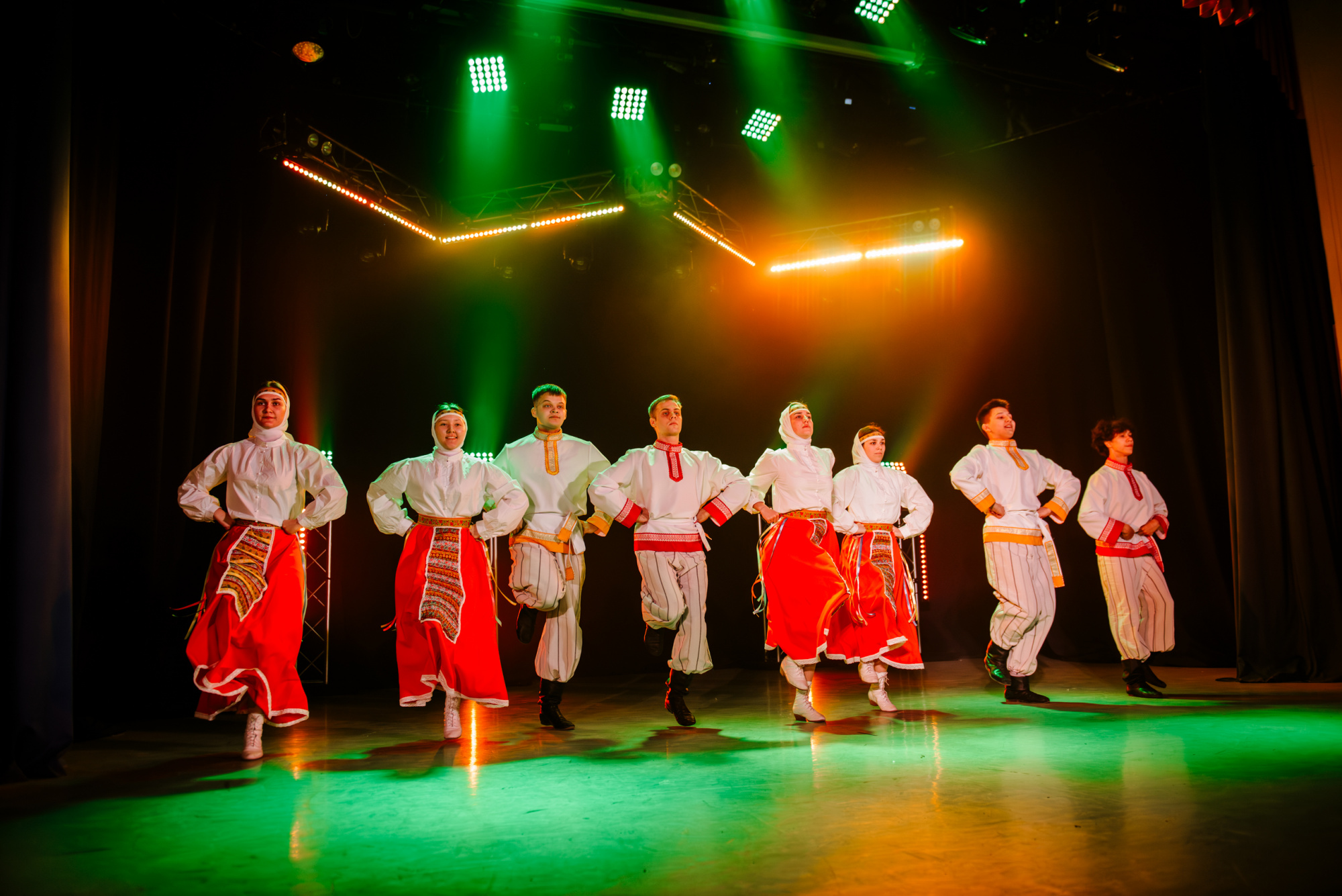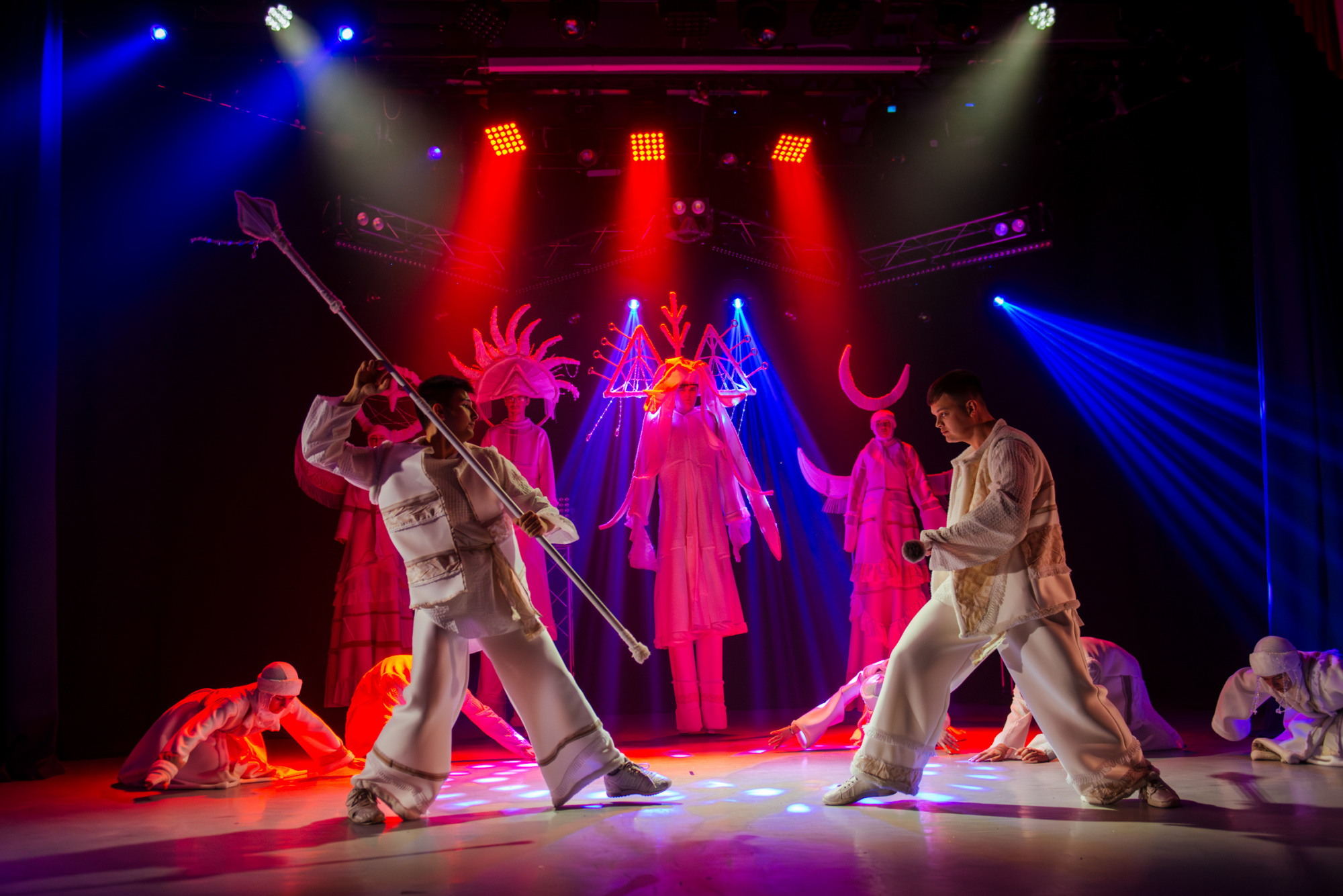 Особенно ярко это проявилось в моменте, когда после городского сюжета концерт вдруг резко изменил настроение и вывел на сцену шорскую легенду. После шуток, музыкальных отсылок и бытовой иронии сцена неожиданно стала мифологическим пространством.