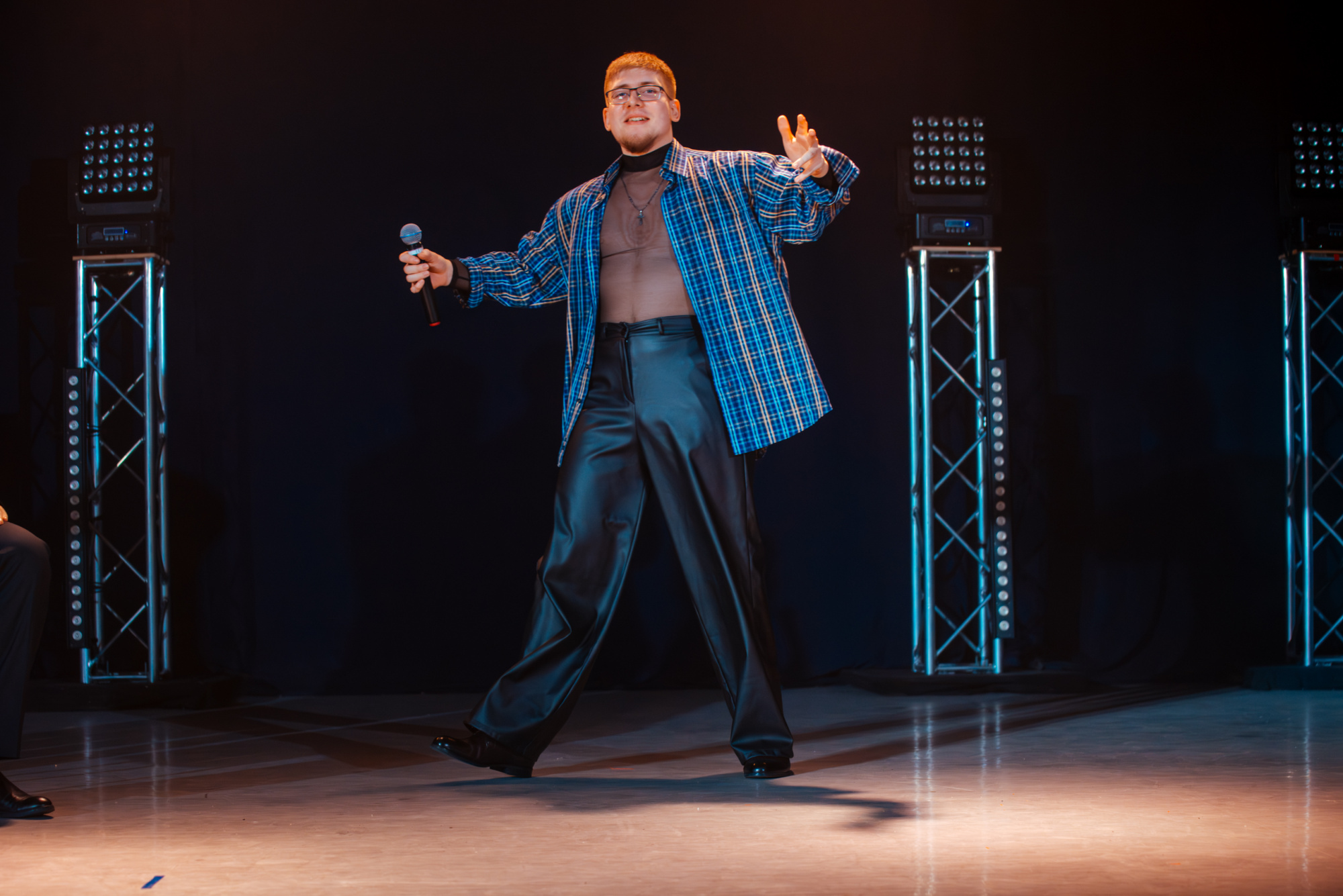 Вообще, юмор в «Гласности» стал одной из главных сильных сторон. Причём он строился не на прямых шутках, а на постоянной игре со знакомыми культурными кодами. Многие реплики срабатывали почти мгновенно, потому что было легко узнать ситуацию, интонацию, музыкальный образ. При этом концерт всё время оставался живым: было видно, что ребята сами получают удовольствие от концерта.