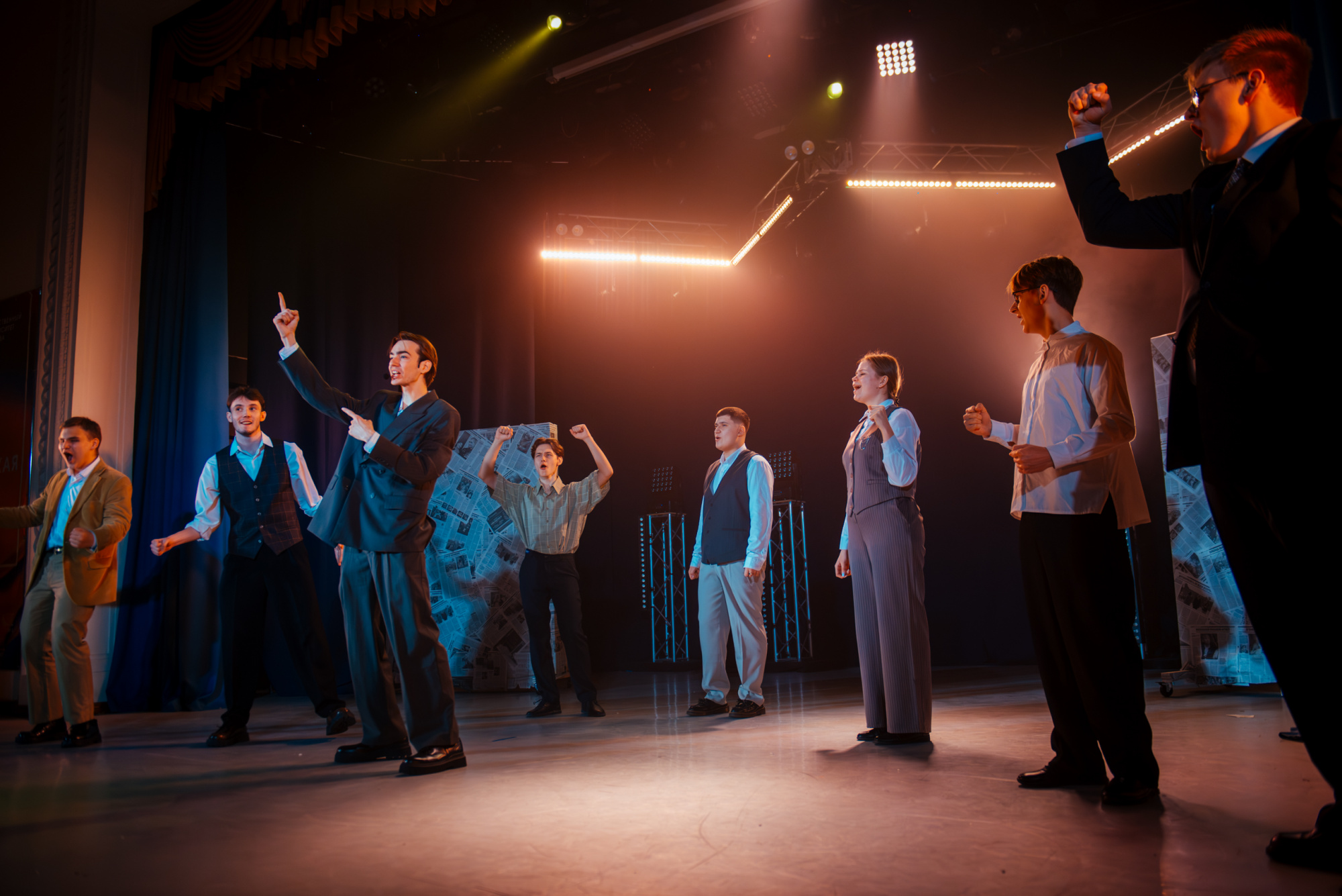 Концерт института экономики и управления КузГТУ «Гласность» оказался одним из самых неожиданных выступлений этой «Студенческой весны». После нескольких концертов, где институты чаще говорили со зрителем языком личных переживаний, философских смыслов и, можно сказать, исповедальной серьёзности, здесь на сцене вдруг появилась совсем другая история — лёгкая, ироничная, узнаваемая и при этом цельная.