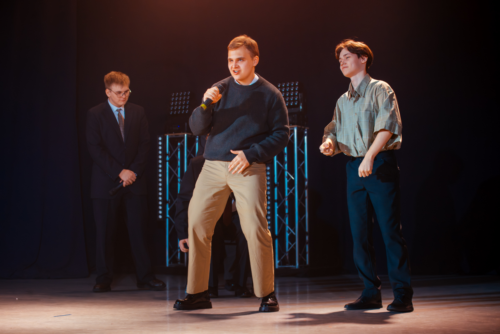 Во многом именно благодаря этому концерт всё время удерживал внимание. Казалось бы, зритель уже понимает направление шутки, угадывает знакомый образ, но сцена почти сразу предлагает новый поворот. Из-за этого не возникало ощущения предсказуемости.