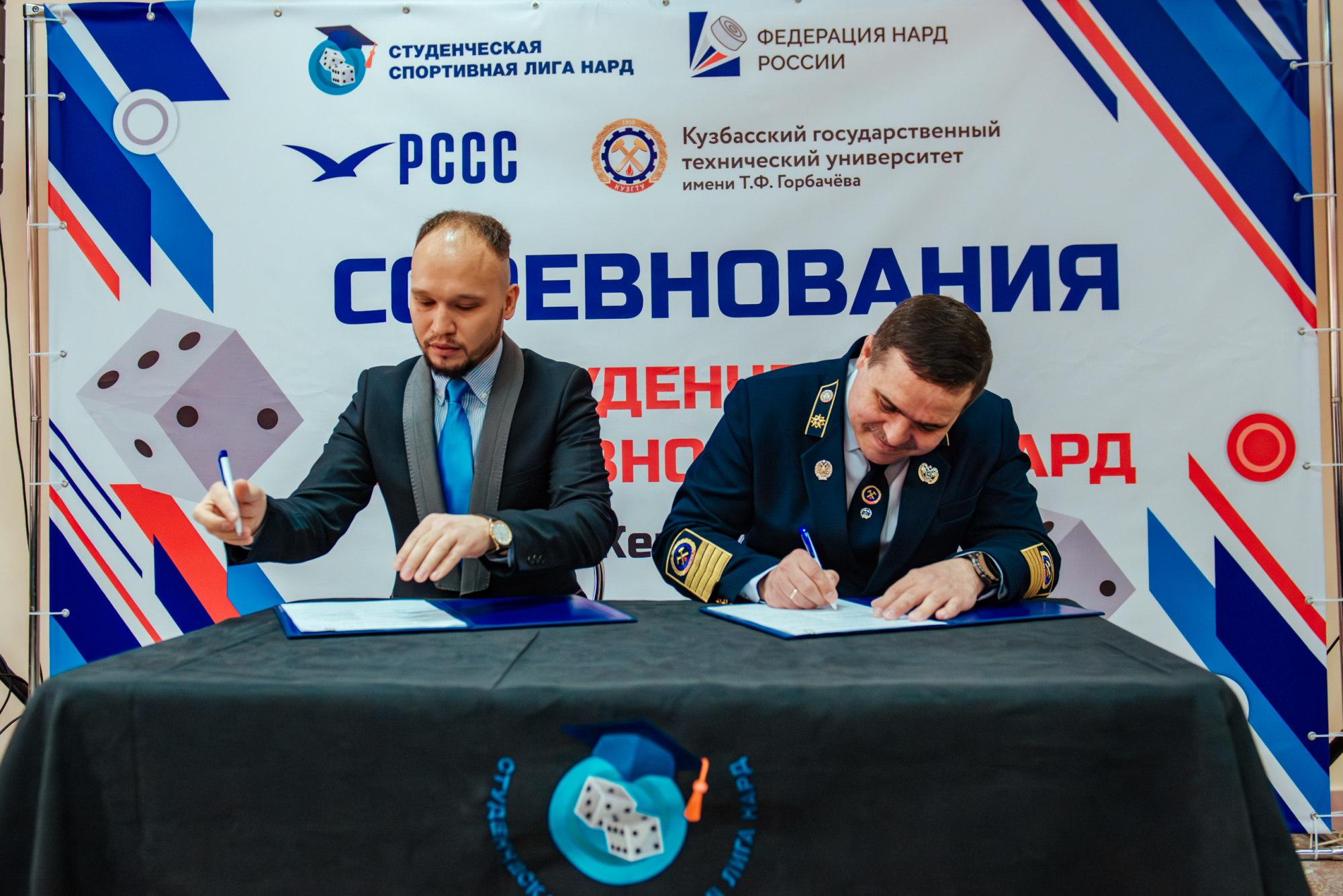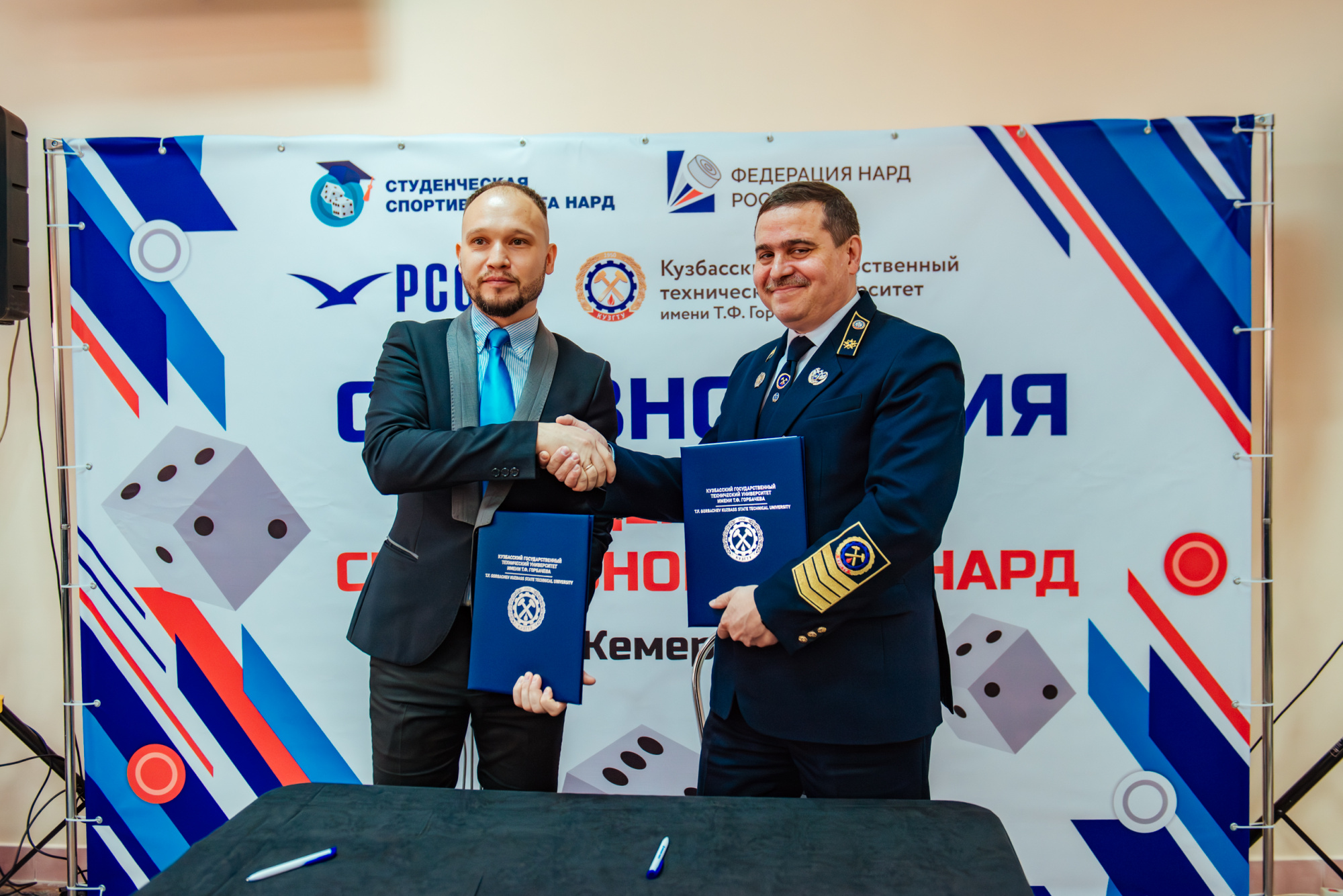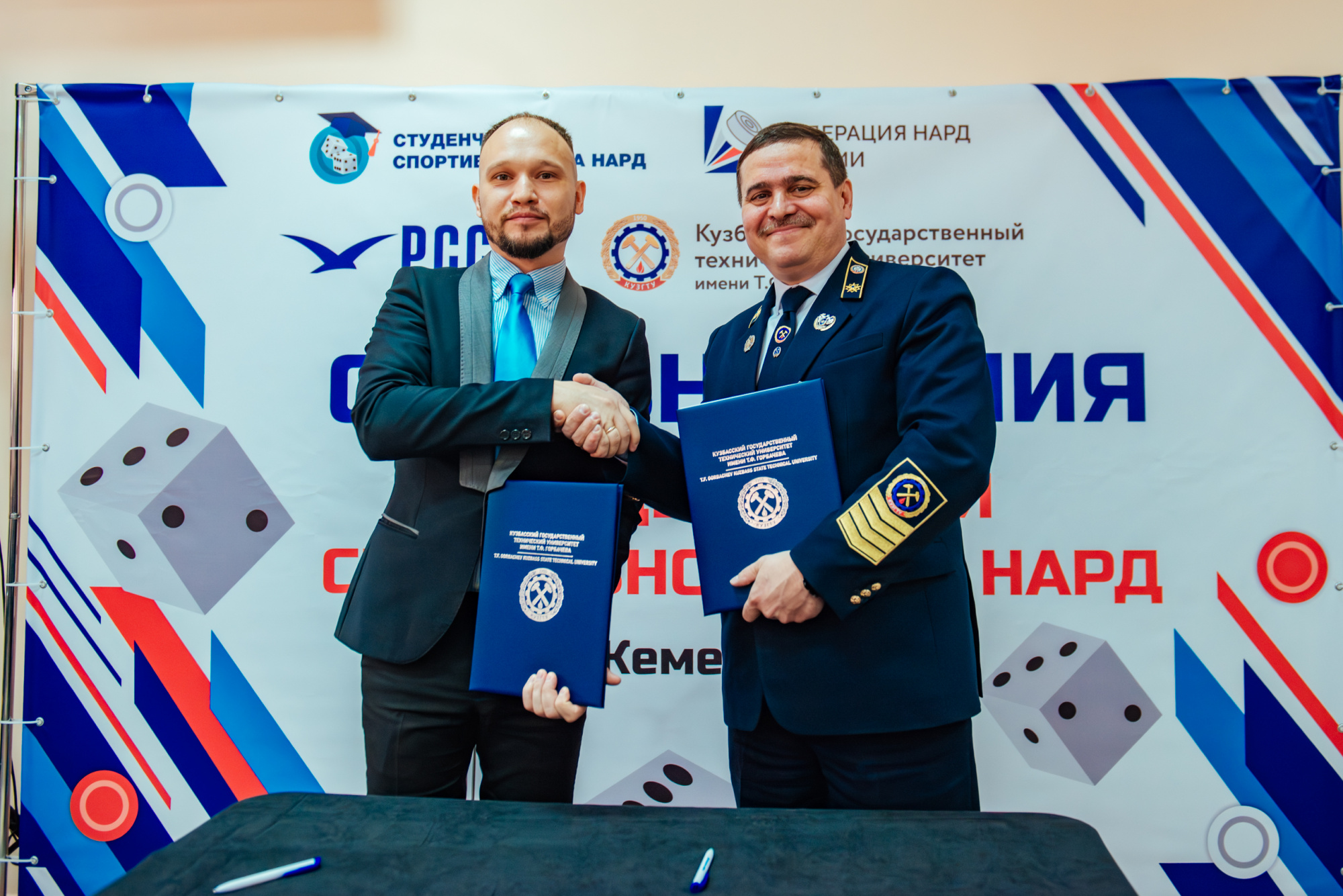 В рамках турнира было подписано соглашение о сотрудничестве между КузГТУ в лице ректора Алексея Яковлева и Ассоциацией «Студенческая спортивная лига нард России» в лице исполнительного директора Михаила Петрова: