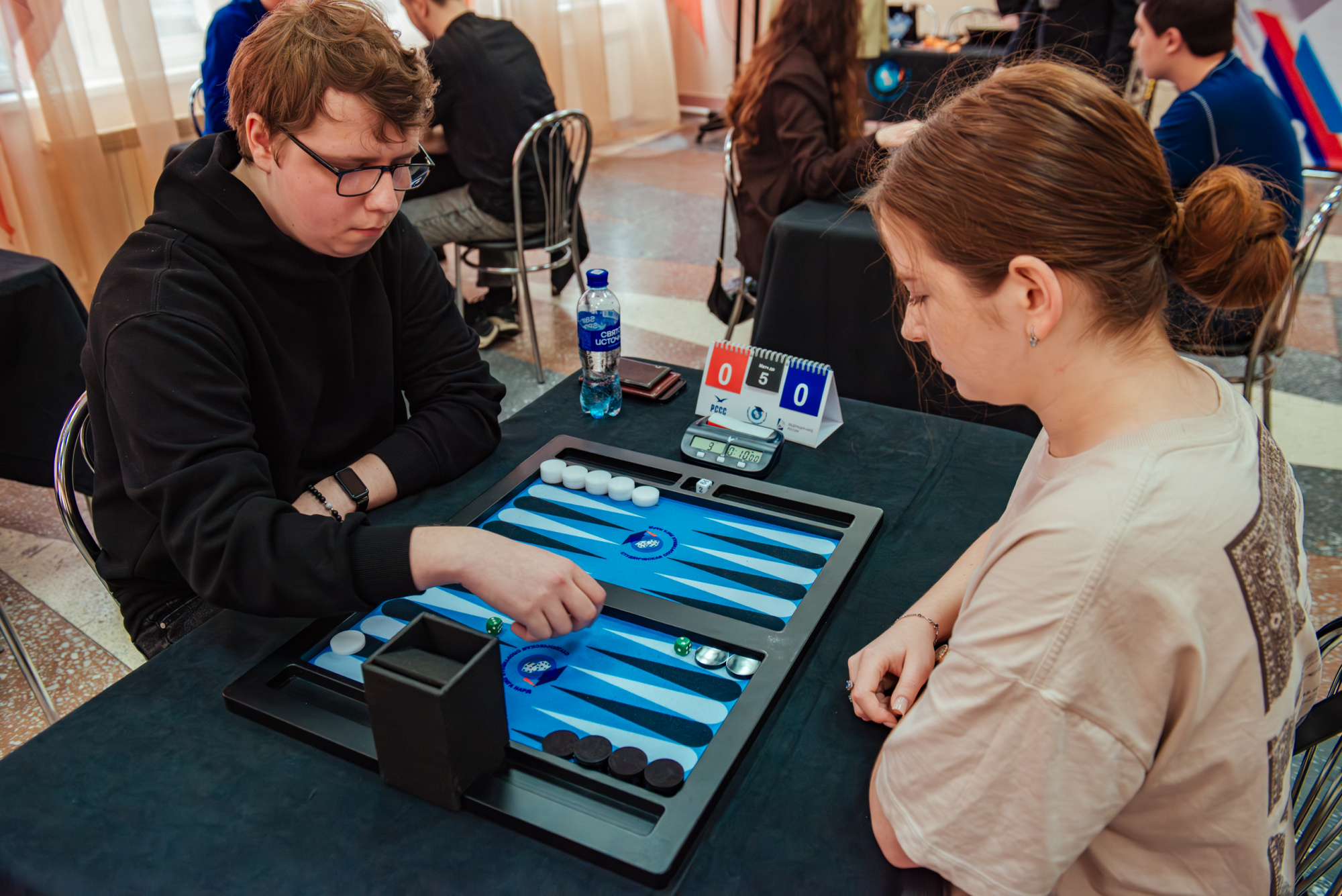 Соревнования продолжатся завтра. Всех желающих приглашаем посетить зрелищные интеллектуальные поединки в главной столовой университета. Вход свободный.