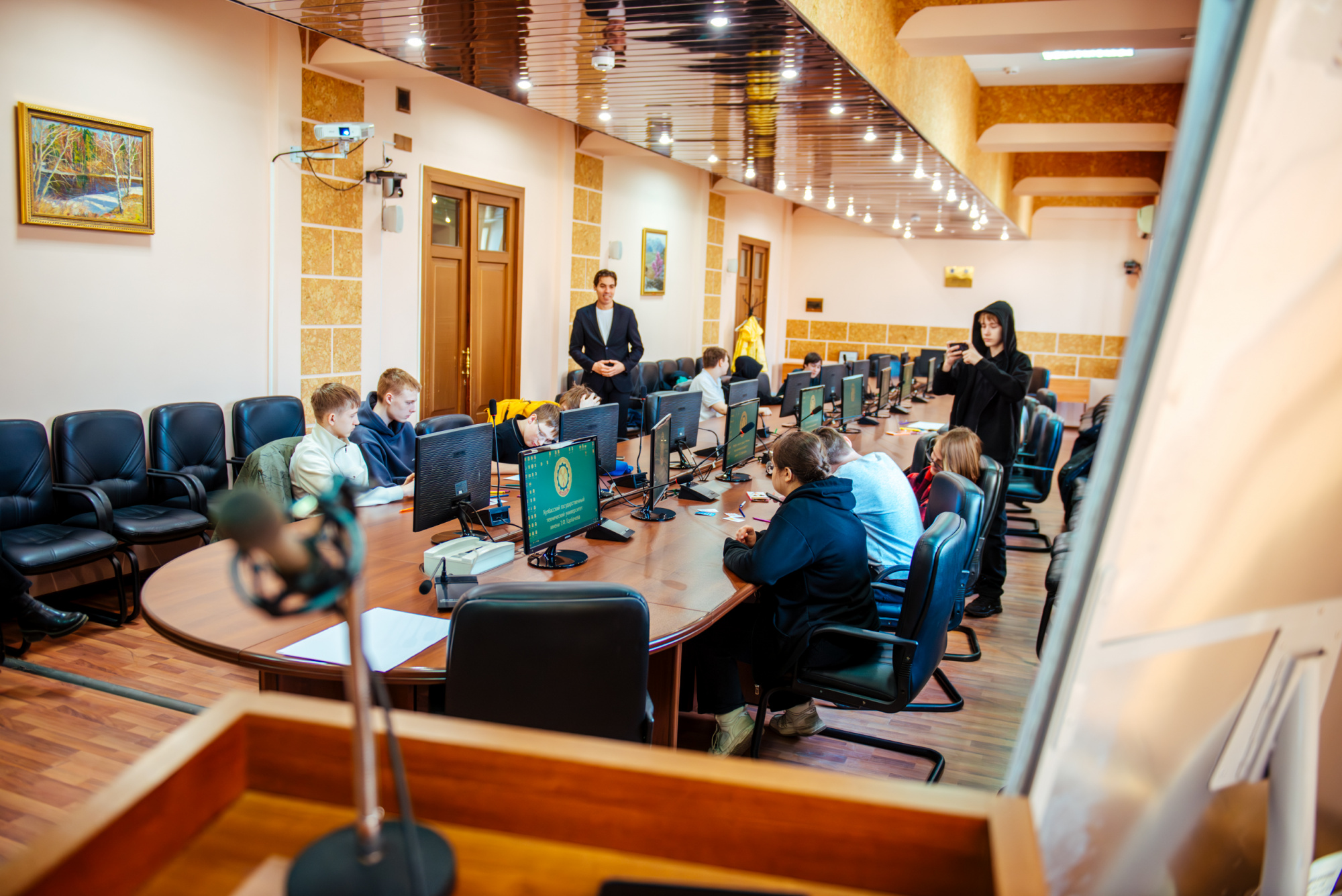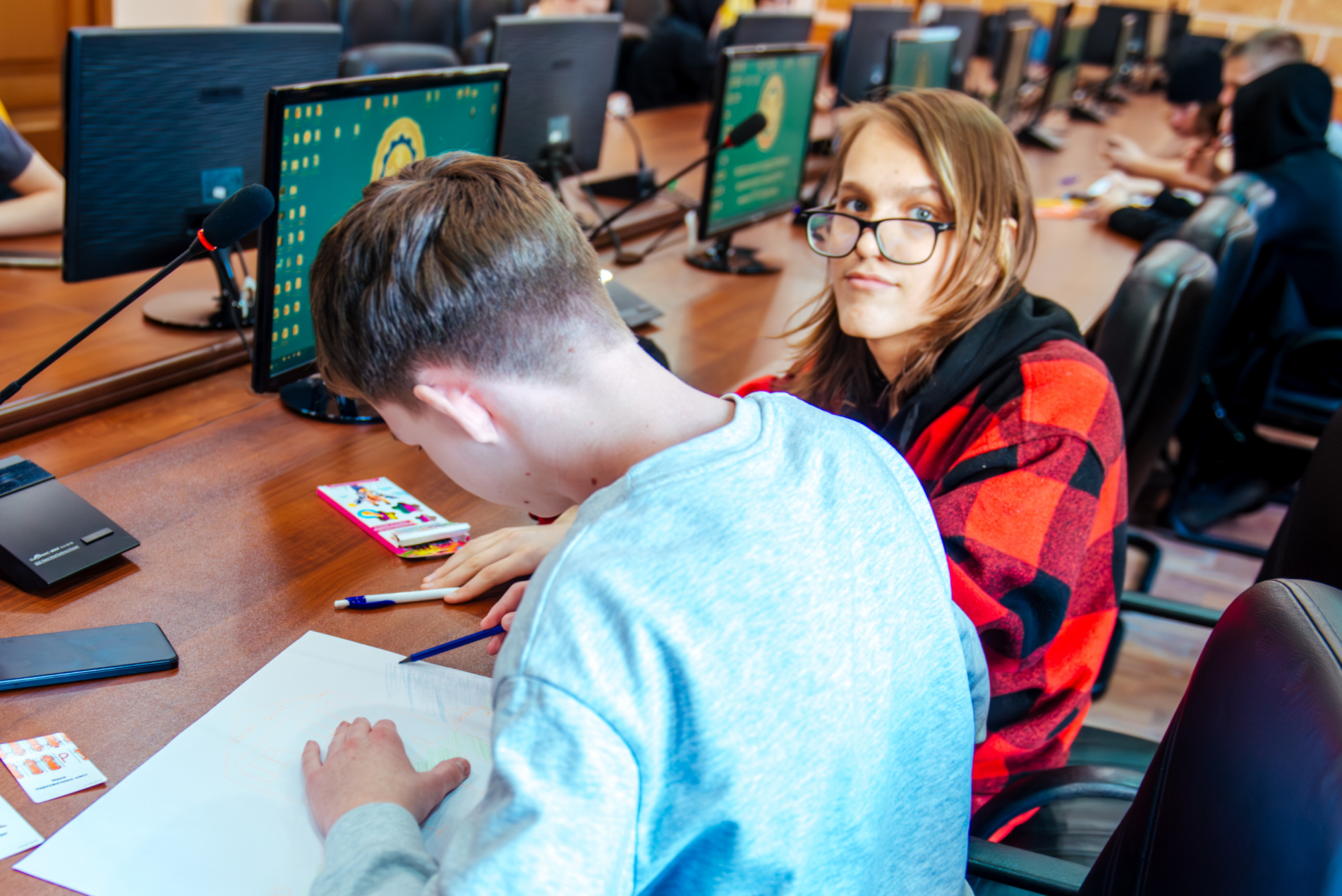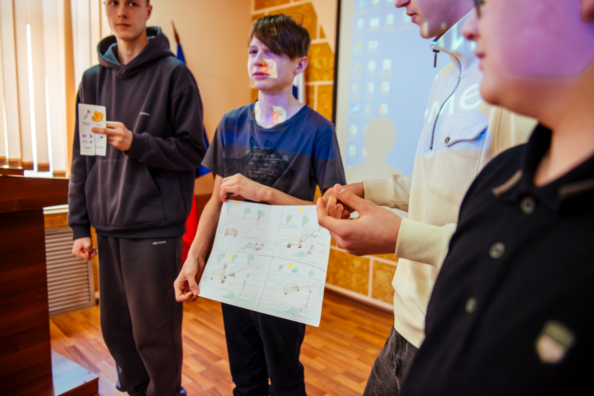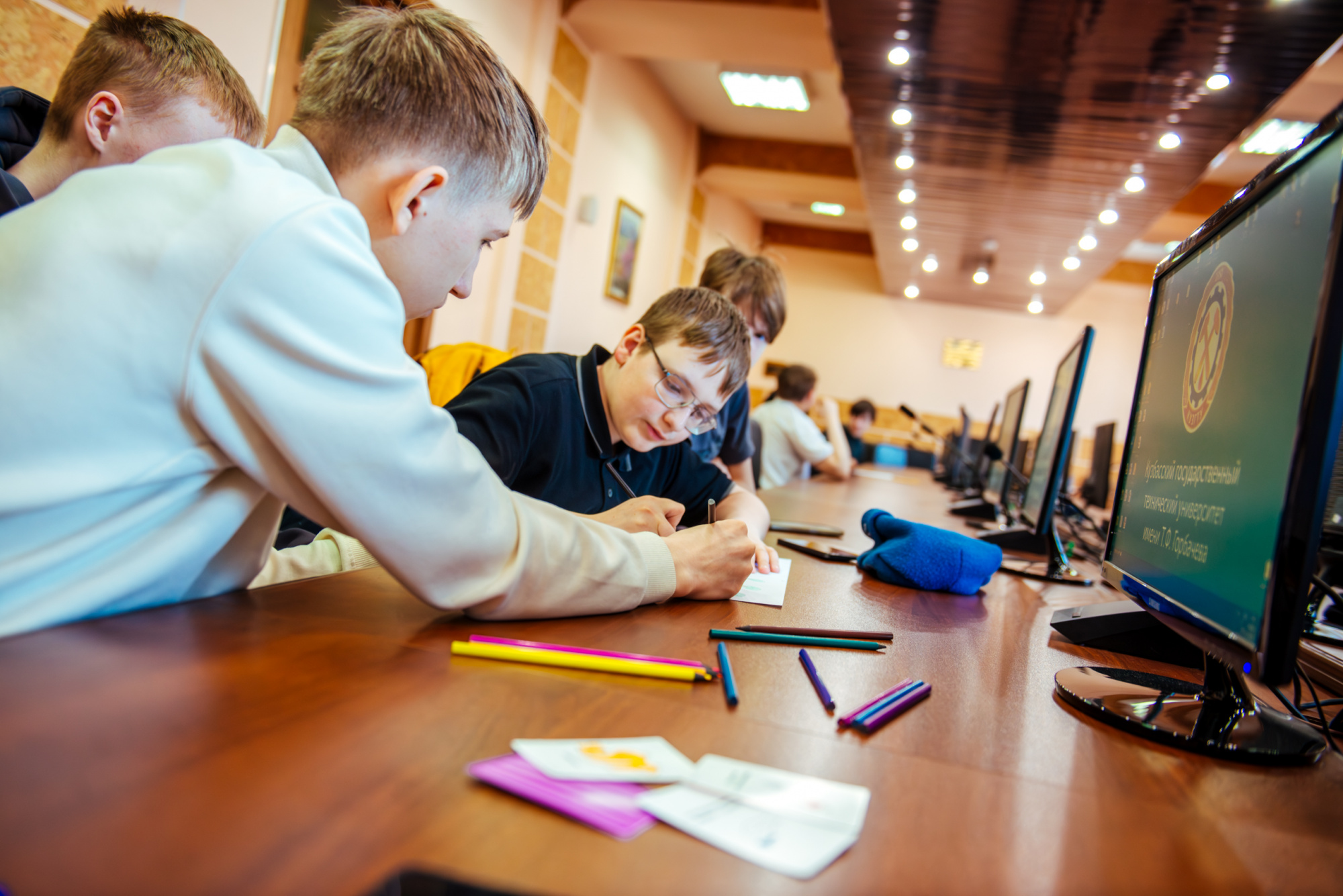 Вместе со старшим преподавателем кафедры производственного менеджмента института экономики и управления Русланом Фаляховым школьники «придумывали» свой стартап для решения актуальной проблемы с использованием современных технологий. Планы проектов они изобразили в виде рисунков и схем, а потом защитили их.