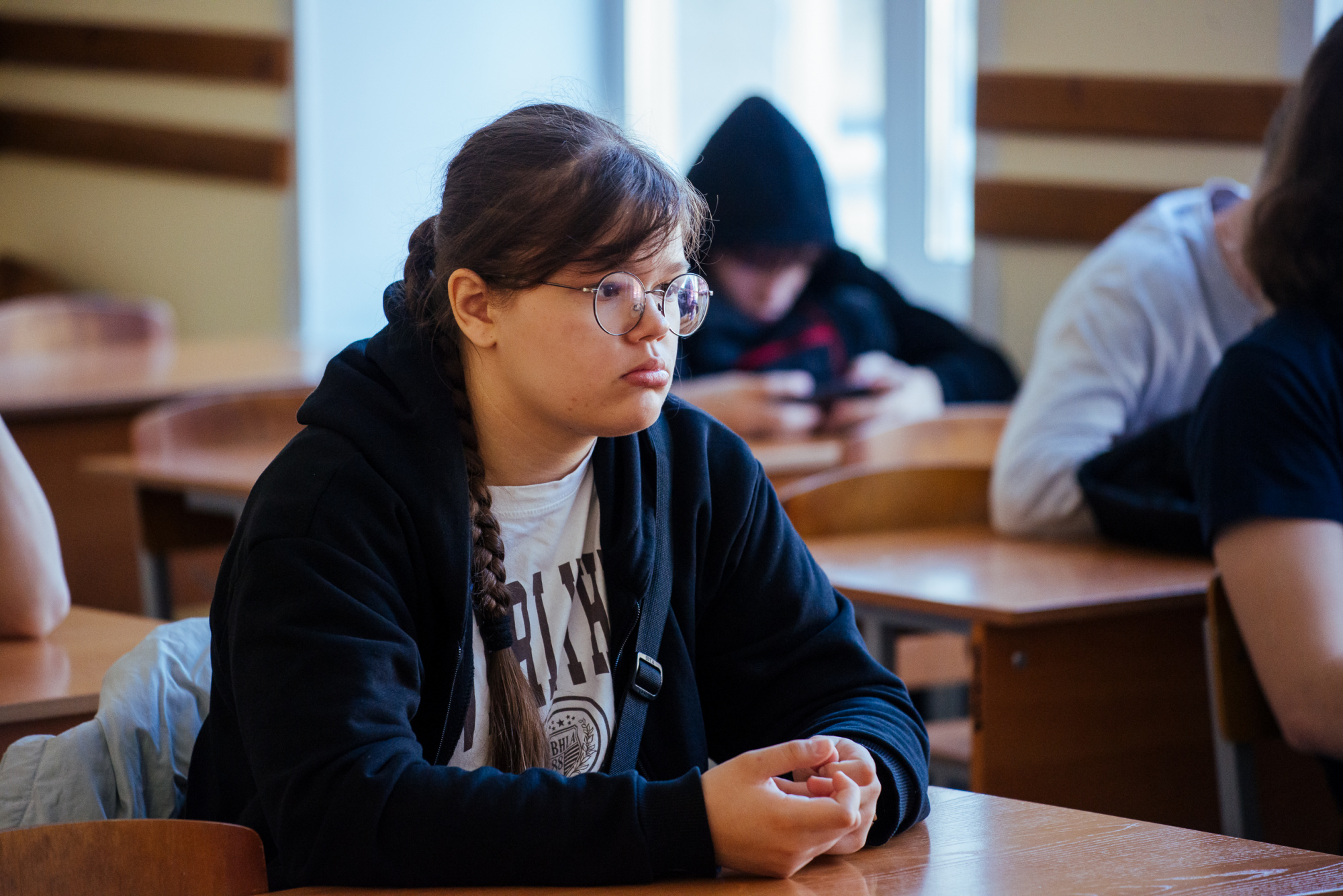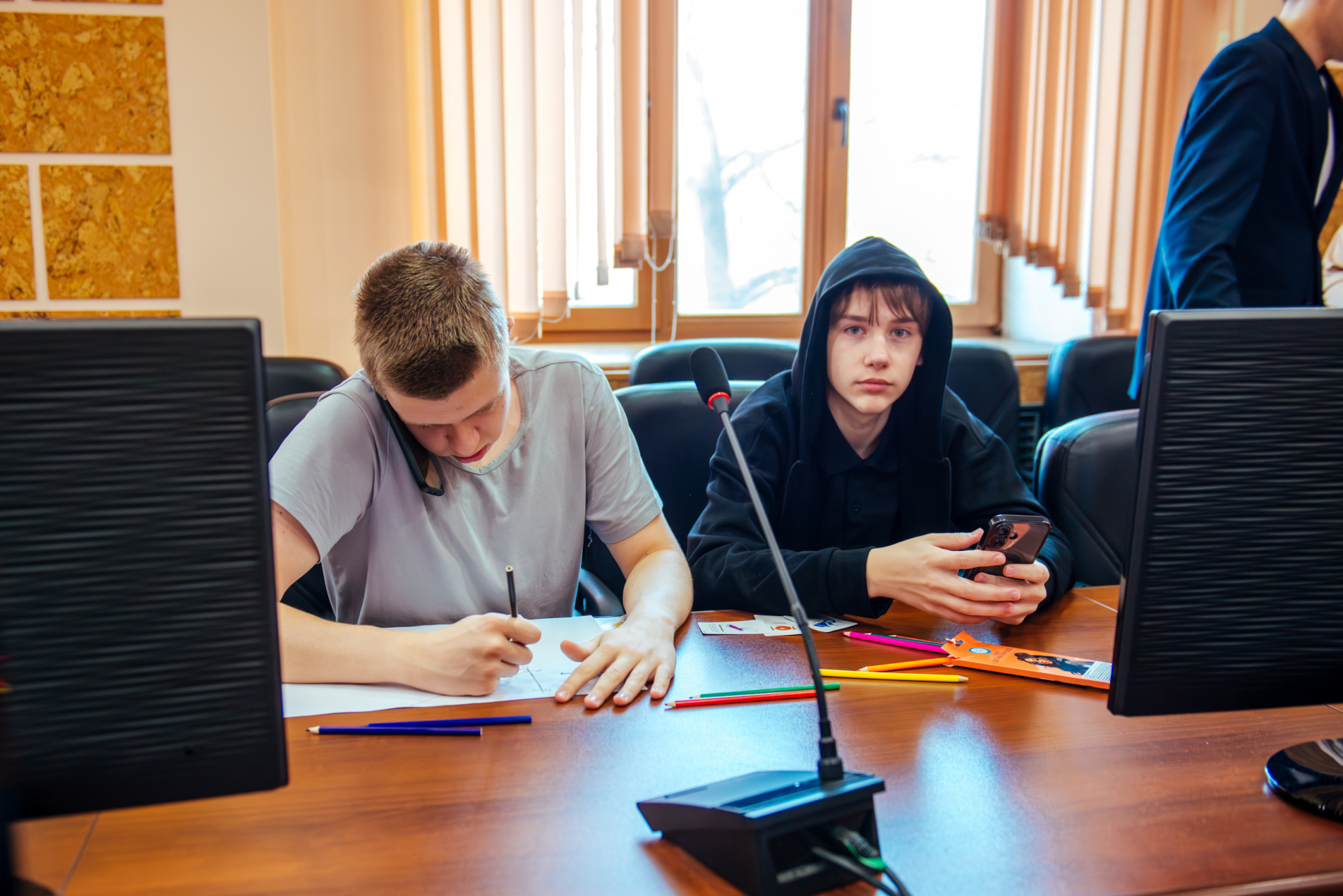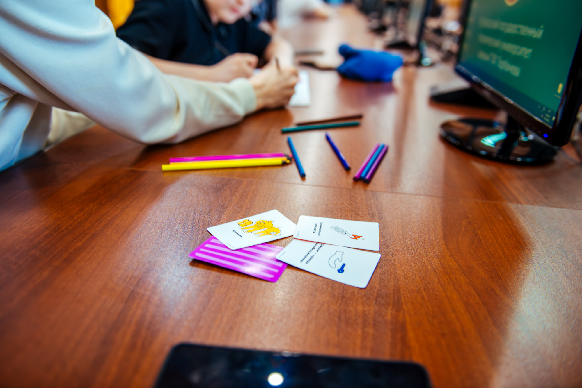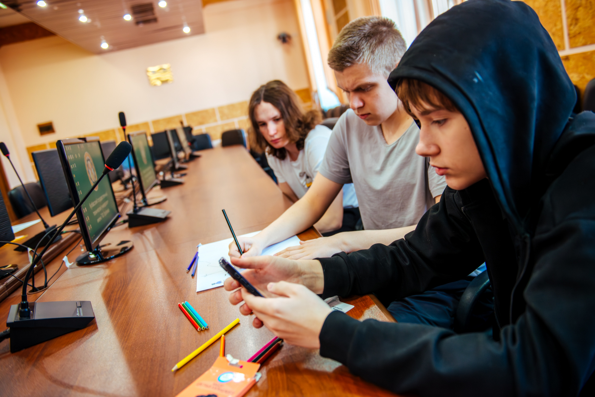 Вместе со старшим преподавателем кафедры производственного менеджмента института экономики и управления Русланом Фаляховым школьники «придумывали» свой стартап для решения актуальной проблемы с использованием современных технологий. Планы проектов они изобразили в виде рисунков и схем, а потом защитили их.