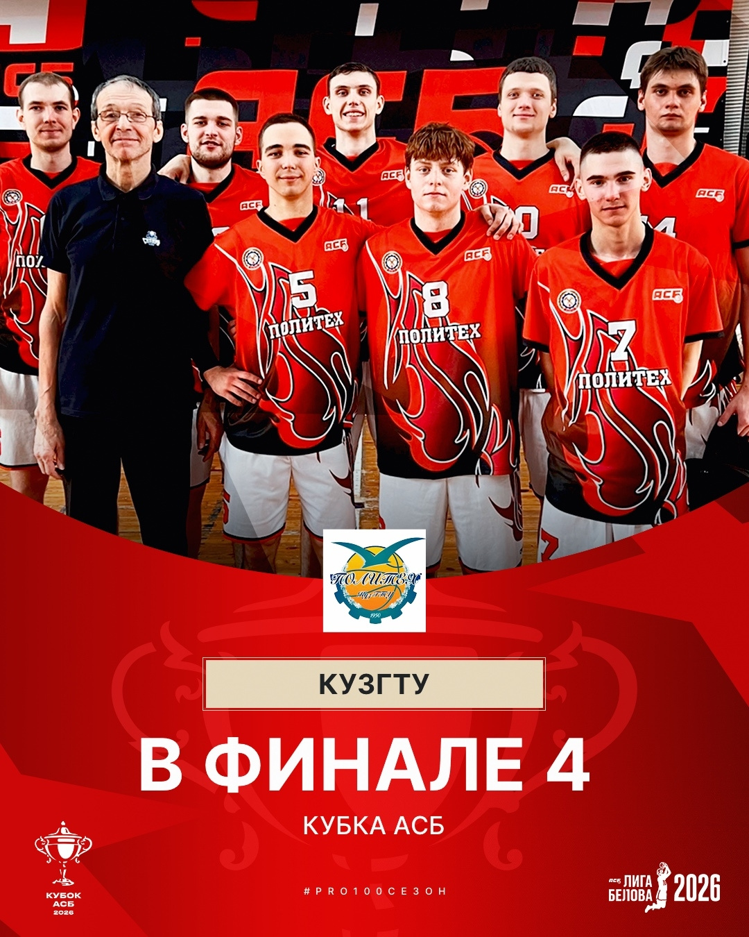 Значимого успеха добилась и мужская сборная Кузбасского политеха по баскетболу, выйдя в «Финал четырёх» Кубка АСБ. По итогам этапа «Ласт-16», прошедшего в Казани и Саратове, путёвки в финал завоевали КузГТУ и РТУ МИРЭА. В решающем матче команда вуза уверенно обыграла «Витязей-НовГУ» со счётом 81:60. Финальные игры пройдут 25-26 апреля в Раменском.