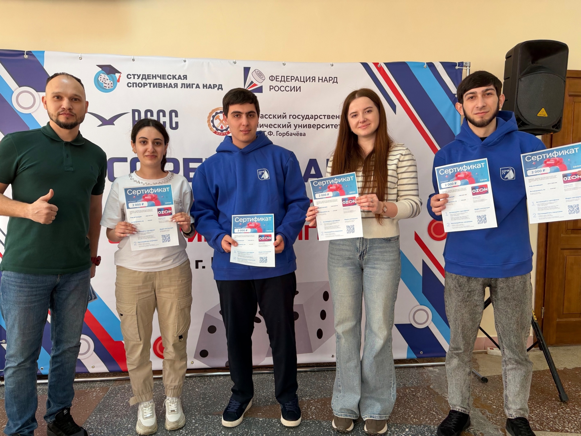 В конце марта в КузГТУ состоялись межрегиональные соревнования Студенческой спортивной лиги по нардам. В турнире приняли участие сильнейшие игроки из Новосибирска, Красноярска, Омска, Сочи и Кемерова. В дисциплине «Длинные нарды» представители университета показали достойные результаты: студентка ИИТМА Виктория Галкина заняла 4 место, студент ИЭ Шафтоли Шафтолиев – 6 место. Следующий этап соревнований пройдет в Ростове-на-Дону с 23 по 26 апреля.