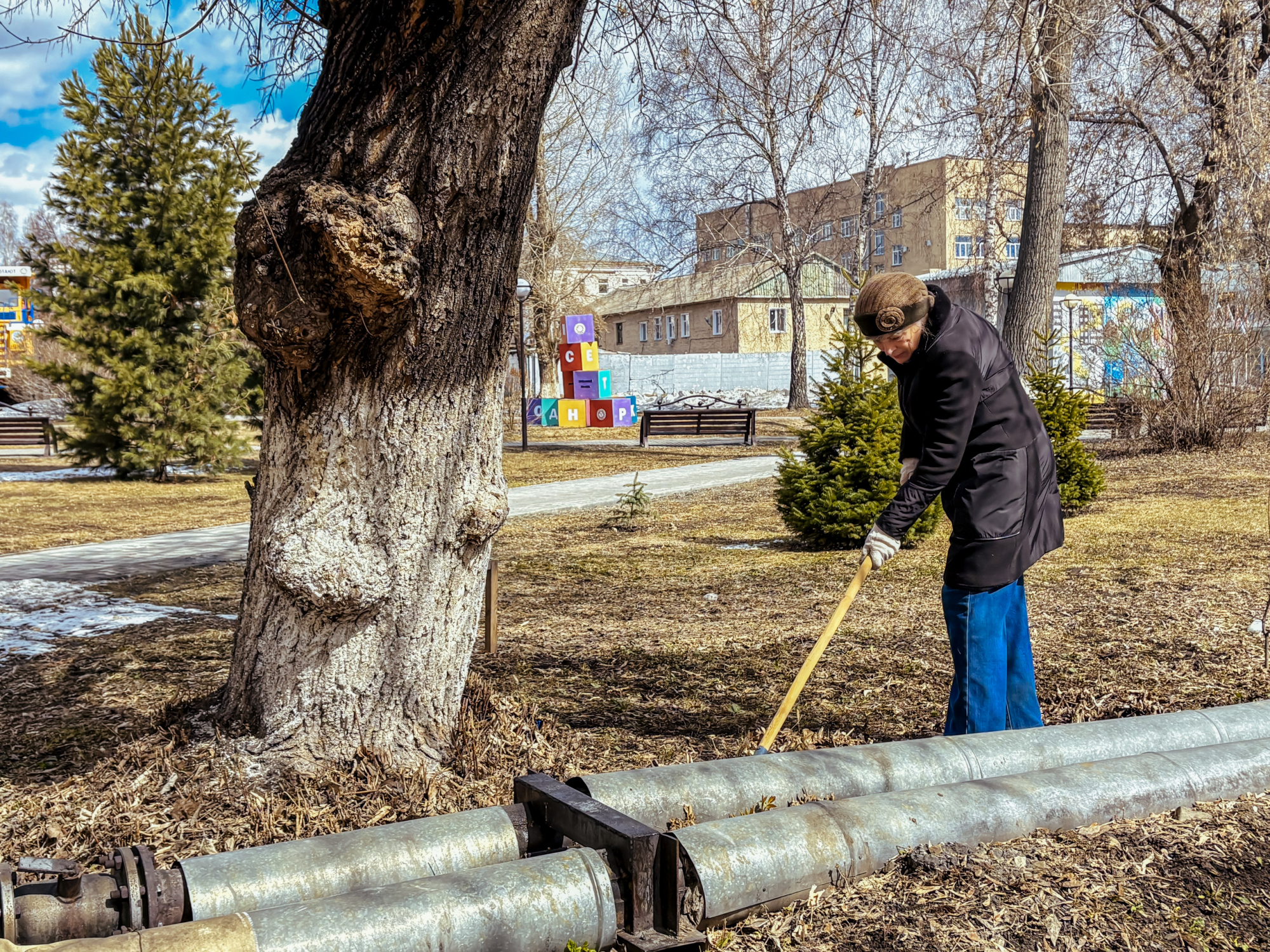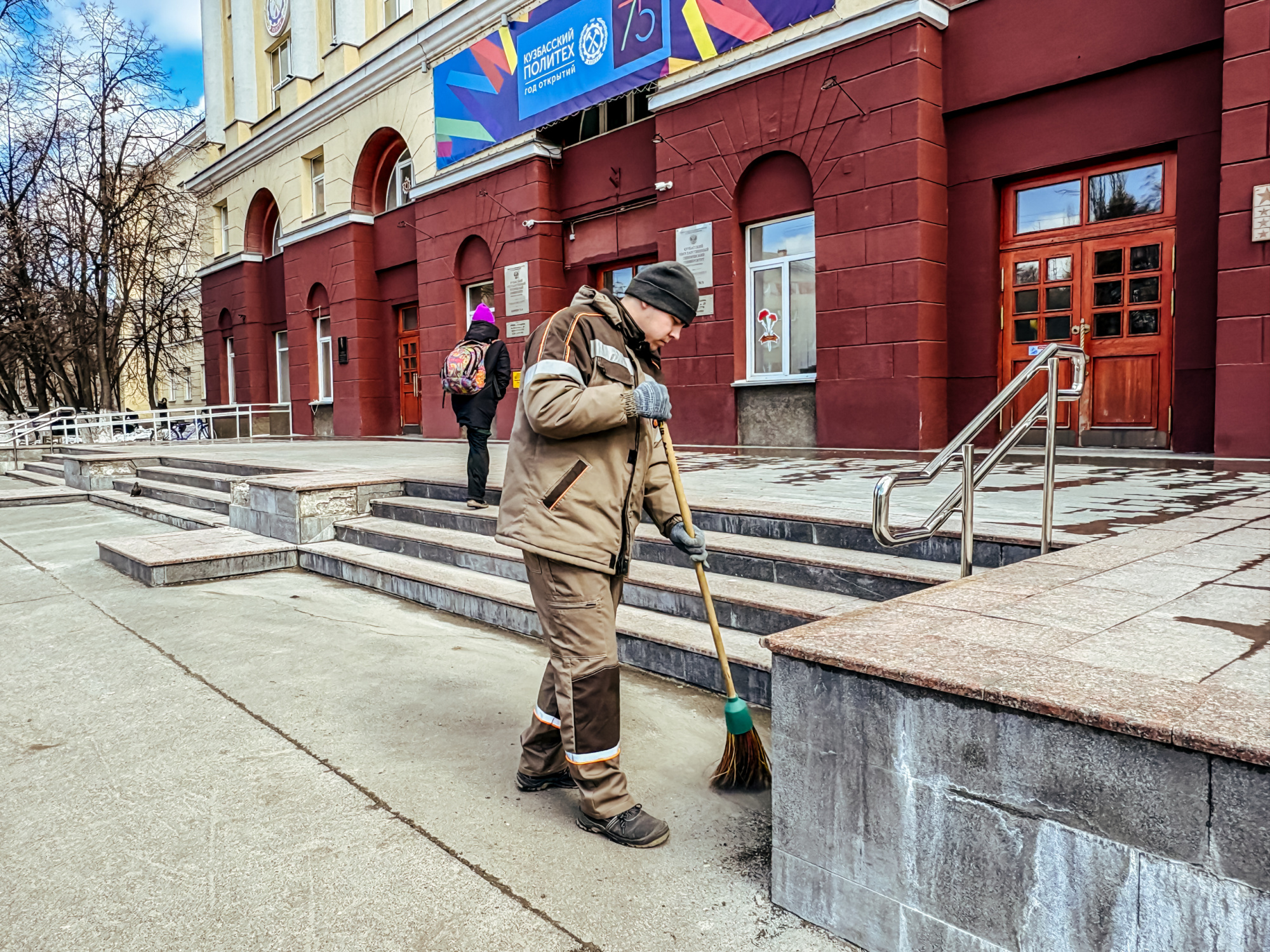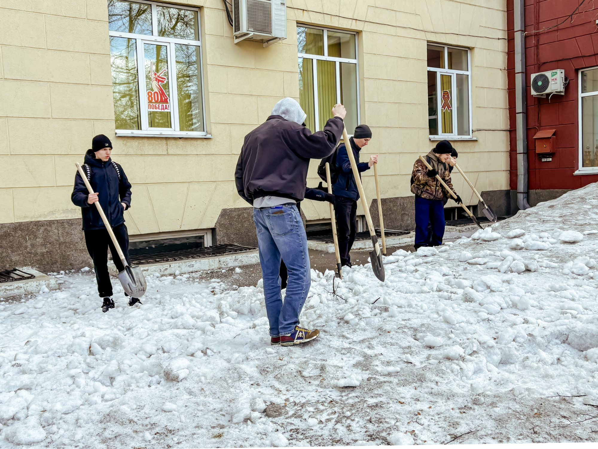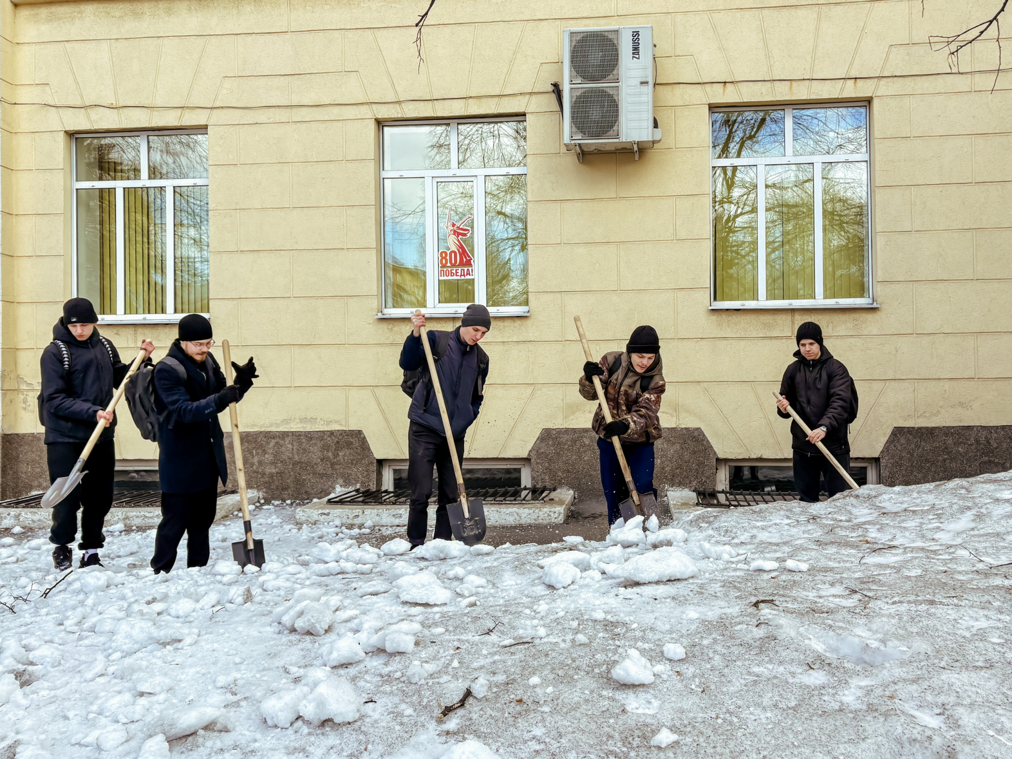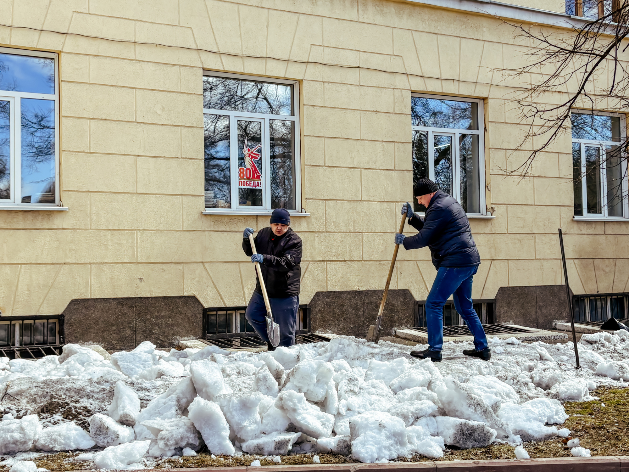 Участники сосредоточились на нескольких важных задачах: ворошили слежавшийся снег, убирали прошлогоднюю листву, очищали землю от накопившегося за зиму мусора. Работа проводилась на территории перед третьим и первым корпусами, а также во внутреннем дворе первого корпуса.