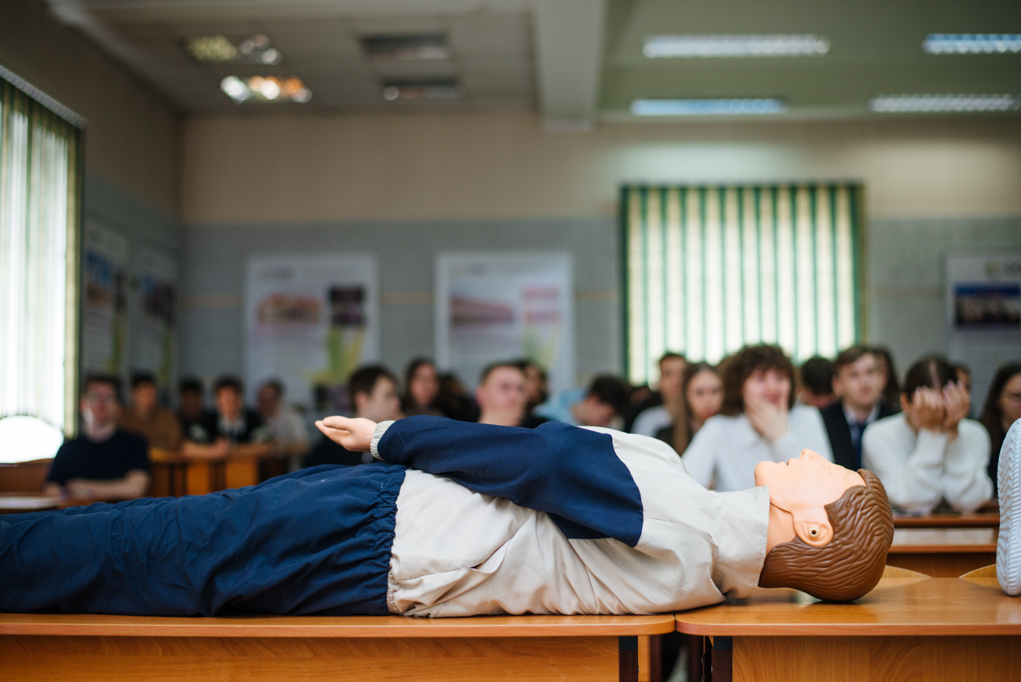 Главное на этом этапе — показать навыки первой помощи: определить, как действовать при ожогах после пожара, что делать при тепловом ударе, как оказать помощь при травмах на производстве — от попадания стружки в глаз до серьёзных ранений с кровотечением. Первую помощь «пострадавшему» ребята оказывали, используя манекены или товарищей по команде. На обсуждение каждой ситуации давалось всего несколько минут, после чего команды демонстрировали свои решения.