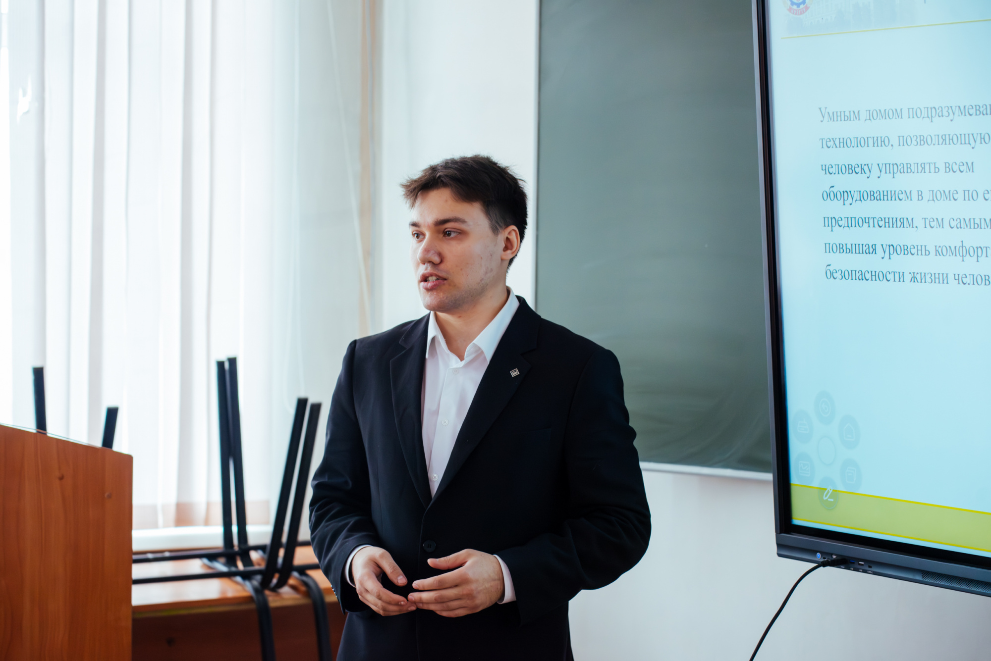Магистрант Евгений Сролов под руководством профессора кафедры электропривода и автоматизации Аллы Захаровой разработал учебный стенд, который позволит студентам на практике освоить алгоритмы управления освещением в системах «умного дома».