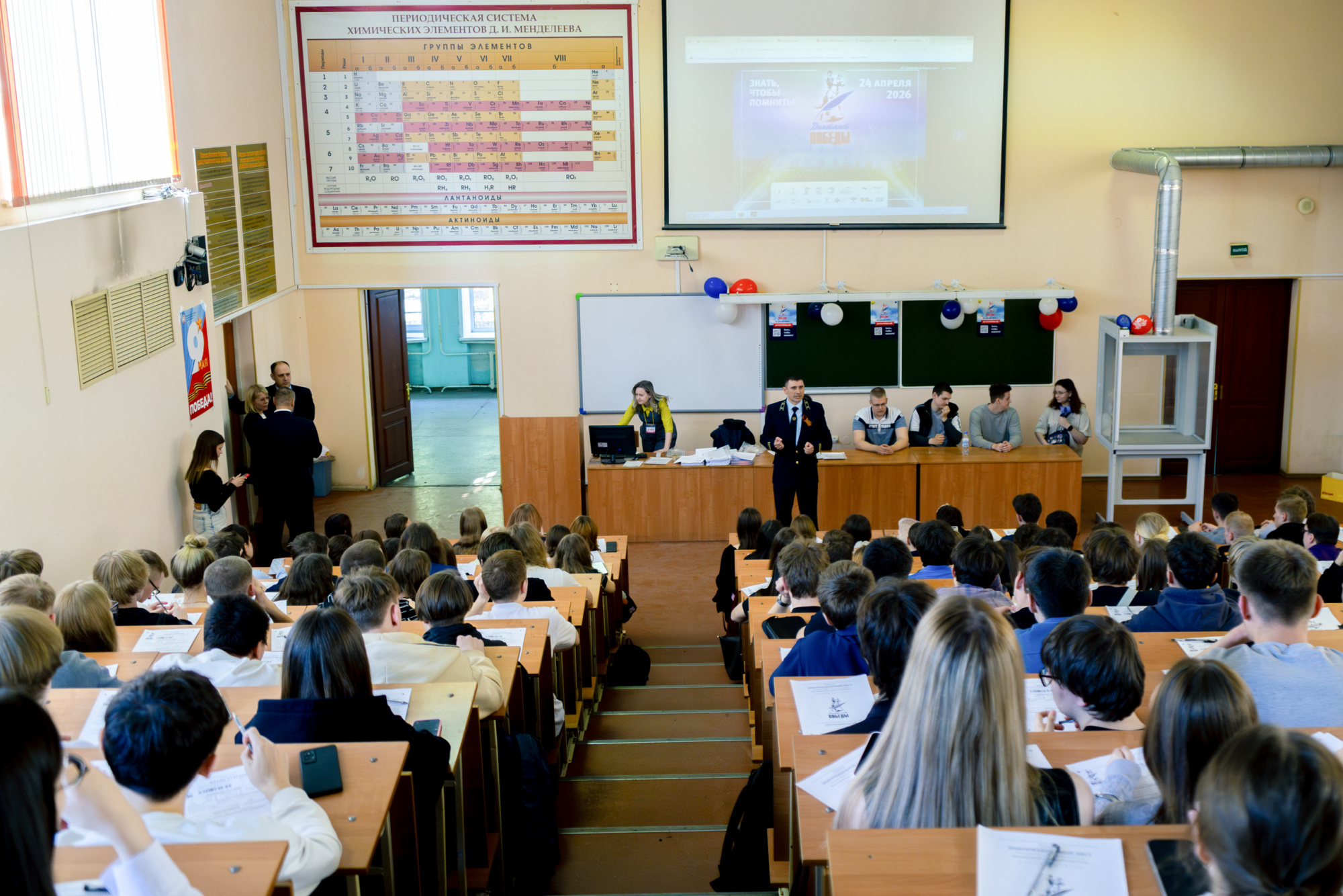 24 апреля в КузГТУ прошёл «Диктант Победы» — масштабная международная акция, посвящённая событиям Великой Отечественной войны и приуроченная к предстоящему празднику День Победы. В первой лекционной аудитории собрались студенты разных курсов, чтобы проверить свои знания истории и по-новому взглянуть на уже знакомые события.