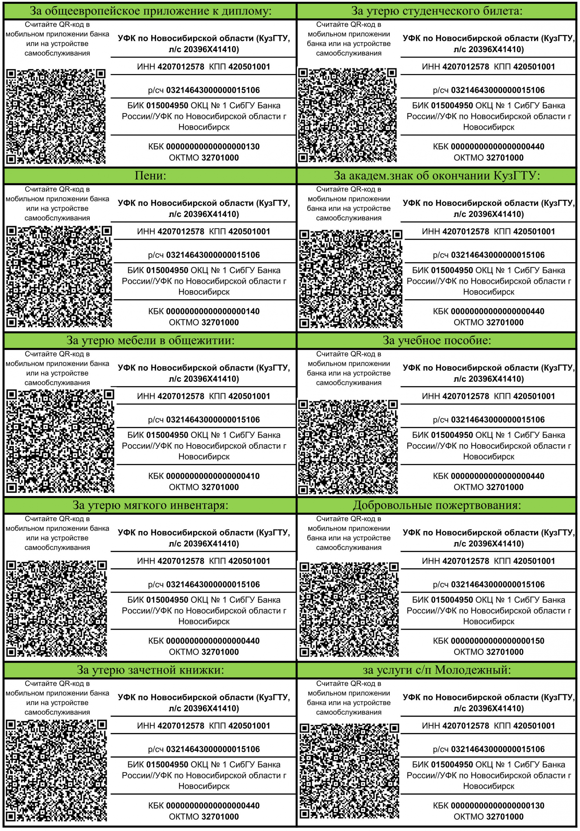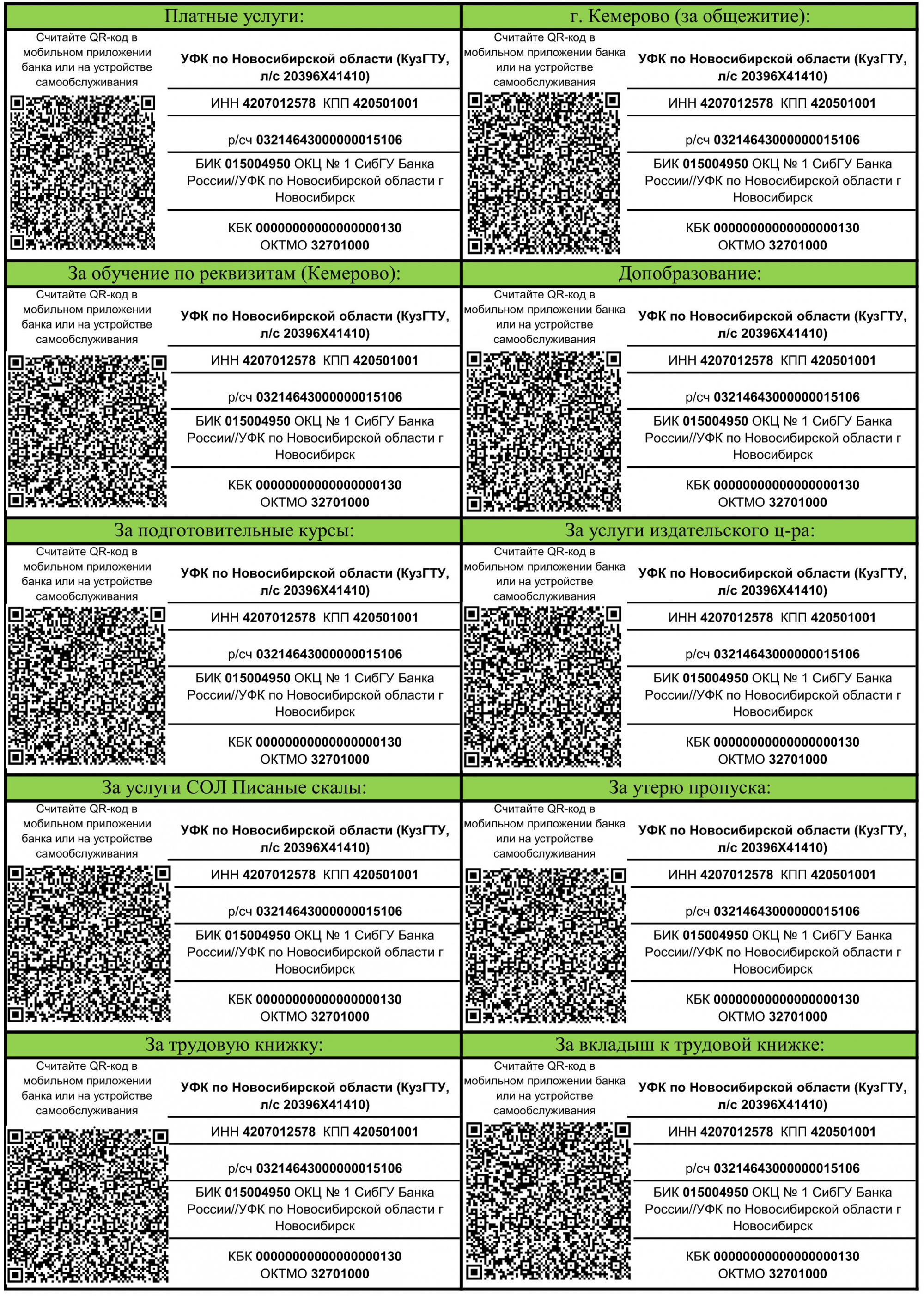 Памятки об оплате